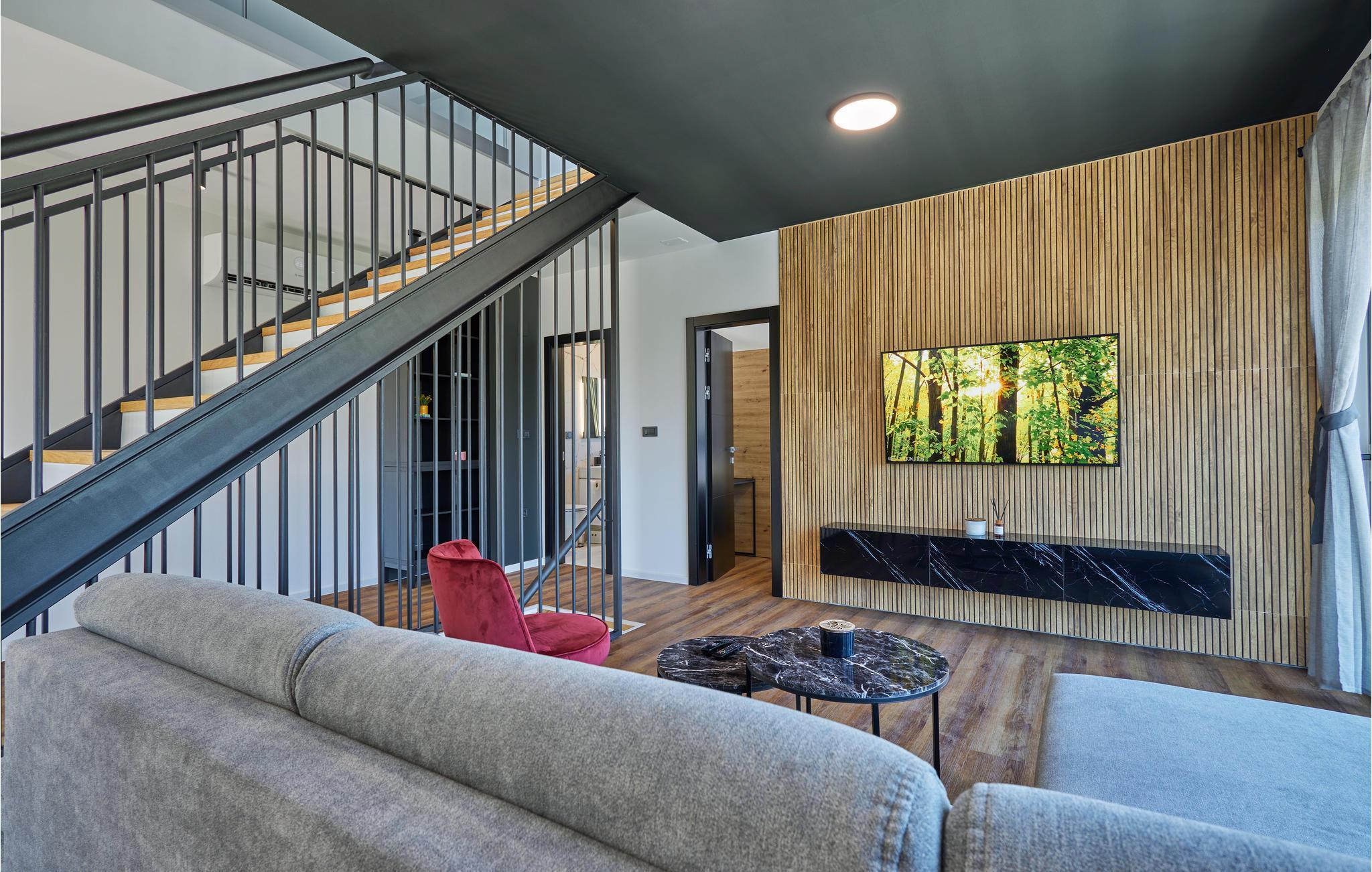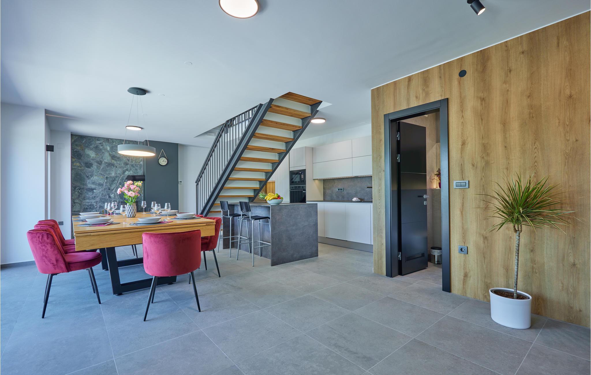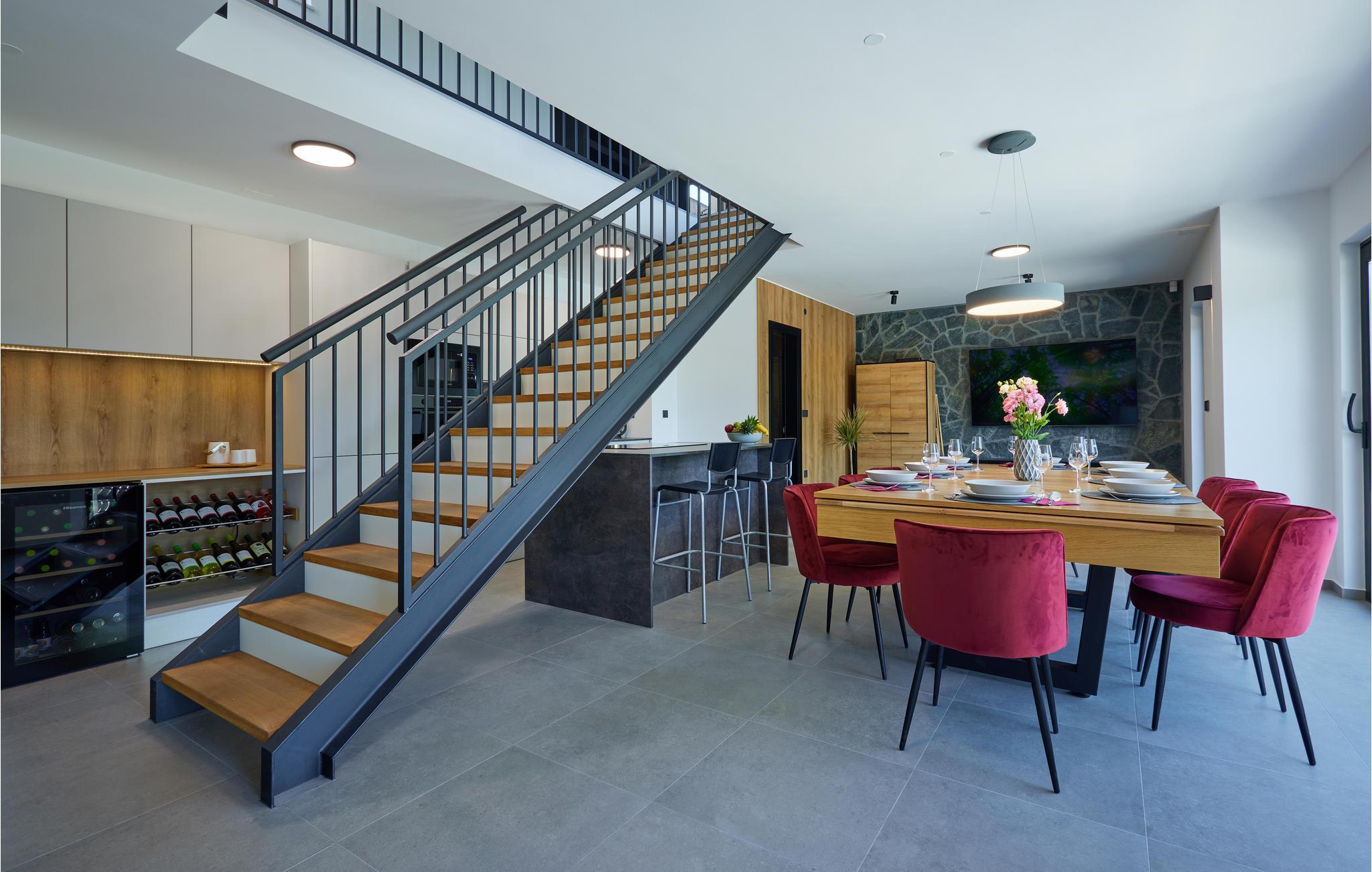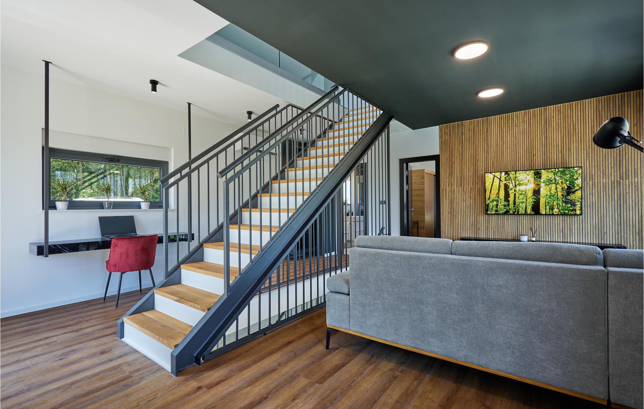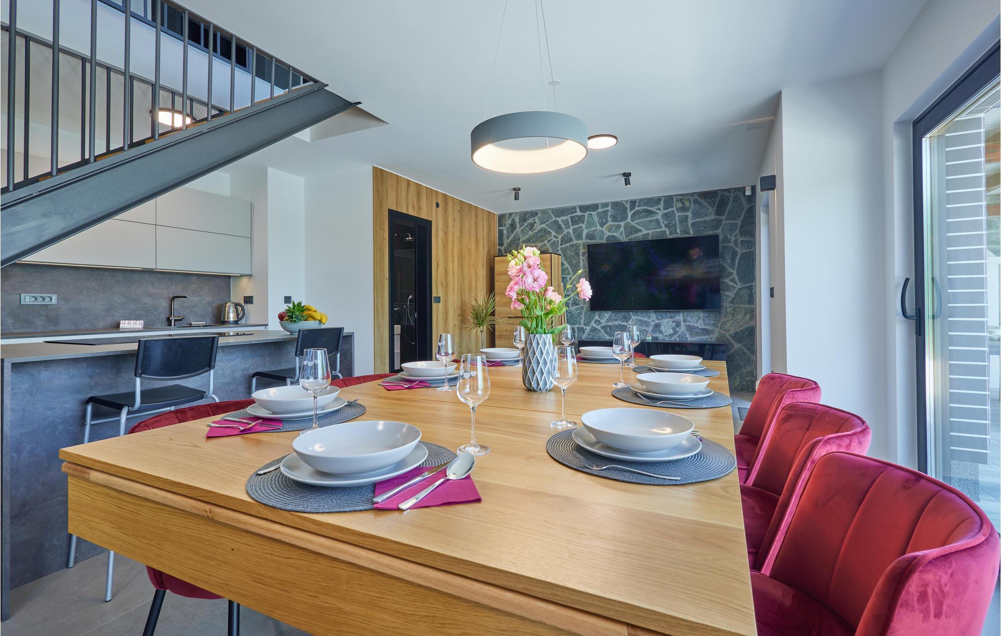 Willkommen in dem modernen Haus, das es Ihnen mit seiner eleganten Einrichtung in geschmackvollen Farben leicht macht, hier vom ersten Tag an zu entspannen. Am langen Esstisch können Sie herrlich gemeinsam speisen und abends Spiele spielen, bequeme Sofas laden dazu ein, noch lange gemütlich zusammen zu sitzen.