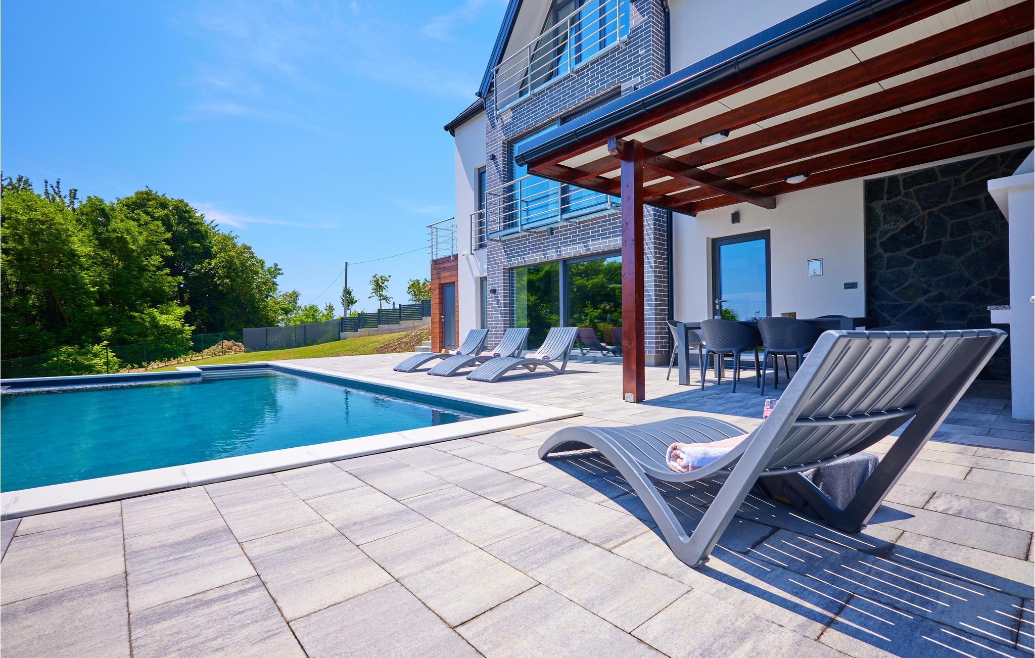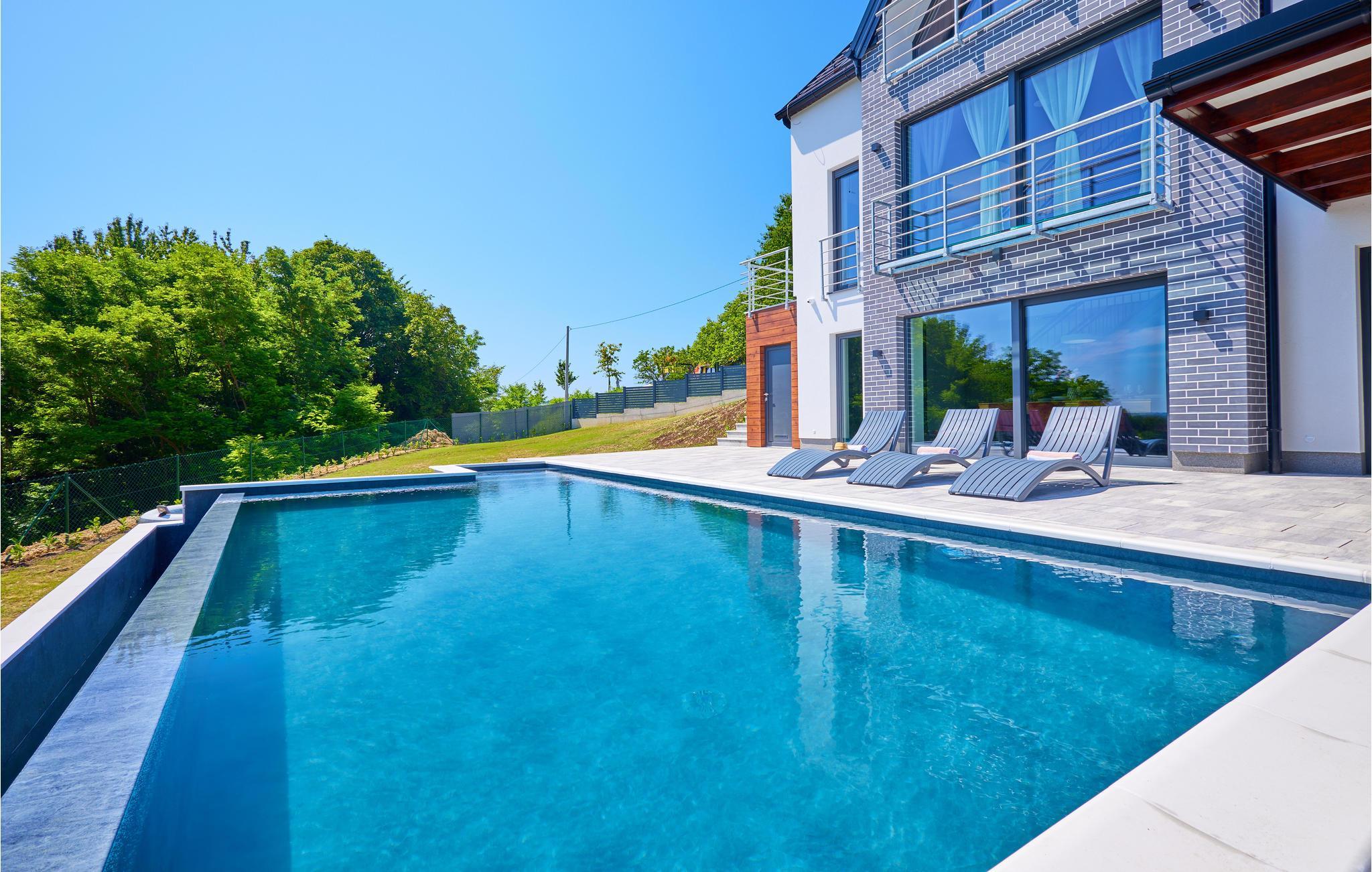 Genießen Sie ein fantastisches Landschaftspanorama in diesem überaus komfortablen Ferienhaus mit Pool.
