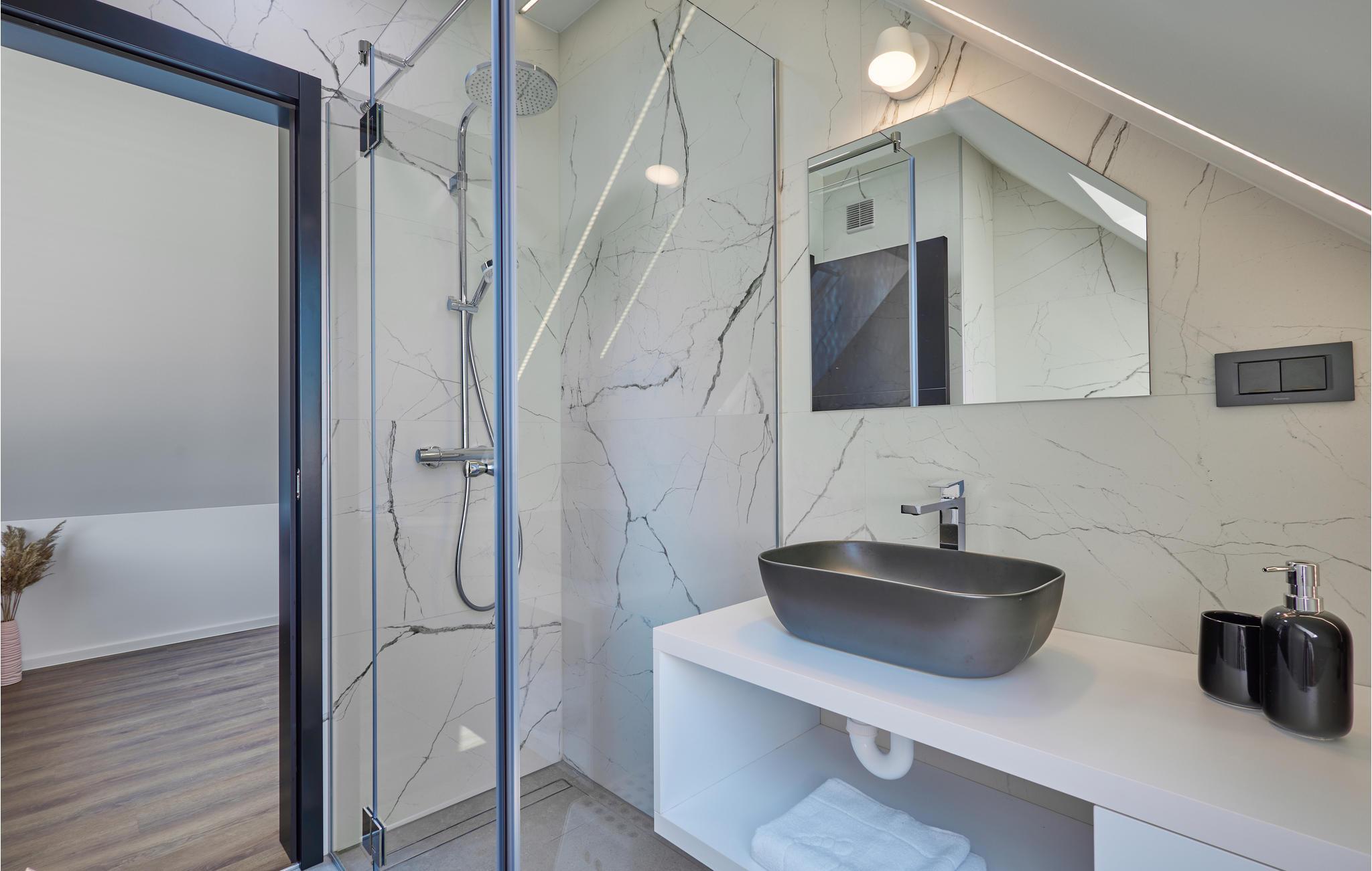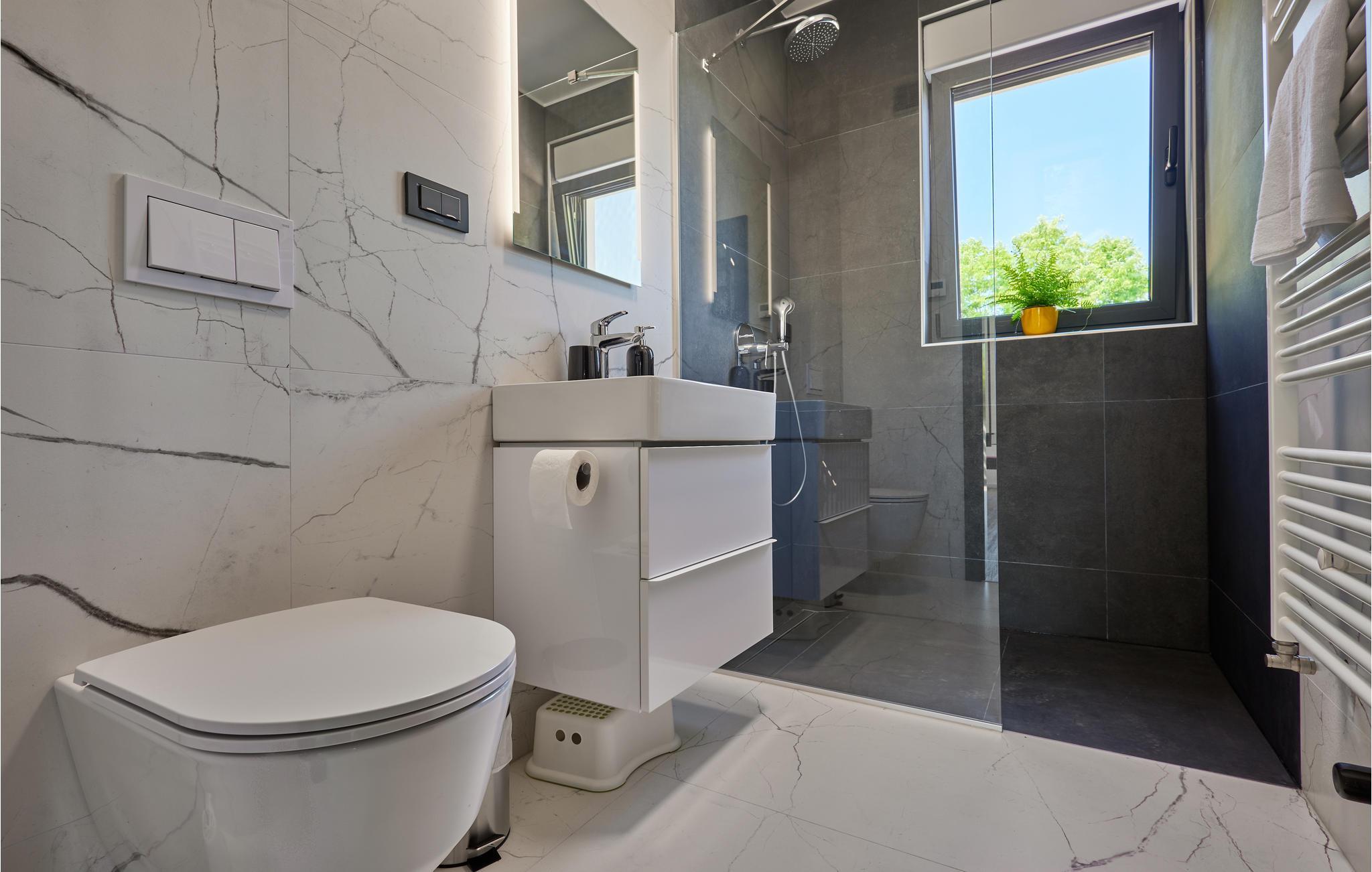 Badezimmer 4m2 (nr. 2) - WC. Warmes und kaltes Wasser. Dusche