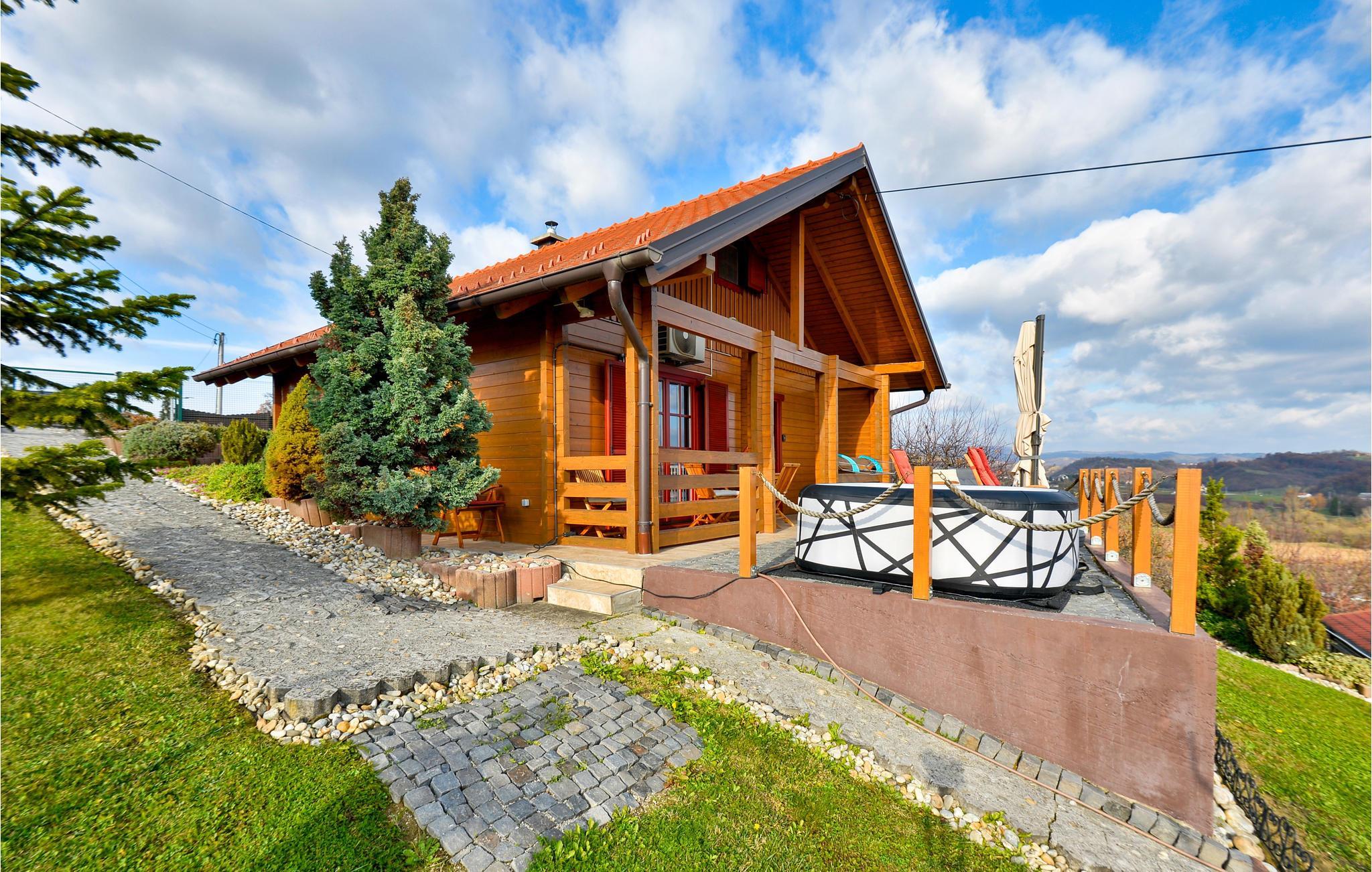 Nicht weit von Zagreb entfernt befindet sich dieses schöne Holzhaus, umgeben von einem schönen Garten mit atemberaubenden Blick auf die umliegenden Hügel. Entspannen Sie sich bei einer Hydromassage mit einem Glas Wein in der hand auf einer schönen Terrasse, die sich bestens dazu eignet, ein paar Sonnenstrahlen zu tanken. Das Innere des Hauses ist mit viel Holzverkleidung und Kamin ebenso heimelig, und eignet sich perfekt für gemütliche Stunden an Schlechtwettertagen.