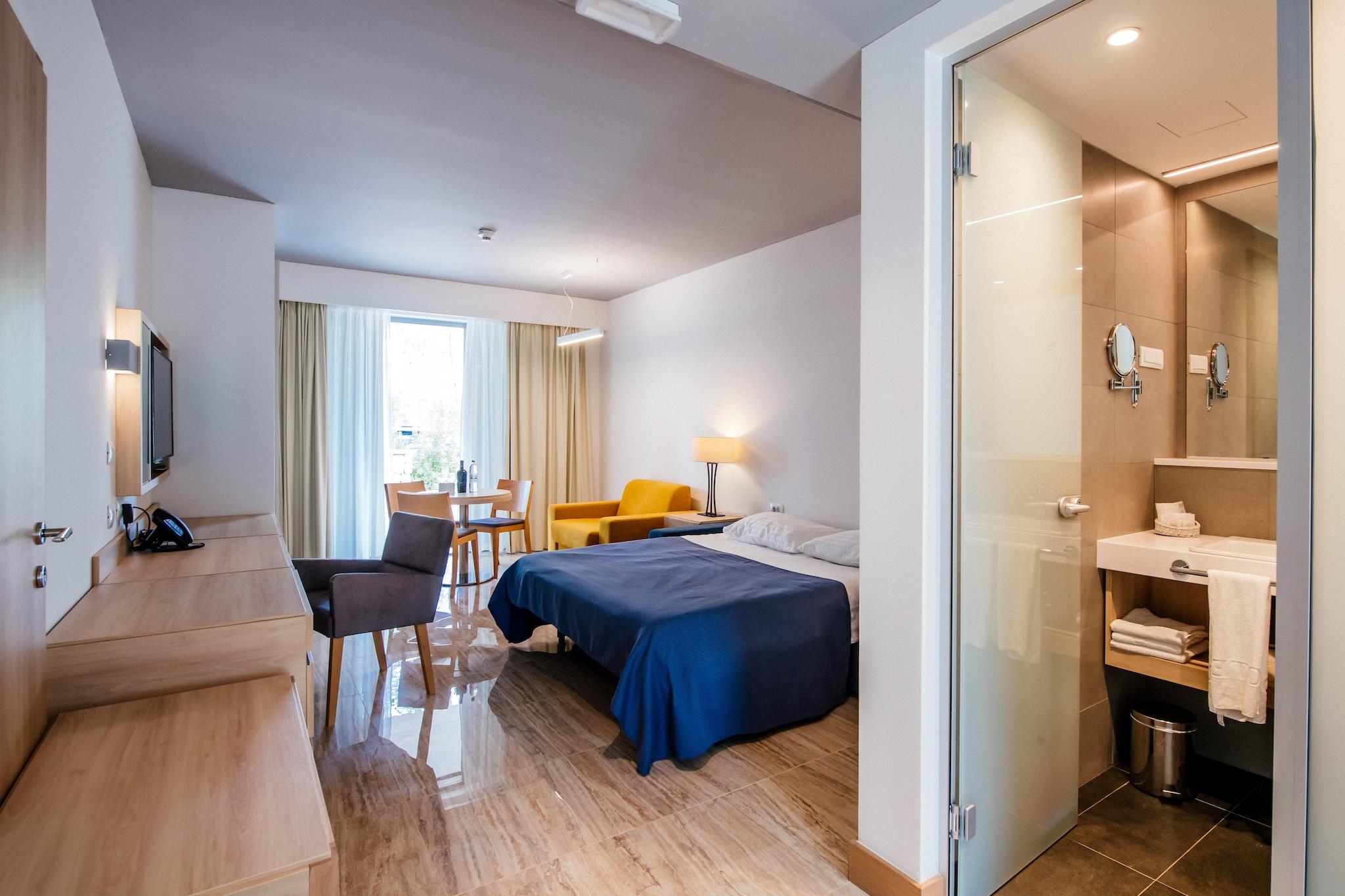 4-Sterne Appartements in familienfreundlicher Ferienanlage an einer langgezogenen, windgeschützten Bucht nahe der Ortschaften Nin und Zaton, auf einem ca. 100 ha großen, von Pinien umsäumten Areal. Der ca. 2 km lange, flach abfallende Strand mit überwiegend sandigem Meerboden ist bestens für Kinder und Nichtschwimmer geeignet. Die Anlage besteht aus 596 Appartements (3* App. buchbar unter CDN02044), verteilt auf zweistöckige Gebäude sowie einem Campingplatz mit 320 Mobile Homes (buchbar unter CDN02045). Die Anlage über einen Poolbereich mit insgesamt 7 Pools, die sich auf 2.100 qm erstrecken. Eine Zufahrtsstraße (Zugang bewacht) mit mehreren großen Parkplätzen in der Nähe der Unterkünfte führt zur Anlage. Der gesamte Appartementbereich ist ansonsten autofrei. Die meisten Einrichtungen befinden sich auf der Kalelarga, der Fußgängerpromenade der Ferienanlage, die von morgens bis abends ein fröhliches Eigenleben mit Menschen aus aller Welt entwickelt. In der Anlage gibt es neben diesen Einrichtungen außerdem Obst- und Gemüsestände, Bäcker, Konditorei, Eisdiele, Taverne und ein klimatisiertes à la carte Restaurant mit großer Terrasse am Strand. Direkt am Strand befindet sich außerdem das Vergnügungszentrum MORE mit Tanzmusik, ein vielfältiges Animationsprogramm und Open-Air-Konzerte können Sie im Amphitheater genießen. Highlights inklusive: Verbrauchsabhängige Energiekosten, Kurtaxe, Bettwäsche, Handtücher, WLAN, Parkplatz. Aktivitäten in der Nähe : Ohne Gebühr: Joggingpfad, Kinderanimation im Mini- (3 - 6), Maxi- (7 - 10) und Teensclub (11 - 15 Jahre), Schwimmschule. Gegen Gebühr: Adventuregolf, Minigolf, Parsailing, Tauchschule, Wassersportzentrum, Fitnesscenter, Massagen. Das Tenniscenter des Zaton Holiday Resort verfügt über insgesamt 12 Sandplätze, von denen vier beleuchtet sind. Darüber hinaus gibt es auch eine Tennisschule für interessierte Anfänger. Am Strand Liegen- und Sonnenschirmverleih. Mobilität : Nicht geeignet für Personen mit eingeschränkter Mobilität. Frühstück und Halbpension: vor Ort zubuchbar, im Buffetrestaurant, Kinderermässigung.