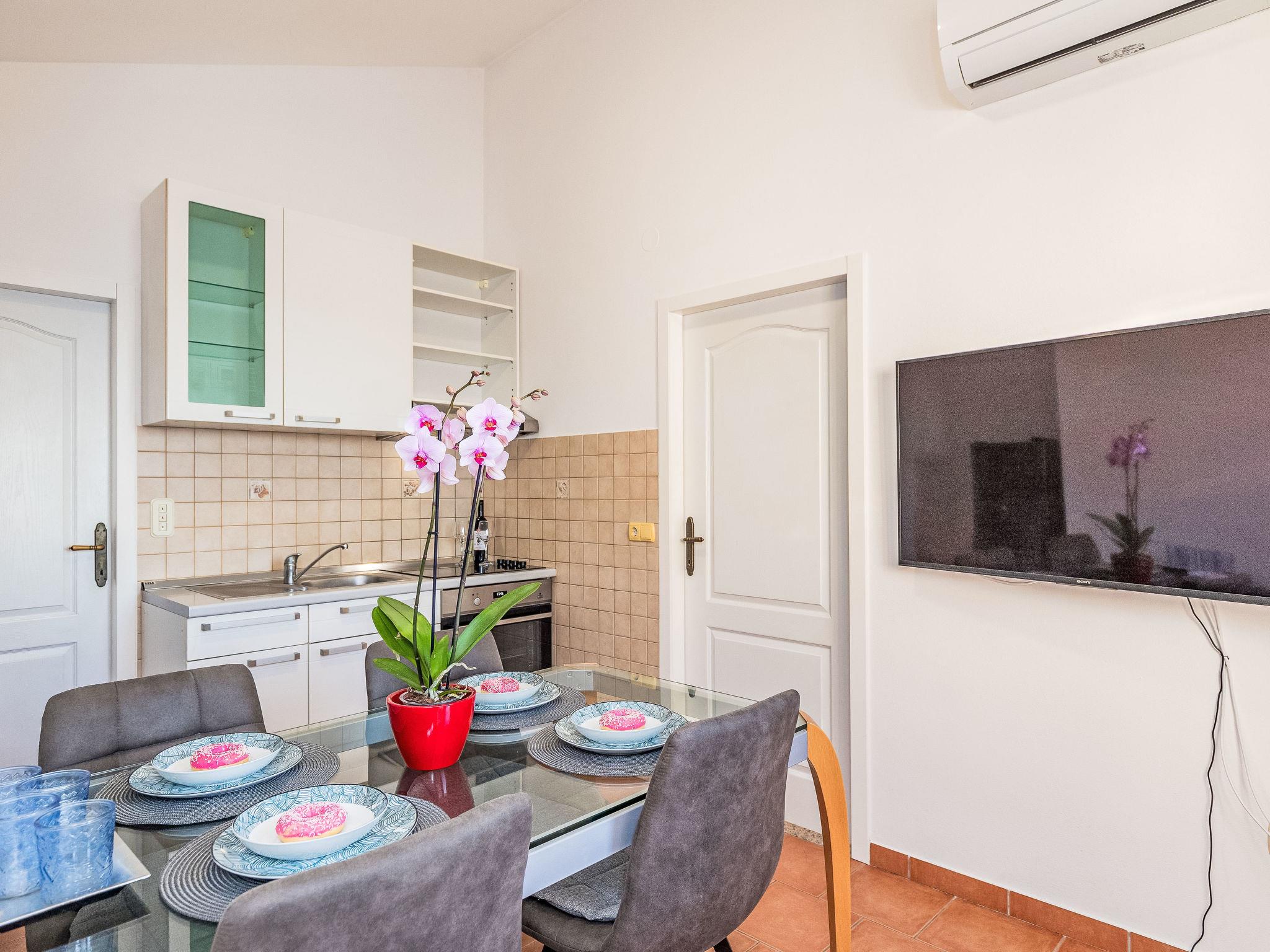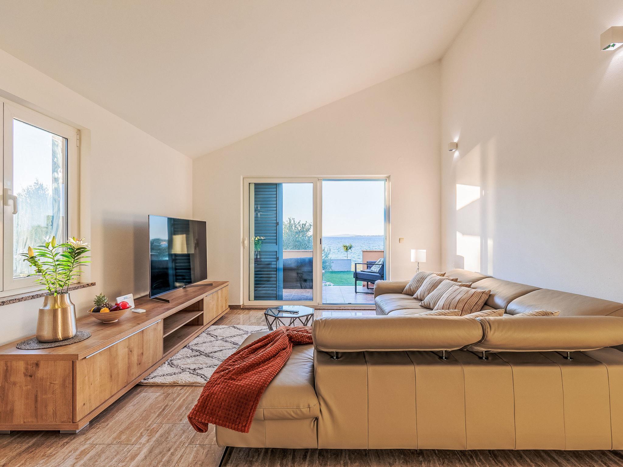 Einfamilienhaus "Victoria", auf 3 Stockwerken. 1.5 km vom Zentrum von Zaton, 4 km vom Zentrum von Nin, 14 km vom Zentrum von Zadar, sonnige Lage, 10 m vom Meer, 10 m vom Strand. Zur Mitbenutzung: Grundstück 540 m2 mit Rasen. Aussendusche. Im Hause: Internetzugang, Waschmaschine. Parkplatz (für 2 Autos) beim Haus auf dem Grundstück. Einkaufsgeschäft 1.4 km, Restaurant 1.6 km, Bushaltestelle 4.2 km, Sandstrand 550 m, Kieselstrand 10 m. Nahe gelegene Sehenswürdigkeiten: Holiday complex Zaton 3 km. Bitte beachten: Der Besitzer wohnt im selben Haus. Flugplatz 25 km vom Haus.
