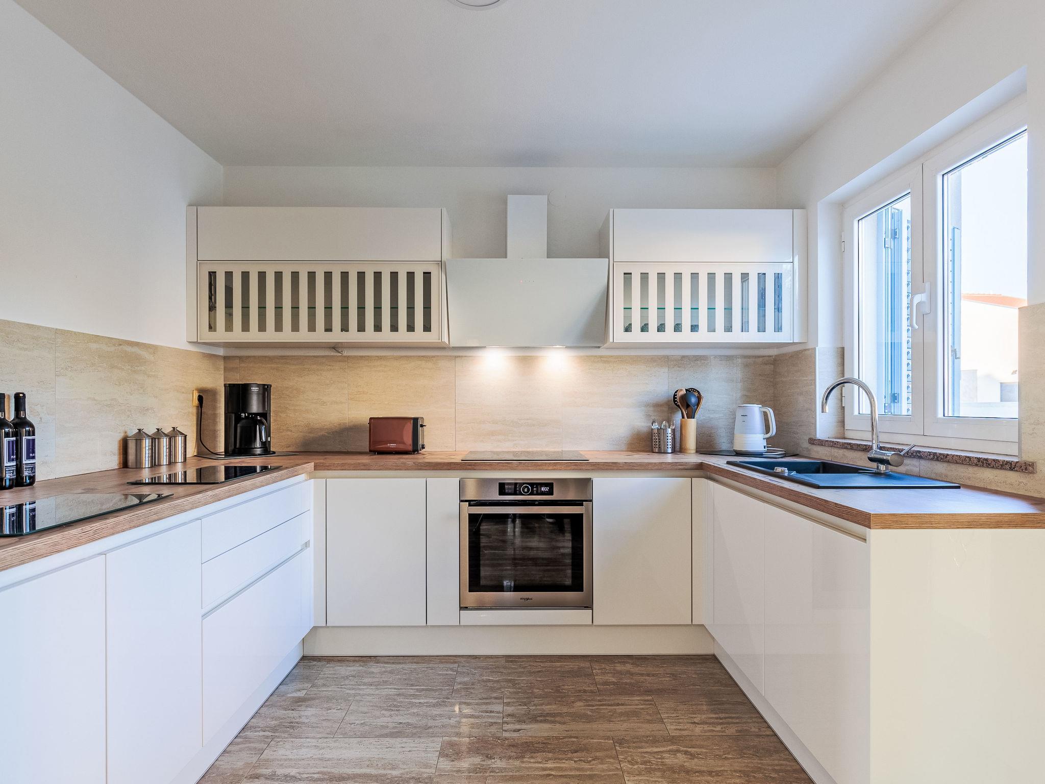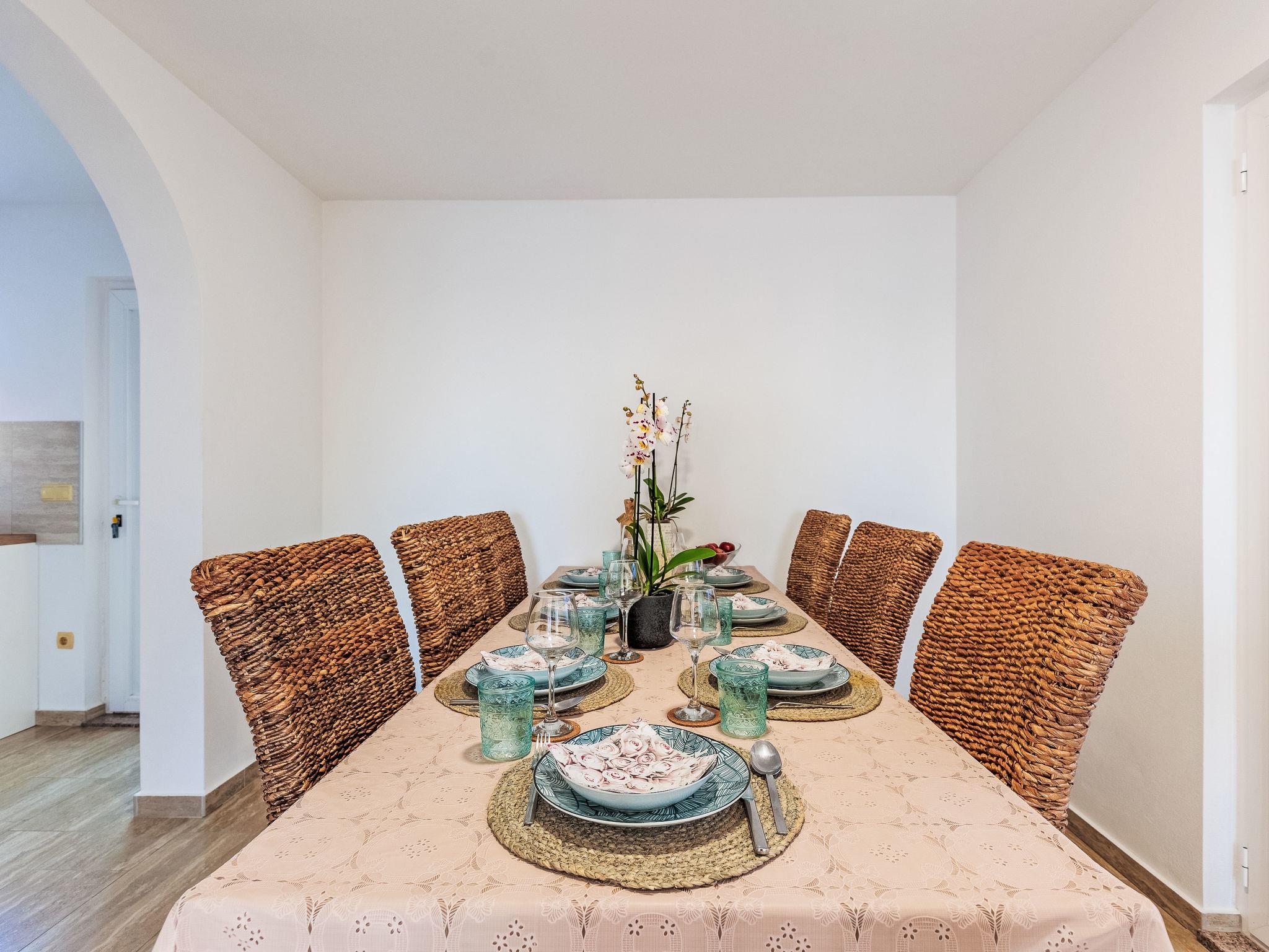4-Zimmer-Haus 105 m2 auf 3 Stockwerken. Gemütlich eingerichtet: Wohn-/Esszimmer mit Sat-TV (Flachbildschirm), Klimaanlage. Ausgang zur Terrasse. Offene Küche (Backofen, Geschirrspüler, 4 Induktionskochplatten, Toaster, Wasserkocher, Tiefkühler). Dusche/WC. Obergeschoss: 1 Zimmer mit 1 franz. Bett (160 cm, Länge 200 cm). 1 Zimmer mit 1 franz. Bett (160 cm, Länge 200 cm), Dusche/WC und Klimaanlage. Ausgang zum Balkon. 2. Obergeschoss: 1 Zimmer mit 1 franz. Bett (160 cm, Länge 200 cm). Ausgang zum Balkon. Kleine Küche (4 Kochplatten, Backofen, Tiefkühler) mit Sat-TV und Klimaanlage. Dusche/WC. Keine Heizmöglichkeit. 2 Balkone 7 m2, Balkon 5 m2, Terrasse 13 m2. Terrassenmöbel, Balkonmöbel, Liegestühle. Sehr schöne Sicht auf das Meer. Zur Verfügung: Internet (WLAN, gratis). Bitte beachten: Nichtraucher-Haus.