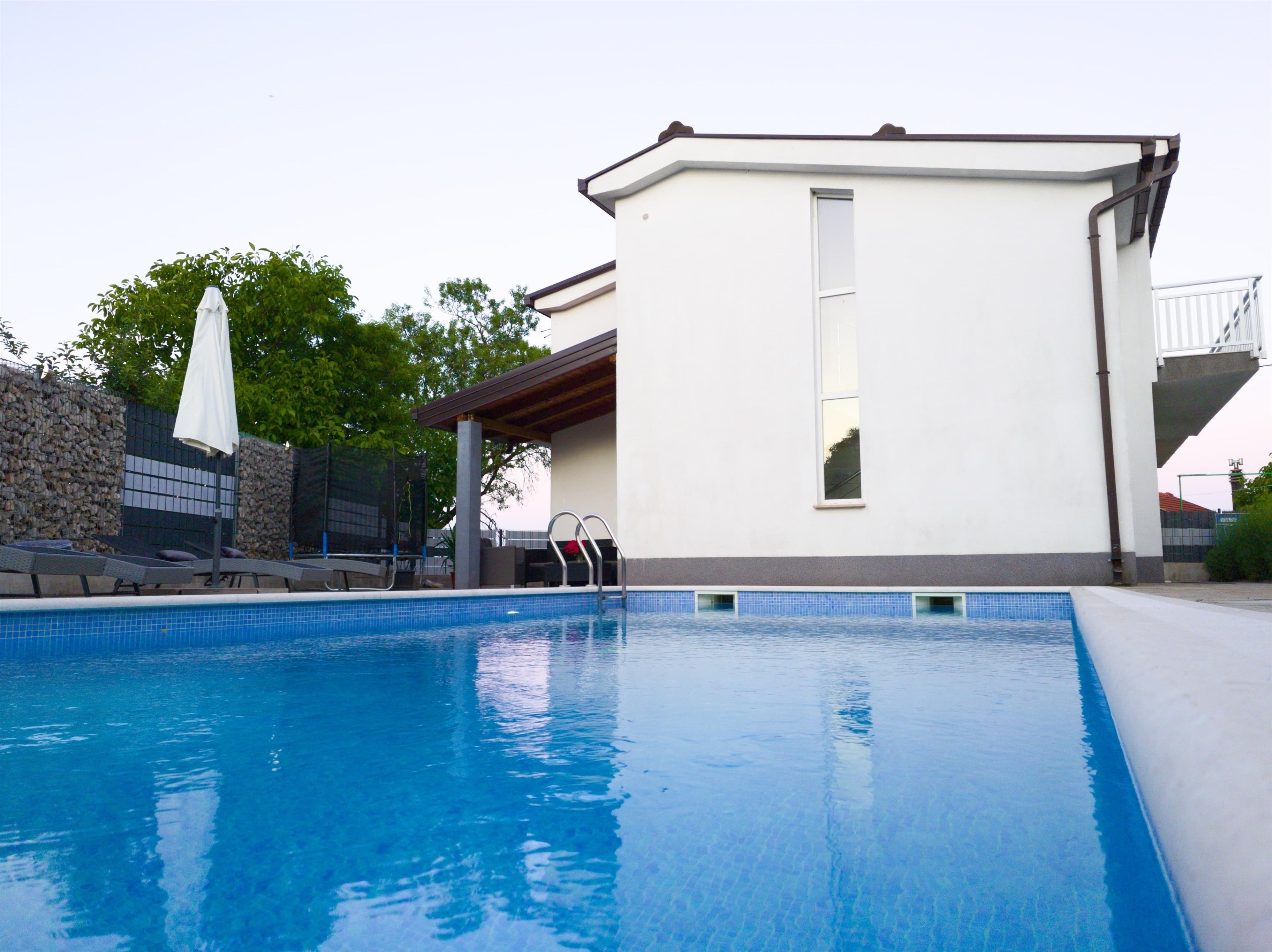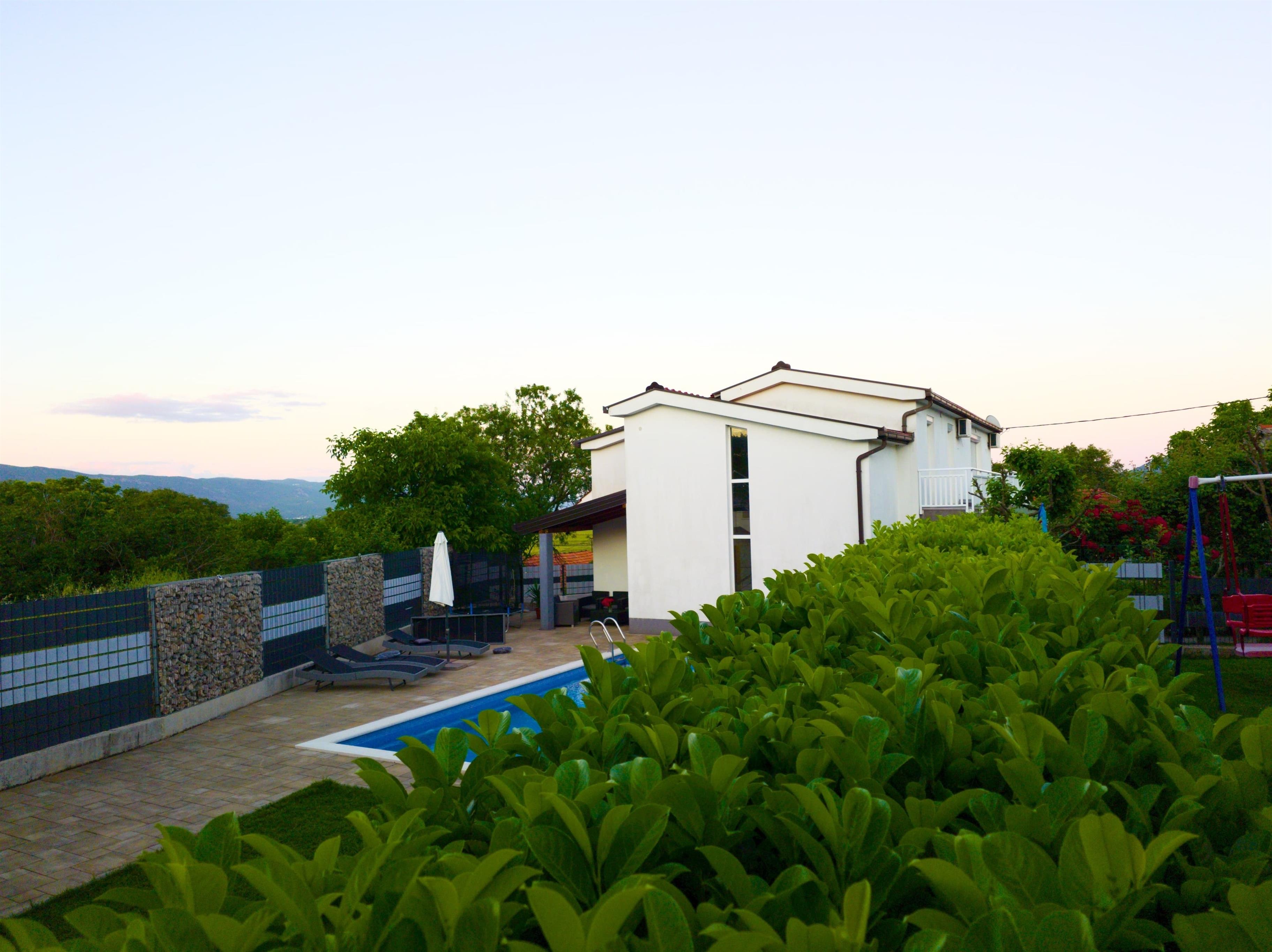 Entspannen sie auf geräumiger Terrasse mit Grill, umgeben von Wiesen und Obstgärten. Erfrischen sie sich im Pool während sich die Kinder im Spielbereich beschäftigen. Imotski ist bekannt für seinen Roten und Blauen See, sowie den Fluss Vrljica und bietet ein exzellentes gastronomisches Angebot und Unterhaltungsmöglichkeiten in etwa 7 km Entfernung. In nur etwa einer halben Stunde mit dem Auto erreichen Sie auch herrlichen Strände an der Riviera von Makarska Baška Voda und Brela.Das Haus ist für 8 Personen ausgestattet und verfügt über vier Schlafzimmer, zwei Bäder, Toilette, Wohnzimmer, Esszimmer, Küche, und vier Terrassen. Alle vier Schlafzimmer und das Wohnzimmer verfügen über eine Klimaanlage.