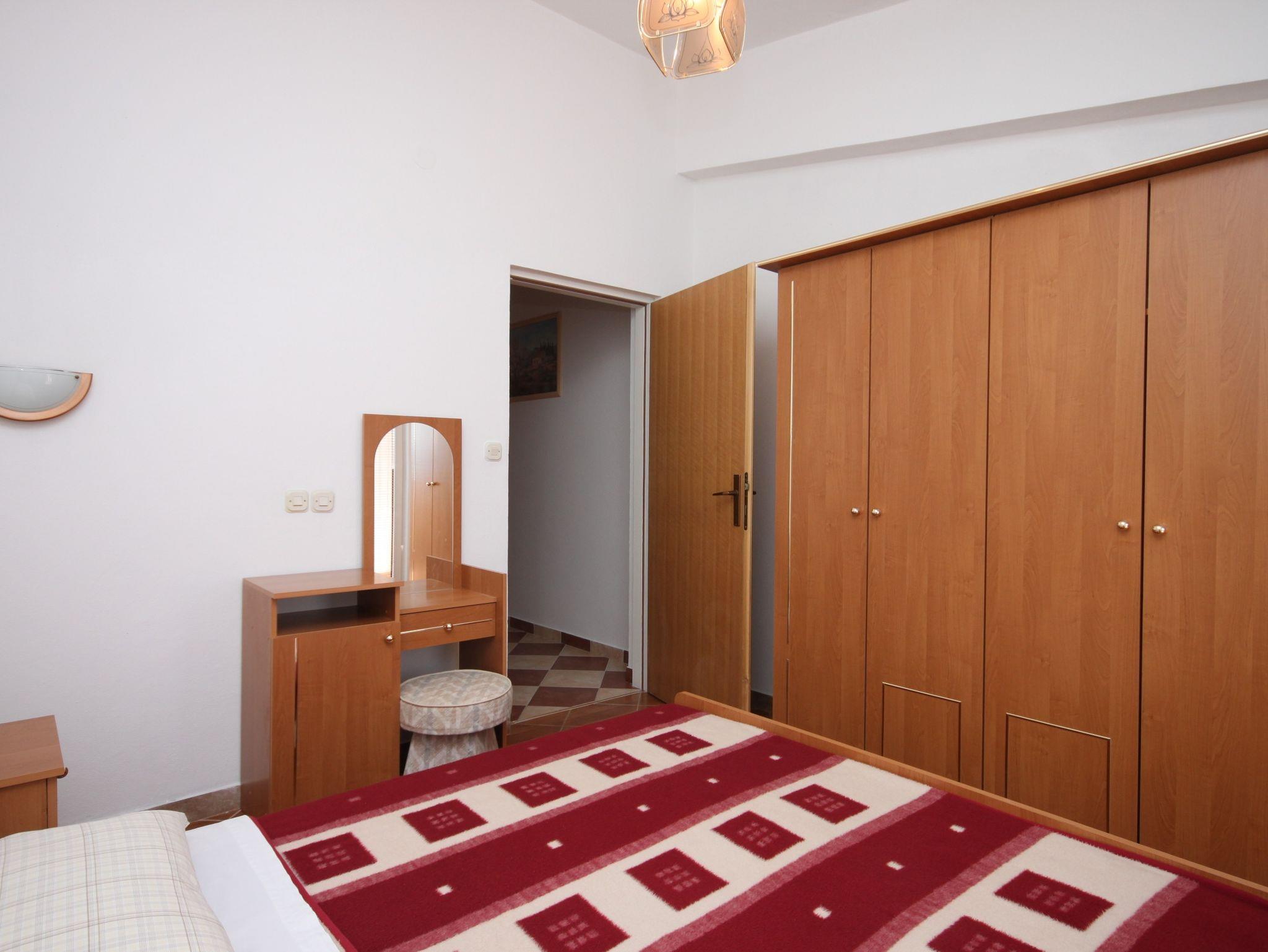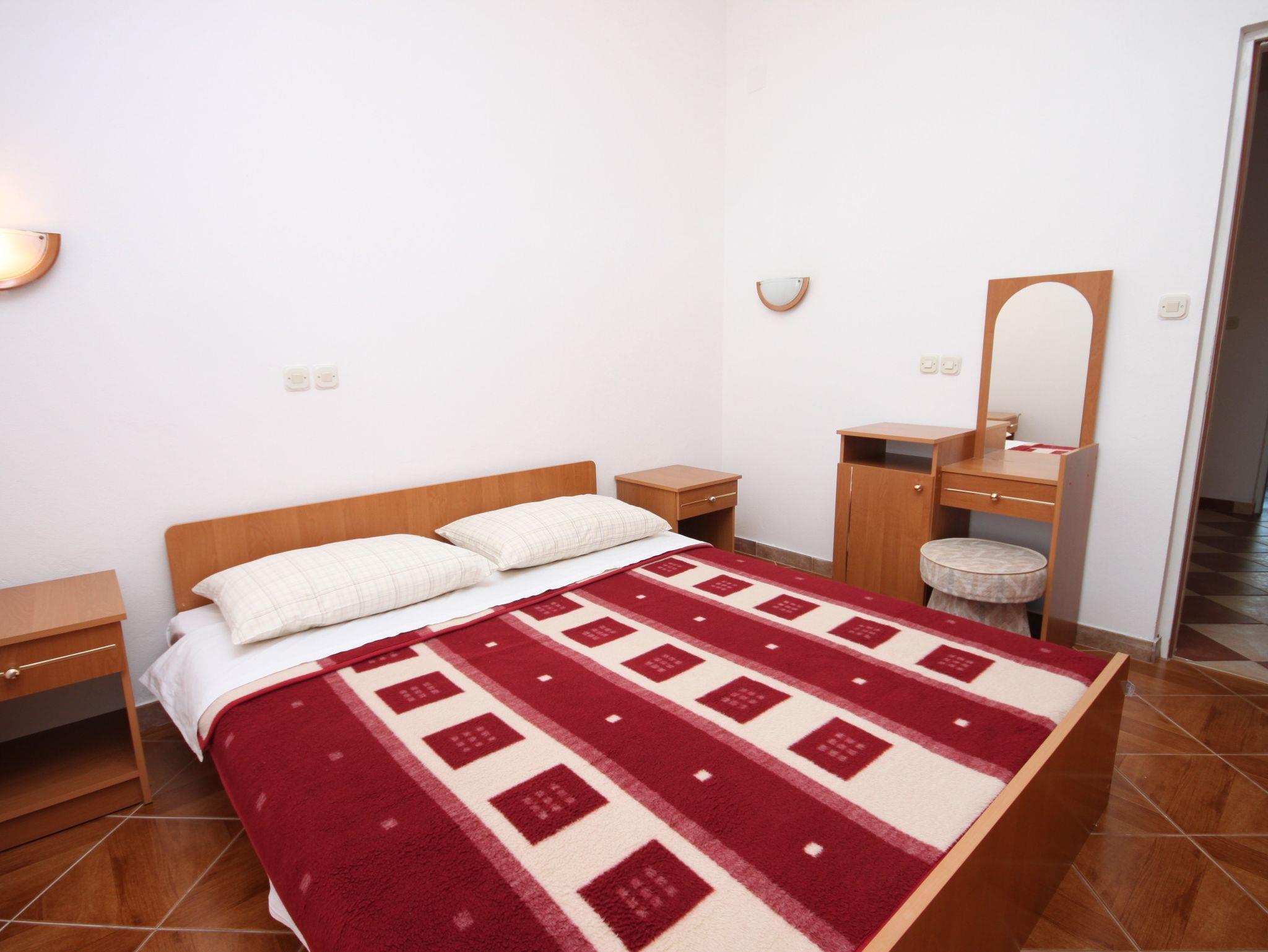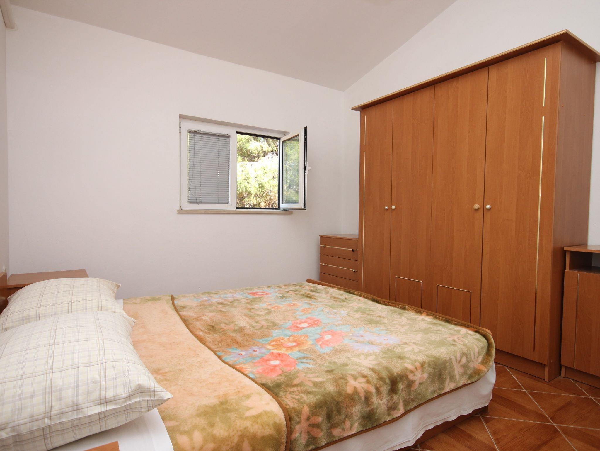 Ferienwohnung bietet Platz für 5 Gäste. Die Betten sind in Schlafzimmern, die es 2 gibt, innerhalb einer Gesamtfläche von 55m2, angeordnet. Die Gäste haben eine eigene Terrasse zur Verfügung, auf der sie in warmen Sommernächten genießen können. Das Apartment bietet Meerblick. Es ist erlaubt, Speisen auf dem Gemeinschafts-Grill vorzubereiten. In der Unterkunftseinheit besteht die Möglichkeit des Mitbringens von Haustieren gegen Aufpreis. IM PREIS INBEGRIFFEN: Kurtaxe, Endreinigung, Parkplatz, Bootsanlegeplatz, Kinderbett, Bügeleisen, Bügelbrett. VERBINDLICHE ZUSÄTZLICHE KOSTEN: Aufzahlung für Kurzaufenthalte (prozentualer Zuschlag pro Nächtigungsanzahl: 30% - 1, 20% - 2, 10% - 3). UNVERBINDLICHE ZUSÄTZLICHE KOSTEN: Klimatisierung (5,00 € pro Nacht), Haustiere (5,00 € pro Nacht), Zusatzbett (10,00 € pro Nacht). Die Verfügbarkeit zusätzlicher Dienstleistungen in Ihrem reservierten Termin und die Preise derselben (falls nicht aufgeführt) müssen im Voraus überprüft werden. Zusätzliche Dienstleistungen die in der Zahlungsaufforderung nicht aufgeführt sind werden direkt beim Vermieter bezahlt, angenommen der Gast nutzt auch diese.
