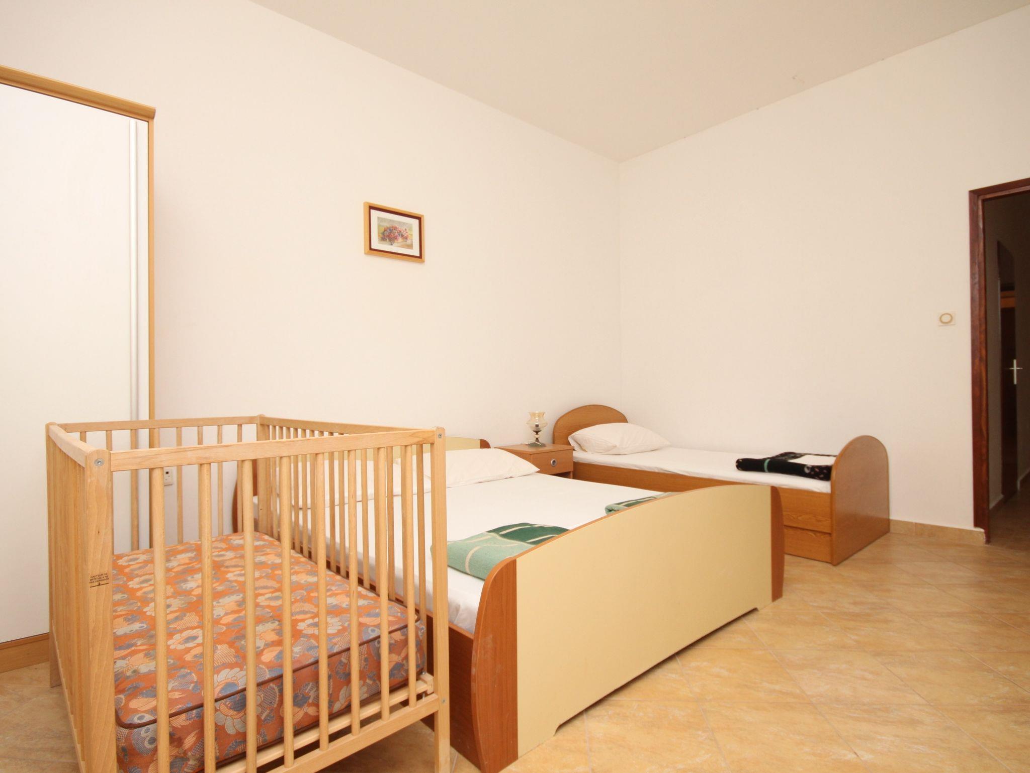 Ferienwohnung bietet Platz für 6 Gäste. Die Betten sind in Schlafzimmern, die es 2 gibt, innerhalb einer Gesamtfläche von 50m2, angeordnet. Die Gäste haben eine eigene Terrasse zur Verfügung, auf der sie in warmen Sommernächten genießen können. Es ist erlaubt, Speisen auf dem Gemeinschafts-Grill vorzubereiten. IM PREIS INBEGRIFFEN: Kurtaxe, Endreinigung, Klimatisierung, Parkplatz, Internet, Bootsanlegeplatz. VERBINDLICHE ZUSÄTZLICHE KOSTEN: Aufzahlung für Kurzaufenthalte (prozentualer Zuschlag pro Nächtigungsanzahl: 30% - 1, 20% - 2, 10% - 3). Die Verfügbarkeit zusätzlicher Dienstleistungen in Ihrem reservierten Termin und die Preise derselben (falls nicht aufgeführt) müssen im Voraus überprüft werden. Zusätzliche Dienstleistungen die in der Zahlungsaufforderung nicht aufgeführt sind werden direkt beim Vermieter bezahlt, angenommen der Gast nutzt auch diese. Ermäßigung auf den Grundpreis: Gratistag 14=13 (bei einem Aufenthalt von 14 Tagen oder mehr erhalten Sie einen Gratistag für den Aufenthalt bis 31.12.26).