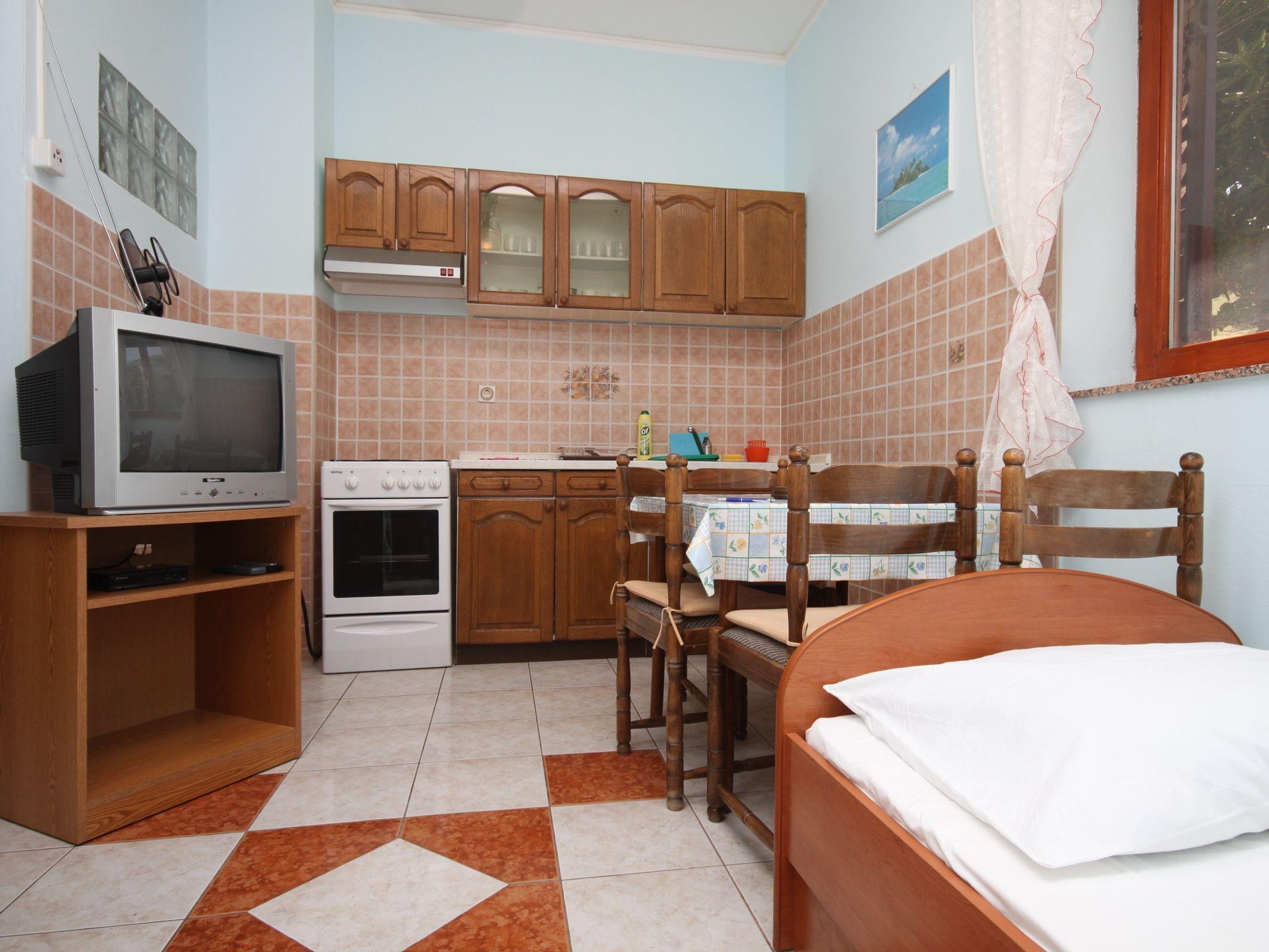 Ferienwohnung bietet Platz für 4 Gäste. Die Betten sind in Schlafzimmern, die es 1 gibt, und in Wohnzimmer, innerhalb einer Gesamtfläche von 32m2, angeordnet. Die Gäste haben eine eigene Terrasse zur Verfügung, auf der sie in warmen Sommernächten genießen können. Das Apartment bietet Meerblick. Es ist erlaubt, Speisen auf dem Gemeinschafts-Grill vorzubereiten. IM PREIS INBEGRIFFEN: Kurtaxe, Endreinigung, Klimatisierung, Parkplatz, Internet, Bootsanlegeplatz. VERBINDLICHE ZUSÄTZLICHE KOSTEN: Aufzahlung für Kurzaufenthalte (prozentualer Zuschlag pro Nächtigungsanzahl: 30% - 1, 20% - 2, 10% - 3). Die Verfügbarkeit zusätzlicher Dienstleistungen in Ihrem reservierten Termin und die Preise derselben (falls nicht aufgeführt) müssen im Voraus überprüft werden. Zusätzliche Dienstleistungen die in der Zahlungsaufforderung nicht aufgeführt sind werden direkt beim Vermieter bezahlt, angenommen der Gast nutzt auch diese. Ermäßigung auf den Grundpreis: Gratistag 14=13 (bei einem Aufenthalt von 14 Tagen oder mehr erhalten Sie einen Gratistag für den Aufenthalt bis 31.12.26).