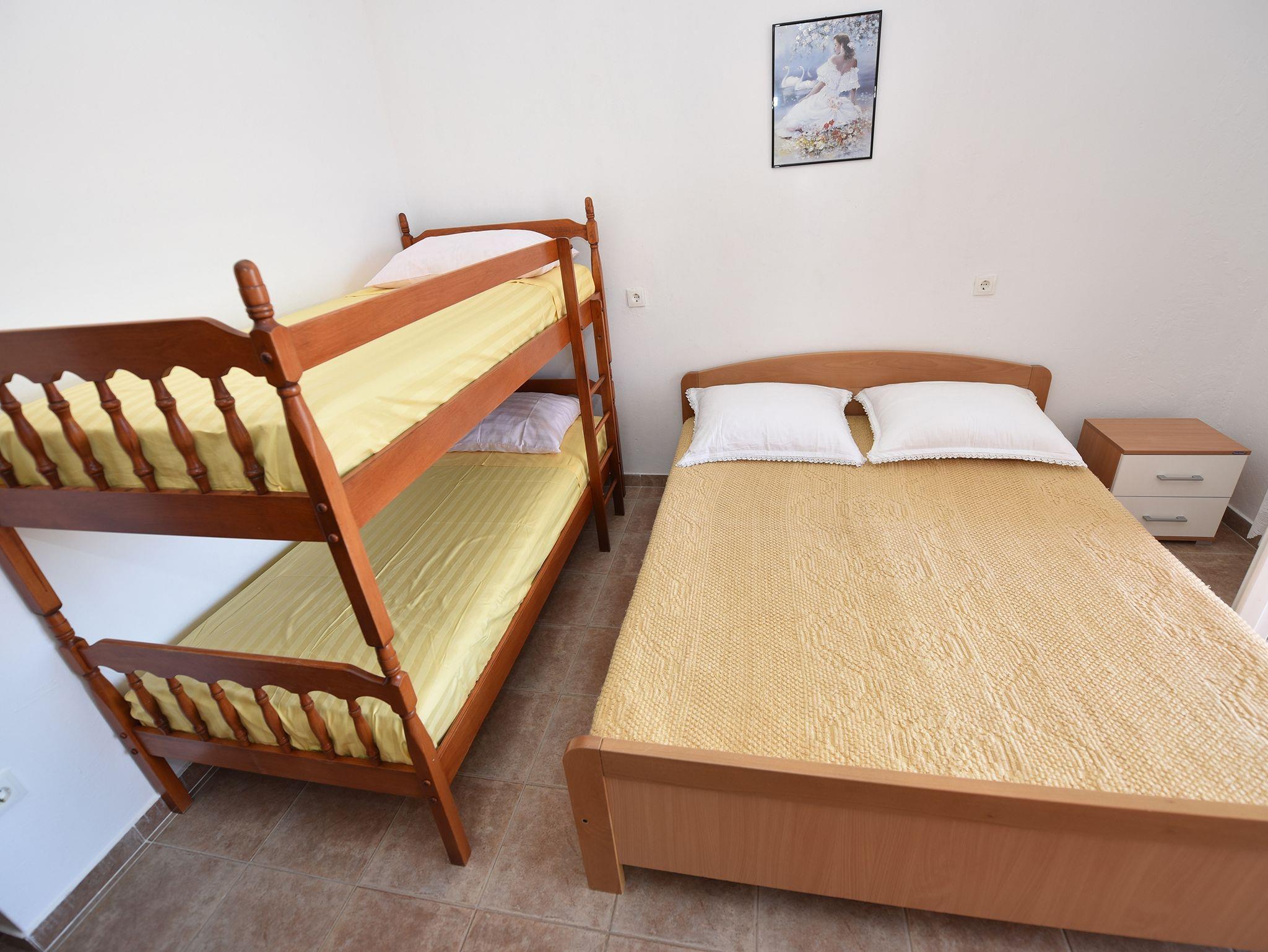 Ferienwohnung bietet Platz für 6 Gäste. Die Betten sind in Schlafzimmern, die es 1 gibt, und in Esszimmer, innerhalb einer Gesamtfläche von 29m2, angeordnet. Die Gäste haben eine eigene Terrasse zur Verfügung, auf der sie in warmen Sommernächten genießen können. Das Apartment bietet Meerblick. Es ist erlaubt, Speisen auf dem Gemeinschafts-Grill vorzubereiten. IM PREIS INBEGRIFFEN: Kurtaxe, Endreinigung, Parkplatz, Internet, Bootsanlegeplatz. VERBINDLICHE ZUSÄTZLICHE KOSTEN: Aufzahlung für Kurzaufenthalte (prozentualer Zuschlag pro Nächtigungsanzahl: 30% - 1, 20% - 2, 10% - 3). UNVERBINDLICHE ZUSÄTZLICHE KOSTEN: Klimatisierung (5,00 € pro Nacht). Die Verfügbarkeit zusätzlicher Dienstleistungen in Ihrem reservierten Termin und die Preise derselben (falls nicht aufgeführt) müssen im Voraus überprüft werden. Zusätzliche Dienstleistungen die in der Zahlungsaufforderung nicht aufgeführt sind werden direkt beim Vermieter bezahlt, angenommen der Gast nutzt auch diese. Ermäßigung auf den Grundpreis: Gratistag 14=13 (bei einem Aufenthalt von 14 Tagen oder mehr erhalten Sie einen Gratistag für den Aufenthalt bis 31.12.26).