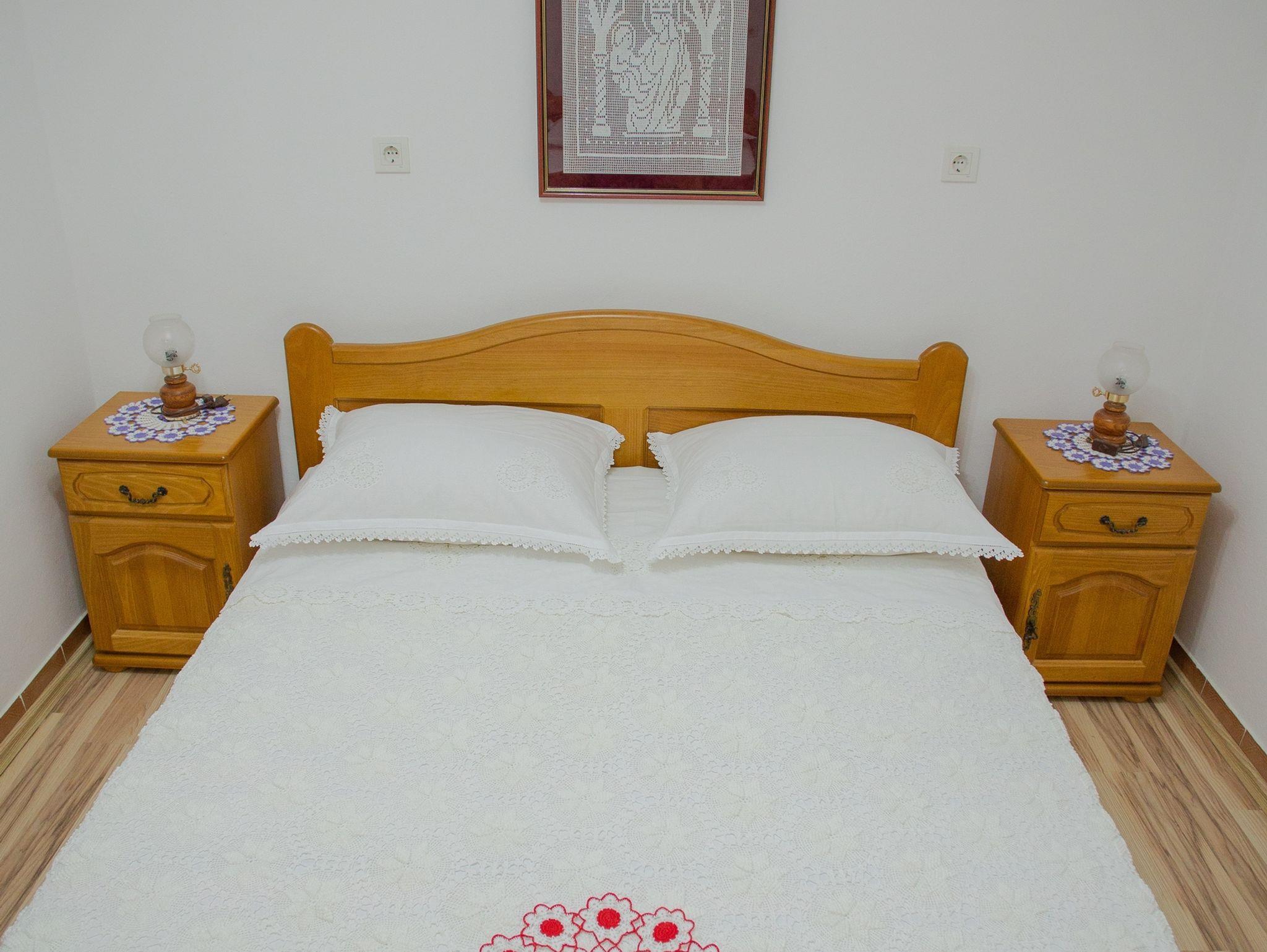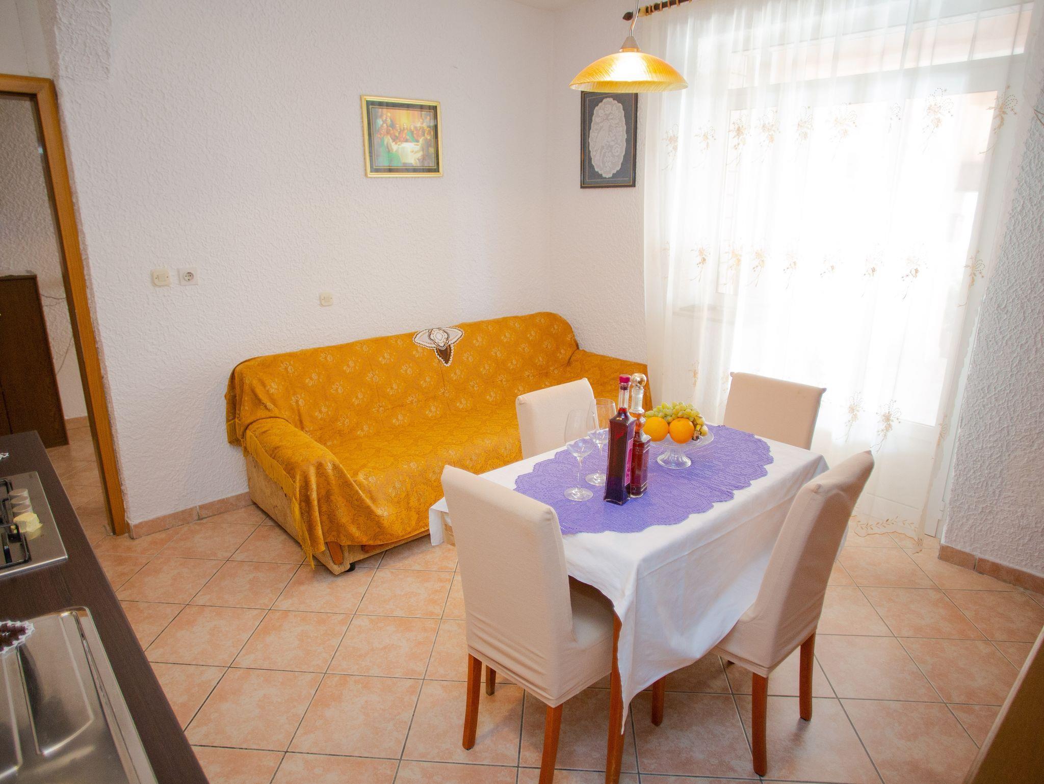 Ferienwohnung bietet Platz für 3 Gäste. Die Betten sind in Schlafzimmern, die es 1 gibt, und in Esszimmer, innerhalb einer Gesamtfläche von 41m2, angeordnet. Die Gäste haben eine eigene Terrasse zur Verfügung, auf der sie in warmen Sommernächten genießen können. Das Apartment bietet Meerblick. Es ist erlaubt, Speisen auf dem Gemeinschafts-Grill vorzubereiten. Durch die Terrasse der gebuchten Unterkunftseinheit gehen auch andere Gäste oder Vermieter. IM PREIS INBEGRIFFEN: Kurtaxe, Endreinigung, Parkplatz, Internet, Bootsanlegeplatz. VERBINDLICHE ZUSÄTZLICHE KOSTEN: Aufzahlung für Kurzaufenthalte (prozentualer Zuschlag pro Nächtigungsanzahl: 30% - 1, 20% - 2, 10% - 3). UNVERBINDLICHE ZUSÄTZLICHE KOSTEN: Klimatisierung (5,00 € pro Nacht). Die Verfügbarkeit zusätzlicher Dienstleistungen in Ihrem reservierten Termin und die Preise derselben (falls nicht aufgeführt) müssen im Voraus überprüft werden. Zusätzliche Dienstleistungen die in der Zahlungsaufforderung nicht aufgeführt sind werden direkt beim Vermieter bezahlt, angenommen der Gast nutzt auch diese. Ermäßigung auf den Grundpreis: Gratistag 14=13 (bei einem Aufenthalt von 14 Tagen oder mehr erhalten Sie einen Gratistag für den Aufenthalt bis 31.12.26).