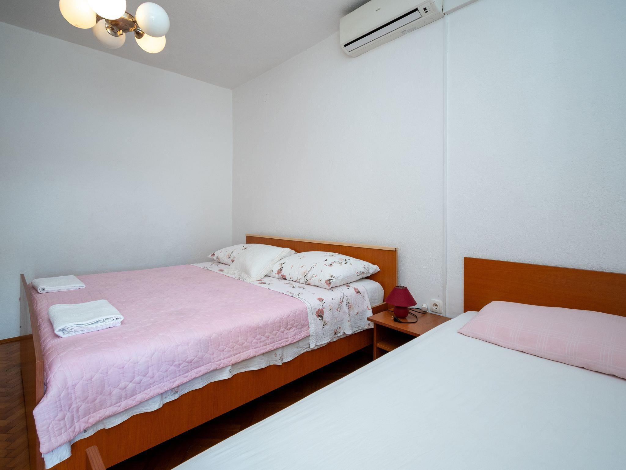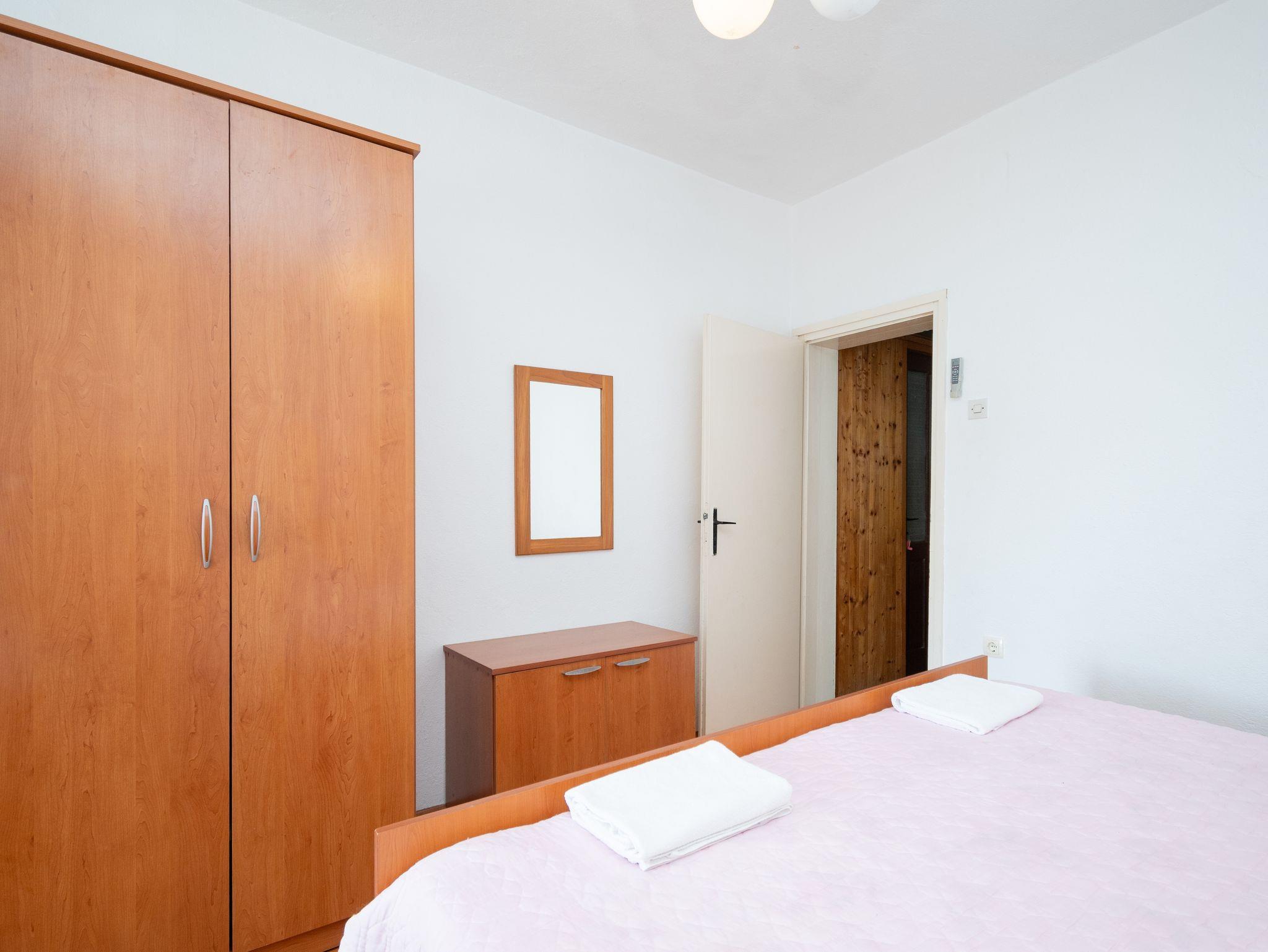 Ferienwohnung bietet Platz für 5 Gäste. Die Betten sind in Schlafzimmern, die es 1 gibt, und in Wohnzimmer, innerhalb einer Gesamtfläche von 59m2, angeordnet. Die Gäste haben eine eigene Terrasse zur Verfügung, auf der sie in warmen Sommernächten genießen können. Das Apartment bietet Meerblick. Es ist erlaubt, Speisen auf dem Gemeinschafts-Grill vorzubereiten. In der Unterkunftseinheit besteht die Möglichkeit des Mitbringens von Haustieren gegen Aufpreis. IM PREIS INBEGRIFFEN: Kurtaxe, Endreinigung, Klimatisierung, Parkplatz, Internet, tragbarer Grill, 1 Bett für Kinder (im Preis enthalten). VERBINDLICHE ZUSÄTZLICHE KOSTEN: Aufzahlung für Kurzaufenthalte (prozentualer Zuschlag pro Nächtigungsanzahl: 30% - 1, 20% - 2, 10% - 3). UNVERBINDLICHE ZUSÄTZLICHE KOSTEN: Bootsanlegeplatz (3,00 € pro Nacht), Haustiere (6,00 € pro Nacht). Die Verfügbarkeit zusätzlicher Dienstleistungen in Ihrem reservierten Termin und die Preise derselben (falls nicht aufgeführt) müssen im Voraus überprüft werden. Zusätzliche Dienstleistungen die in der Zahlungsaufforderung nicht aufgeführt sind werden direkt beim Vermieter bezahlt, angenommen der Gast nutzt auch diese.