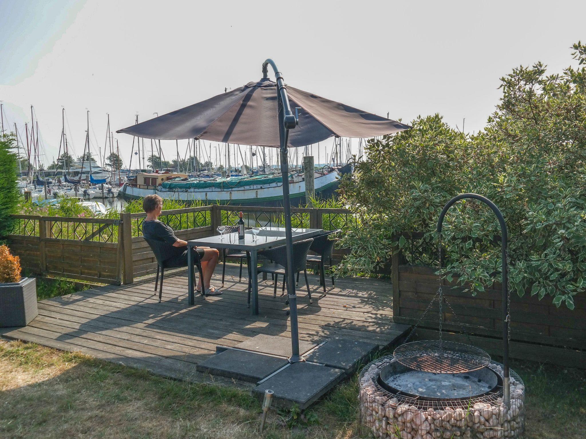 Ein eigener Parkplatz, eingezäunter Garten mit Terrasse und Gartenmöbeln, Strandkorb, Fester Grill, Holzdeck Am Lauwersmeer und einen Steg.