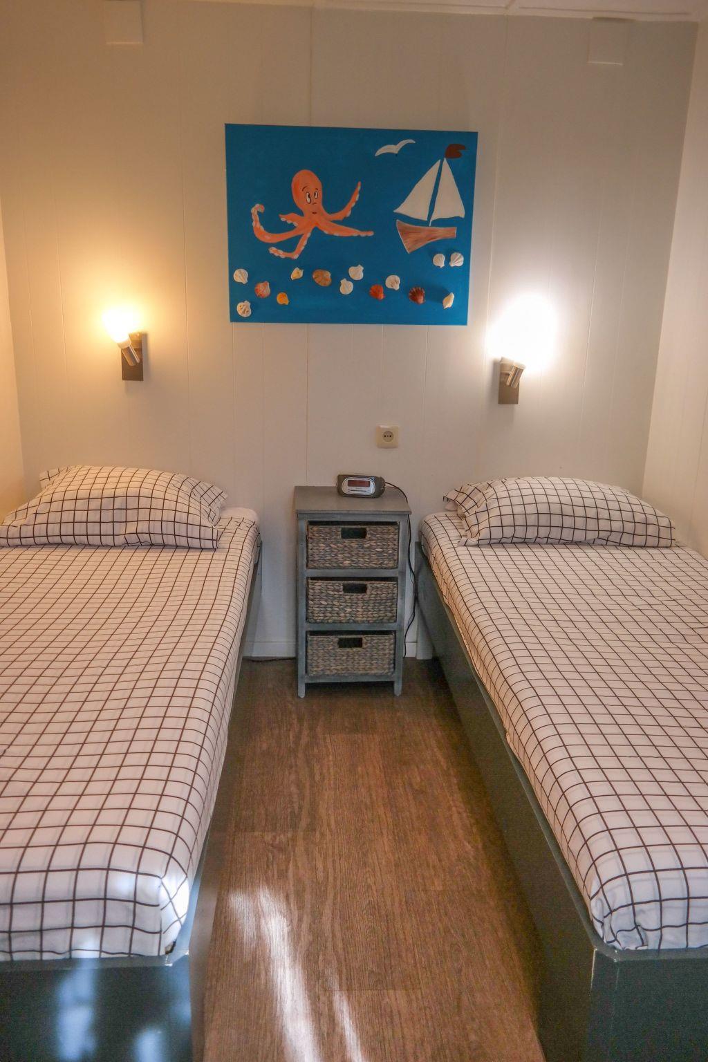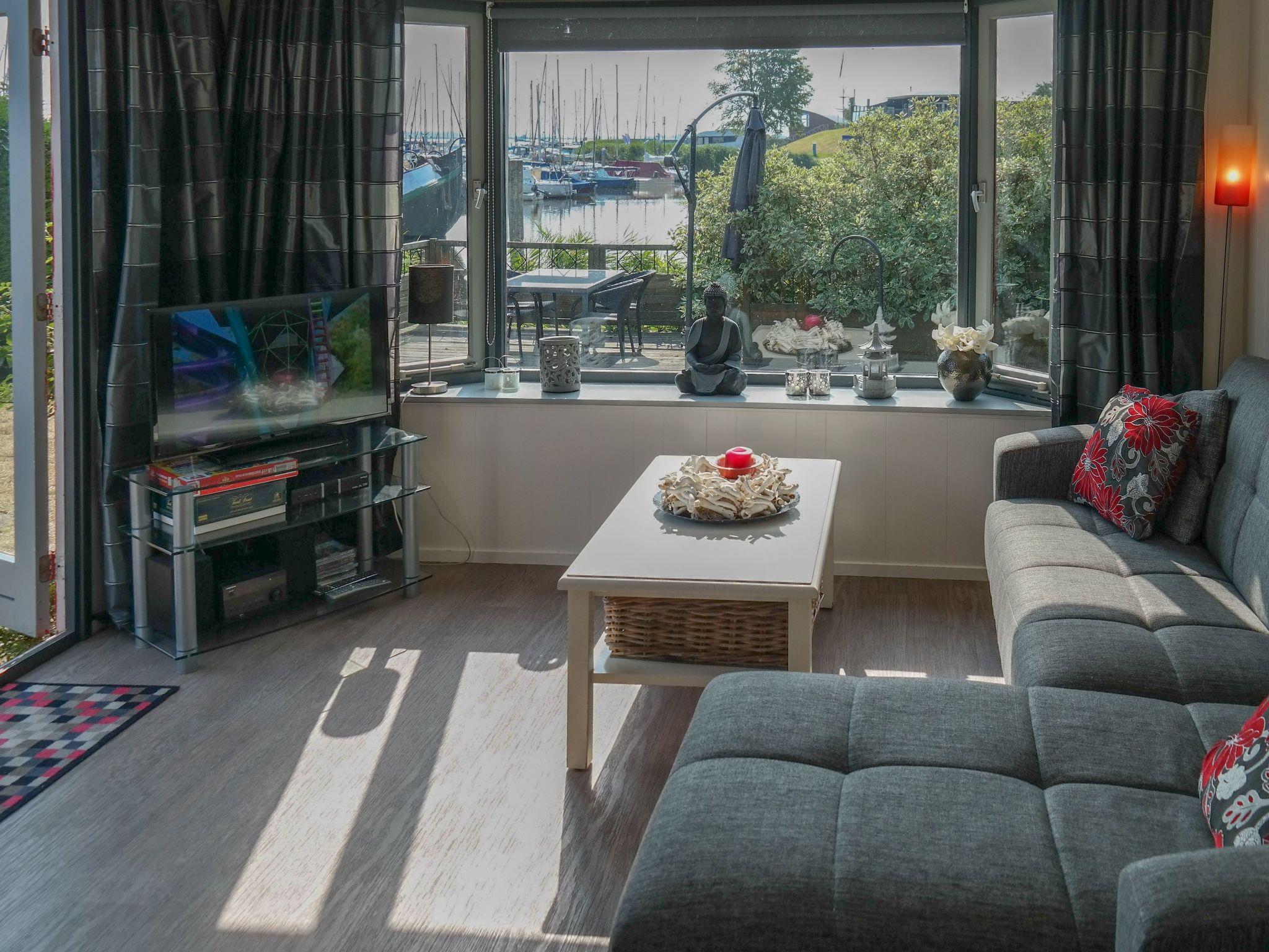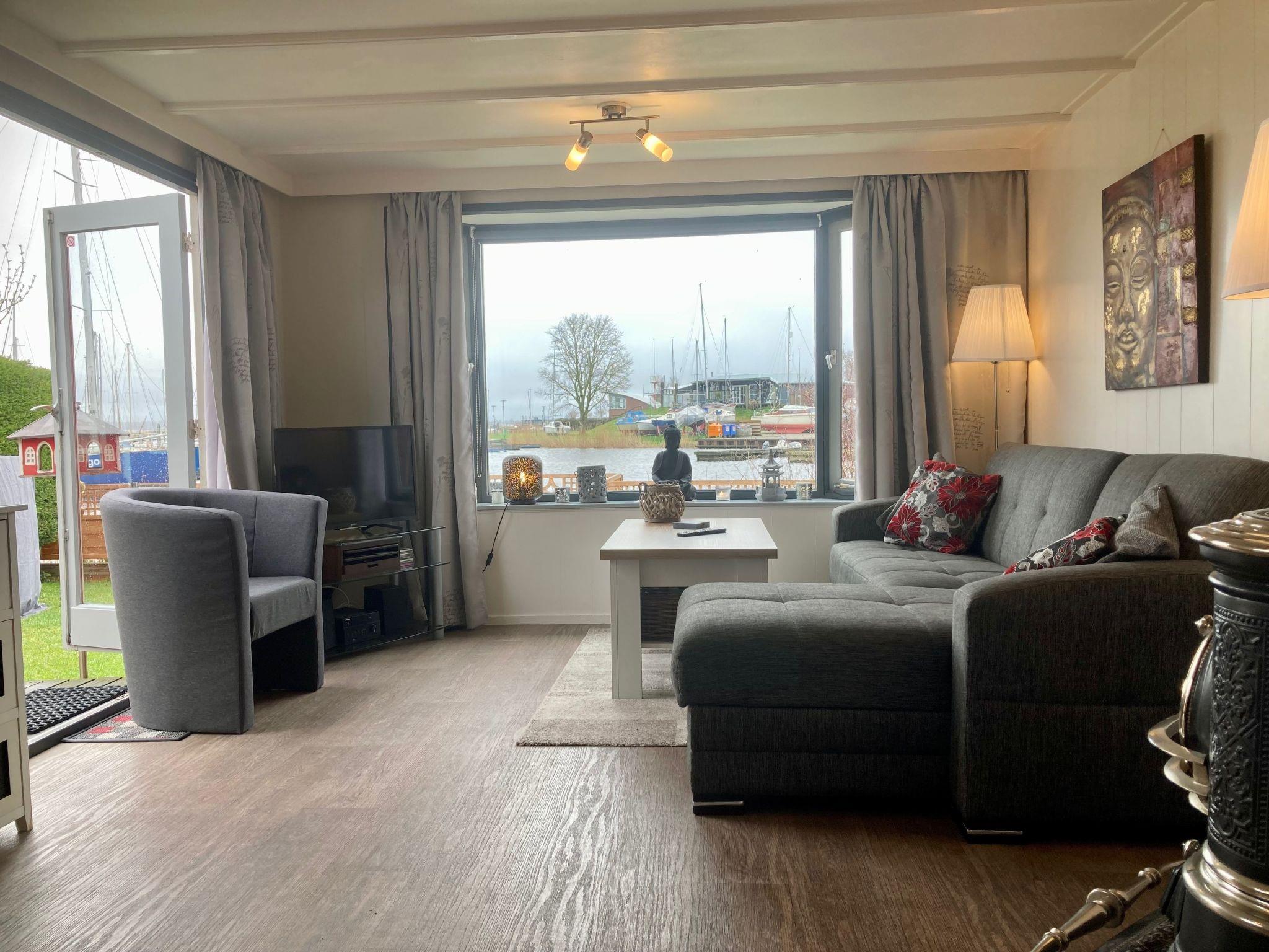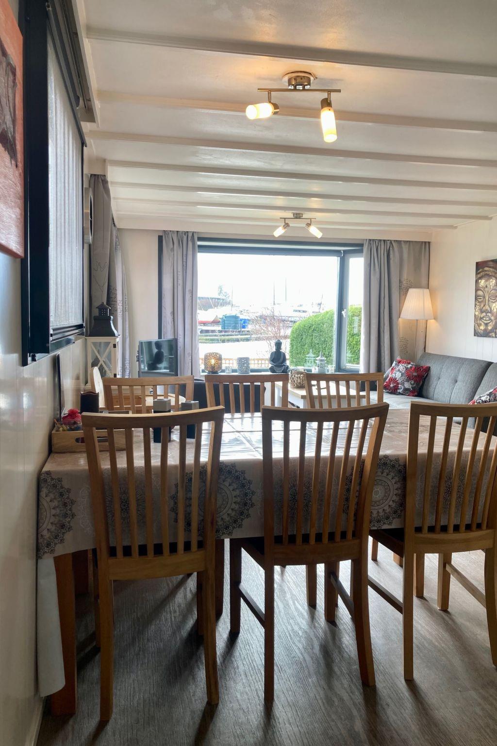 Das Haus mit einer Wohnfläche von ca. 60 m² besitzt zwei Schlafzimmer und bietet vier Personen ausreichend Platz. In einem der beiden Schlafzimmer steht ein französisches Bett von 1,40 x 2 m mit einer einteiligen Matratze. Im zweiten Schlafzimmer stehen 2 einzelne Betten. Der Wohnraum mit der Küchenzeile ist höchstens 10 m vom Ufer entfernt, wodurch man einen unvergleichlichen Blick über den Hafen genießen kann. Es gibt ein Bad mit WC und Dusche. Das Gartenhaus ist groß genug, um 4 Fahrräder darin unterzustellen. Der Steg wird von den Hauseigentümern u. Gästen auch zum Aufstellen von Liegestühlen genutzt. Die zum Haus gehörenden zwei Kanus werden dort zu Wasser gelassen. Das Lauwersmeer ist ein Paradies für Angler und Wassersportler aller Art. Zander und Hechte von einem Meter und länger sind hier keine Seltenheit.