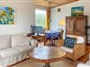 Durch die große Eingangshalle gelangt man in das Wohnzimmer mit Kamin, Sitzecke, TV und Tisch mit 4 Stühlen. Die einfache, aber sehr gemütliche Küche ist mit allen notwendigen Geräten ausgestattet und hat eine schöne Sitzecke mit großem Tisch, Sofa und Stühlen.