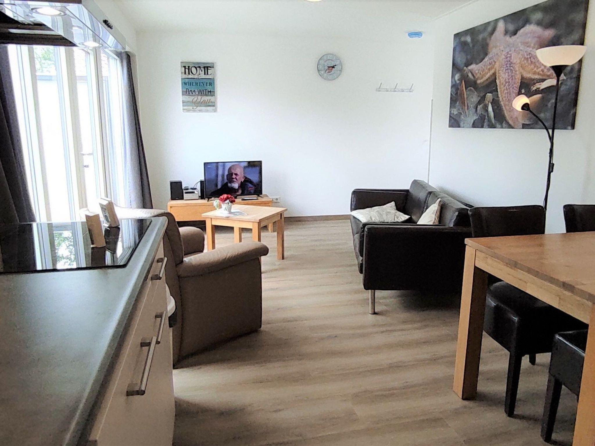 Im Inneren des Hauses finden Sie eine moderne Einrichtung, die sowohl Komfort als auch Funktionalität bietet. Der Wohnbereich verfügt über eine offene Küche, die mit einem vierflammigen Induktionskochfeld, einer eingebauten Mikrowelle/Backofen, einem Geschirrspüler und vielem mehr ausgestattet ist, so dass Sie die Mahlzeiten wie zu Hause zubereiten können. Das Wohnzimmer ist mit einem Sessel, einem Dreisitzer-Sofa und einem Couchtisch gemütlich eingerichtet und lädt zu entspannten Abenden ein. Ein 100Hz-LCD-Farbfernseher mit USB-Anschluss, ein DVD-Player und ein Stereo-Radio/CD-Player sorgen für Unterhaltung. Beide Schlafzimmer sind mit bequemen Hotel-Boxspringbetten ausgestattet, während das Badezimmer mit Dusche, Toilette, Waschbecken und Haartrockner für Ihren Komfort ausgestattet ist.