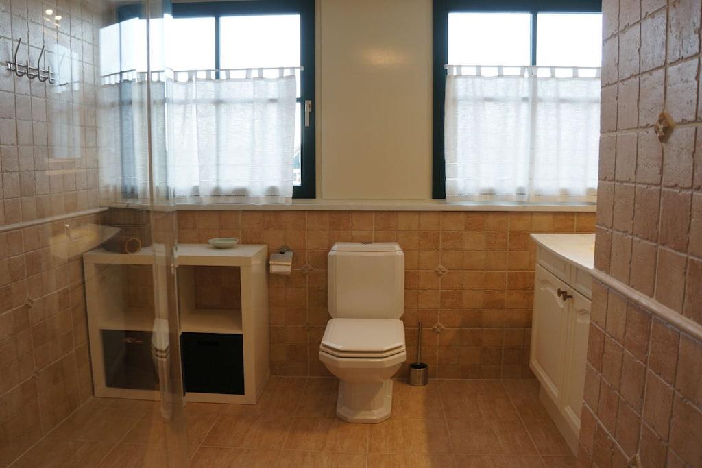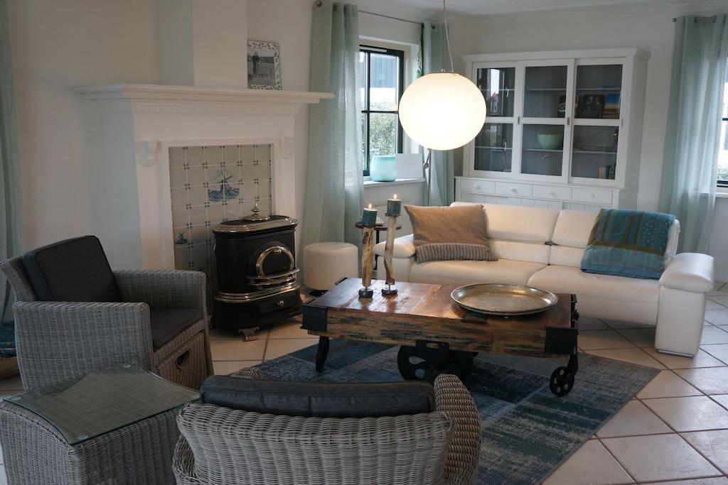 Parterre: (Wohnzimmer(TV, DVD-Spieler, Radio, CD-Spieler, Heizung), Küche(Esstisch, Herd, Wasserkocher, Toaster, Kochherd, Kaffeemaschine, Backofen, Mikrowelle, Spülmaschine, Kühlschrank, Tiefkühlschrank, Heizung), Badezimmer(Waschbecken, Toilette), Abstellraum(Trockner, Waschmaschine, Hochstuhl, Bügelbrett, Bügeleisen, Trockenschrank)) In der 1. Etage: (Schlafzimmer(Doppelbett, Heizung, Fliegenfenster), Schlafzimmer(Doppelbett, Heizung, Fliegenfenster), Schlafzimmer(Einzelbett, Einzelbett, Fliegenfenster, ), Badezimmer(Dusche, Waschbecken, Toilette, Föhn, )) Terrasse, Garten, Gartenmöbel, Liegen, Gartenhaus