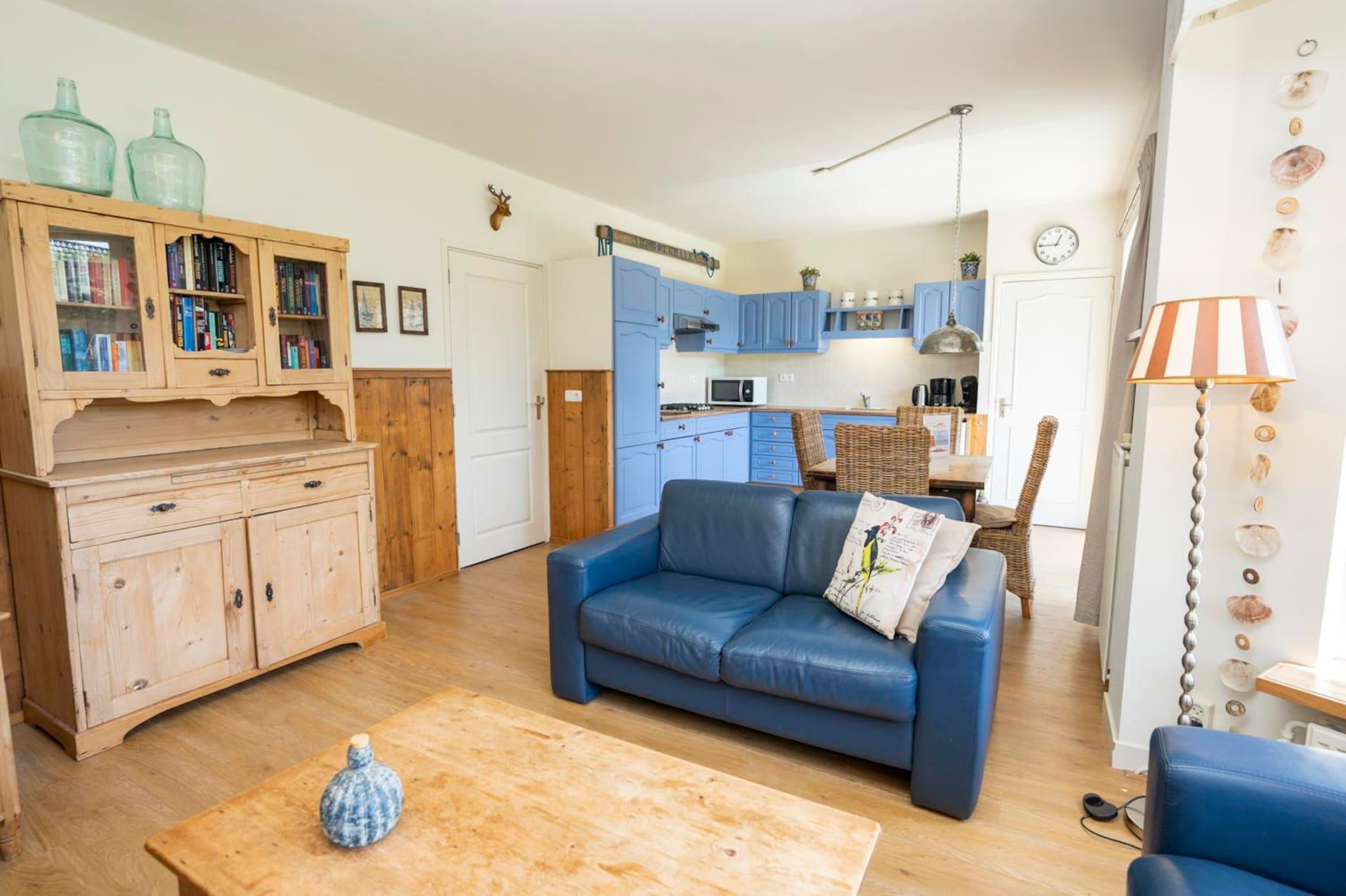 Diese schöne Erdgeschosswohnung in De Koog bietet komfortablen und einladenden Platz für bis zu vier Gäste und ist ideal gelegen, nur wenige Gehminuten vom atemberaubenden Strand von Texel entfernt. Die Wohnung befindet sich in der kleinen Anlage „Strandhuys“, eingebettet in den Wald im Norden von De Koog, und bietet einen ruhigen Rückzugsort in der Nähe der Natur und des lebhaften Küstenortes. Der geräumige Wohnbereich mit gemütlichen Sitzgelegenheiten und einem Esstisch schafft die perfekte Umgebung zum Entspannen oder für gemeinsame Mahlzeiten. Die offene Küche ist komplett ausgestattet mit Geschirrspüler, Kühlschrank und Kombi-Mikrowelle und ermöglicht so die bequeme Zubereitung von Mahlzeiten. Die Wohnung verfügt über zwei Schlafzimmer: eines mit zwei Einzelbetten und das andere mit einem Etagenbett – ideal für Familien oder Freunde. Das Badezimmer ist mit einer ebenerdigen Dusche und einem WC ausgestattet. Für zusätzlichen Komfort können Gäste die gemeinschaftliche Waschmaschine und den Trockner nutzen. Genießen Sie die sonnige Südterrasse, die sich ideal zum Essen im Freien und Entspannen an der frischen Seeluft eignet. Zu den weiteren Annehmlichkeiten gehören WLAN, ein Flachbildfernseher und ein Parkplatz. Die Wohnung verfügt über eine Zentralheizung und sorgt so das ganze Jahr über für einen gemütlichen Aufenthalt. Die Lage bietet direkten Zugang durch die Dünen zum breiten Sandstrand von De Koog und ist somit ein ausgezeichneter Ausgangspunkt für Strandurlaube, zum Erkunden der Natur und zum Genießen der lebhaften Küstenatmosphäre von Texels beliebtestem Ferienort.