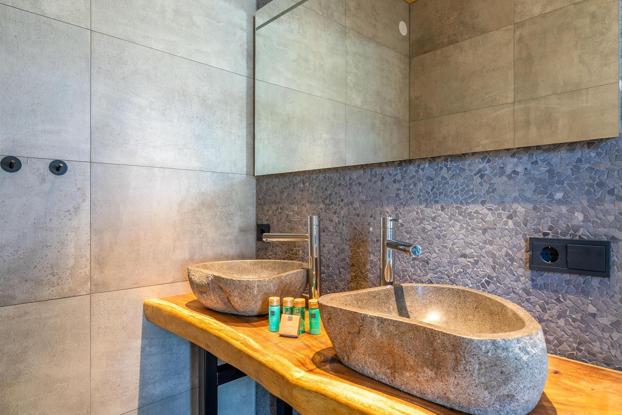Stilvolle Übernachtung mit Whirlpool und stimmungsvollem Kaminfeuer.