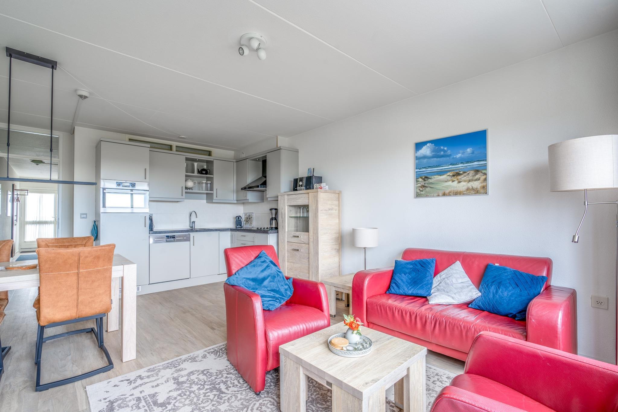 Ferienwohnung für 4 Personen mit Insel- und Meerblick im 2. Stock. Balkon mit Blick auf Texel, die Dünen und die Nordsee. Wohnzimmer mit Sitzecke, Esstisch, TV und Stereoanlage. Die offene Küche ist mit Geschirrspüler, Kombi-Mikrowelle, Kühl-Gefrierkombination und verschiedenen Kaffeemaschinen ausgestattet. Zwei Schlafzimmer, beide mit zwei Einzelbetten. Das kleinste Schlafzimmer befindet sich in der Mitte der Wohnung und hat daher kein Fenster. Badezimmer mit Waschbecken und Dusche. Die Toilette ist separat. Kleines Schlafzimmer: Betten 70 x 200 cm. Balkon mit Blick auf den Badeort De Koog, die Dünen und das Meer. Waschmöglichkeiten sind vor Ort vorhanden. Kindermöbel sind auf Anfrage erhältlich. Kostenloses WLAN. Rauchen ist nicht gestattet. Pro Unterkunft steht ein Parkplatz vor Ort zur Verfügung.