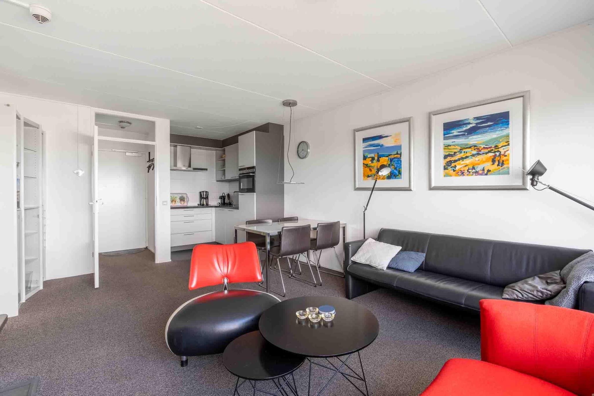 Ferienwohnung für 4 Personen im 2. Obergeschoss mit Panoramablick auf die Nordsee vom Wohnzimmer und dem großzügigen Balkon. Wohnzimmer mit Sitzecke, TV und Essbereich. Die offene Küche ist mit Geschirrspüler, Kombi-Mikrowelle, Kühl-Gefrierkombination und verschiedenen Kaffeemaschinen ausgestattet. Die Ferienwohnung verfügt über zwei Schlafzimmer, beide mit je zwei Einzelbetten. Ein Schlafzimmer hat ein Boxspringbett mit Blick auf die Nordsee. Das Badezimmer verfügt über eine geräumige ebenerdige Dusche und ein Doppelwaschbecken. Das WC ist separat. Der Balkon ist mit Gartenmöbeln ausgestattet und bietet einen wunderschönen Blick auf die Nordsee. Kostenloses WLAN ist verfügbar. Kindermöbel sind auf Anfrage und gegen Gebühr erhältlich. Eine Waschküche steht in der Anlage gegen Gebühr zur Verfügung. Jede Unterkunft verfügt über einen Parkplatz auf dem Grundstück. Rauchen ist nicht gestattet.