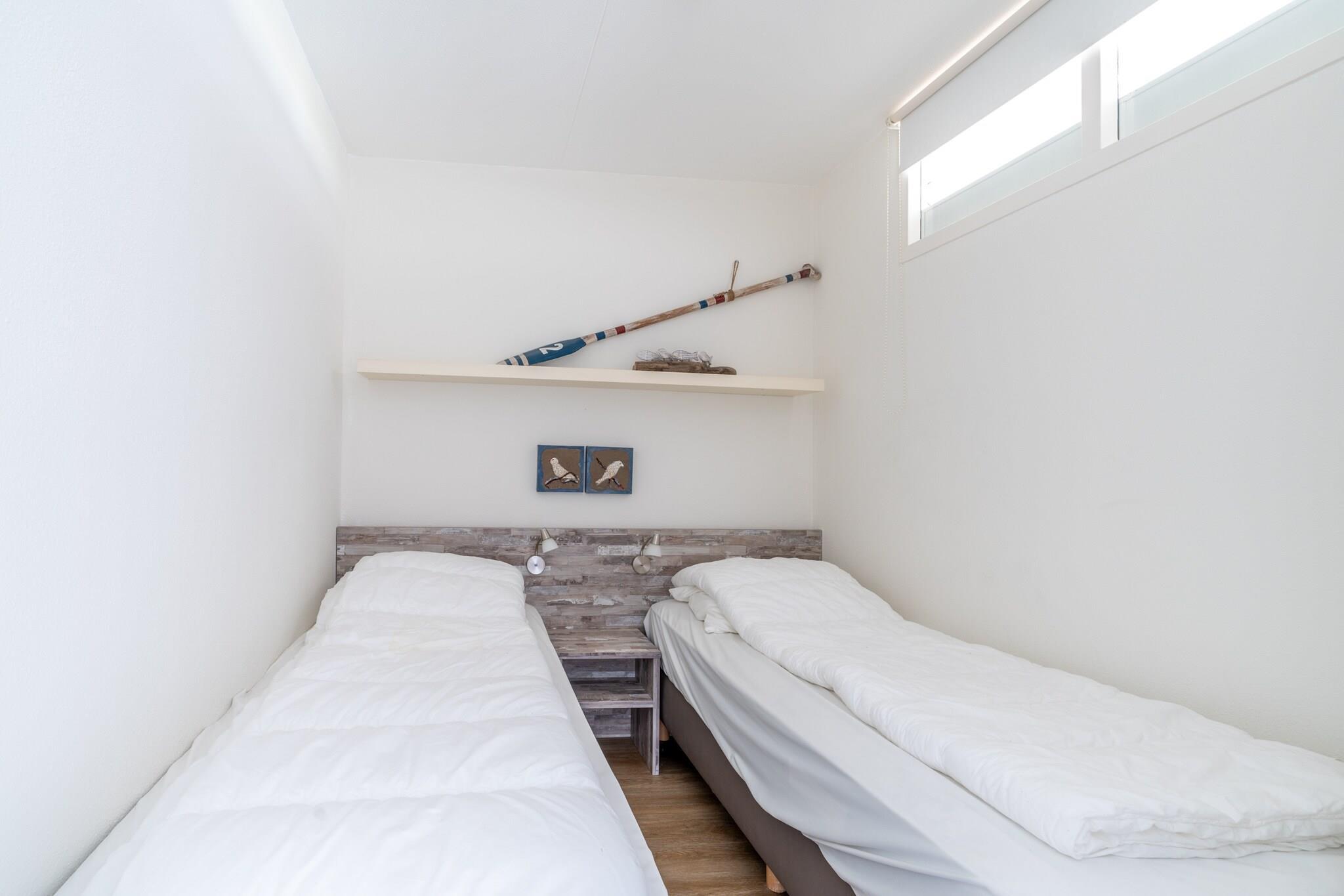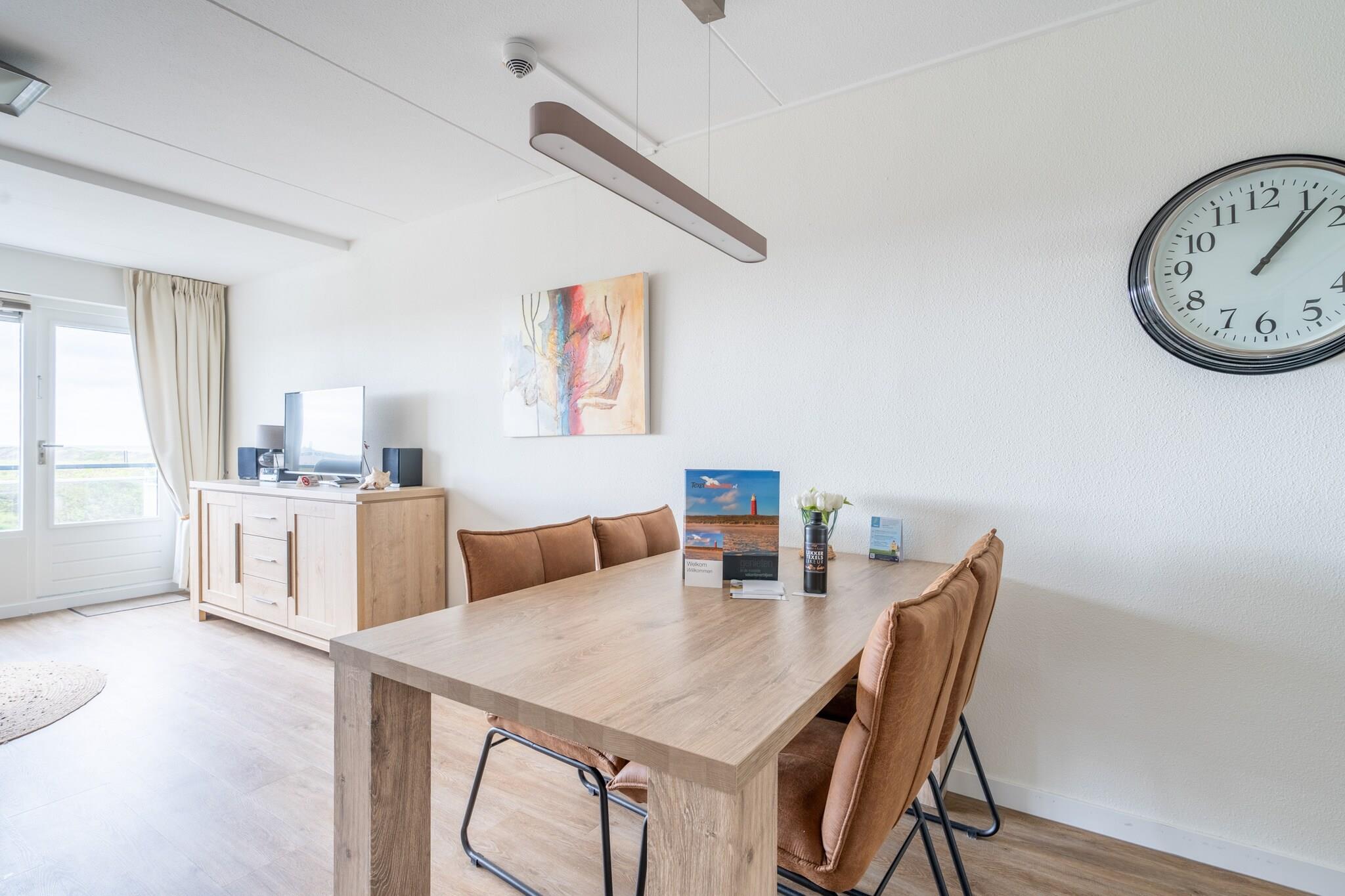 Dieses geschmackvoll eingerichtete 4-Personen-Appartement befindet sich im ersten Stock und bietet Blick auf De Koog, die Dünen und die Nordsee. Das Wohnzimmer verfügt über eine Sitzecke mit TV und einen Essbereich mit einem Esstisch für 4 Personen. Die offene Küche ist komplett ausgestattet und bietet unter anderem einen Geschirrspüler, eine Kühl-Gefrierkombination, eine Kombi-Mikrowelle und verschiedene Kaffeemaschinen. Es gibt zwei Schlafzimmer, eines davon mit einem Doppelbett mit zwei Einzelmatratzen. Das andere hat zwei einzelne Boxspringbetten und liegt in der Mitte des Appartements, sodass es keine Fenster mit Blick nach draußen gibt. Das gepflegte Badezimmer verfügt über eine Badewanne, eine Dusche und ein Doppelwaschbecken. Die Toilette ist separat. Der Balkon bietet Blick auf die Nordsee und die Dünen. Gartenmöbel sind vorhanden. Eine Waschküche steht in der Anlage gegen Gebühr zur Verfügung. Kindermöbel sind auf Anfrage gegen Gebühr erhältlich. Kostenloses WLAN. Rauchen ist nicht gestattet. Pro Unterkunft steht 1 Parkplatz auf dem Gelände zur Verfügung.
