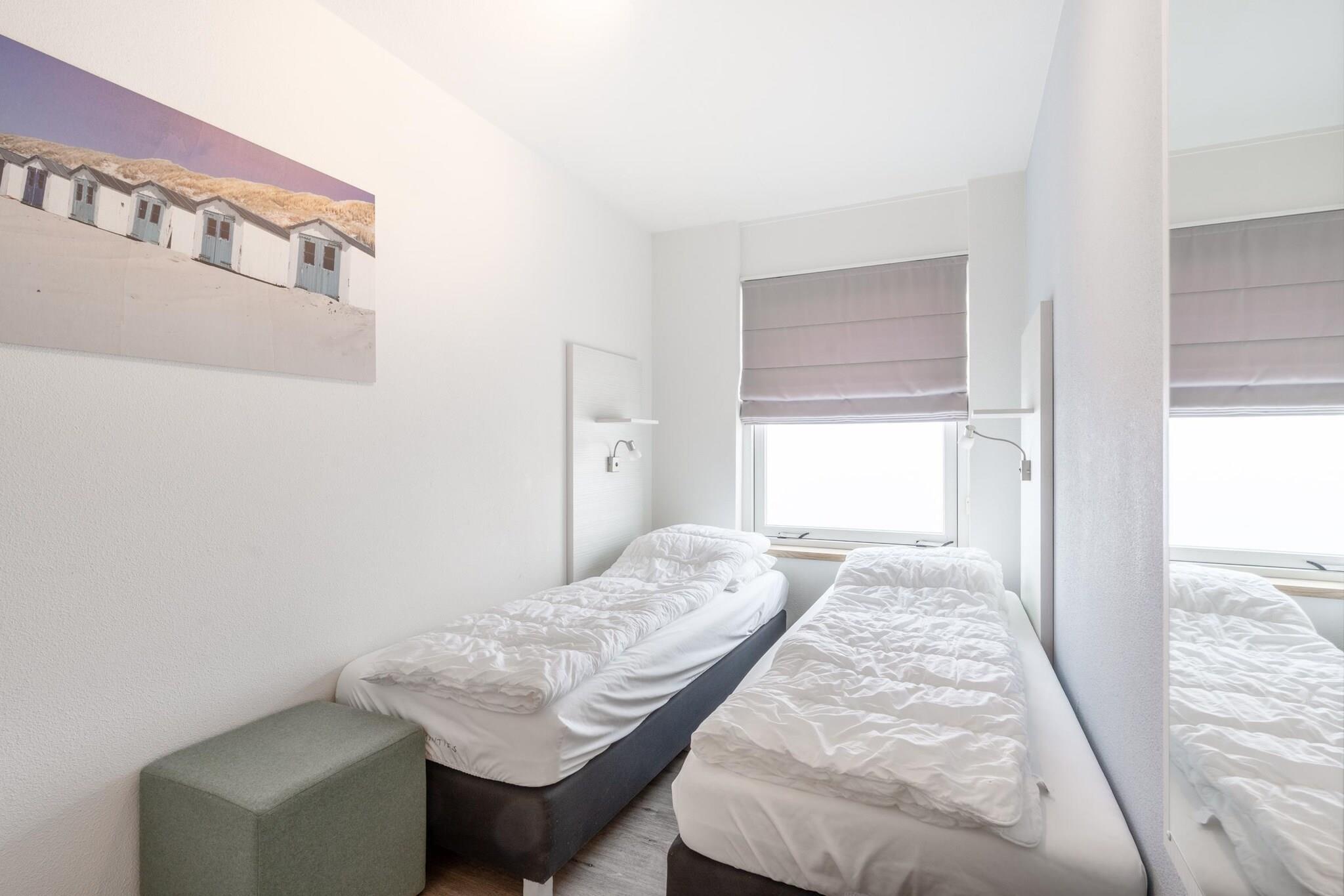 Geschmackvoll eingerichtetes Apartment für 4 Personen mit Inselblick im zweiten Stock. Es verfügt über einen Balkon mit Blick auf das Seebad De Koog und die umliegenden Felder. Das gemütliche Wohnzimmer bietet eine Sitzecke, einen Kamin, einen Fernseher, eine Musikanlage und einen Essbereich mit einem Esstisch für 4 Personen. Die offene Küche ist komplett ausgestattet und verfügt unter anderem über einen Geschirrspüler, eine Kombi-Mikrowelle, einen Kühl-Gefrierschrank und verschiedene Kaffeemaschinen. Es gibt zwei Schlafzimmer: Das Hauptschlafzimmer verfügt über ein Doppel-Boxspringbett und einen Fernseher. Das kleinere Schlafzimmer bietet zwei Einzel-Boxspringbetten. Das moderne Badezimmer ist mit einer geräumigen ebenerdigen Dusche und einem Doppelwaschbecken ausgestattet. Die Toilette ist separat. Der Balkon ist mit Gartenmöbeln ausgestattet und bietet einen Blick auf das Seebad De Koog. Von der Terrasse aus können Sie einen wunderschönen Sonnenaufgang bewundern. Waschmöglichkeiten stehen vor Ort zur Verfügung. Kindermöbel sind auf Anfrage und gegen Gebühr erhältlich. Kostenloses WLAN. Rauchen ist nicht gestattet. Pro Unterkunft steht vor Ort ein Parkplatz zur Verfügung.