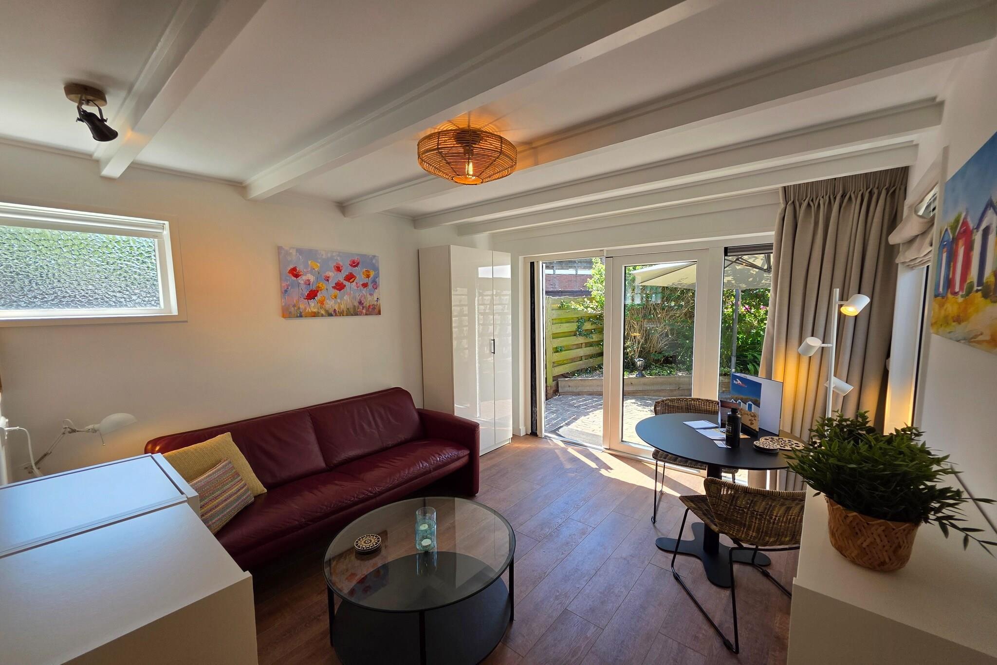 Charmantes und gemütliches Studio-Apartment für 2 Personen in der Ruijslaan im Badeort De Koog. In der Nähe von Wald und Dünen gelegen, ist der Nordseestrand fußläufig erreichbar. Das gemütliche Wohnzimmer mit Sitzecke verfügt über einen Fernseher und Glastüren, die auf eine sonnige Terrasse führen. Es gibt einen Esstisch für zwei Personen. Die offene Küche ist mit einem Geschirrspüler, einem Heißluftofen, einem 2-Flammen-Induktionskochfeld und verschiedenen Kaffeemaschinen ausgestattet. Der Schlafbereich ist mit einem Doppel-Boxspringbett (140 x 200 cm) und einem Waschbecken ausgestattet. Das Badezimmer verfügt über eine Dusche und ein WC. Der Kleiderschrank befindet sich im Wohnzimmer. Der komplett umzäunte Garten mit Terrasse ist mit Gartenmöbeln und einem Sonnenschirm ausgestattet. Ein Kleiderständer befindet sich im Gartenhaus. Kostenloses WLAN. Private Parkplätze stehen an der Wohnung zur Verfügung. Kindermöbel können gegen Gebühr gemietet werden. Die Wohnung grenzt an unser Ferienhaus in der Ruijslaan 13A. Diese Wohnungen können auf Wunsch problemlos kombiniert werden. Das normalerweise geschlossene Tor kann geöffnet werden, sodass ein Ganzes entsteht.
