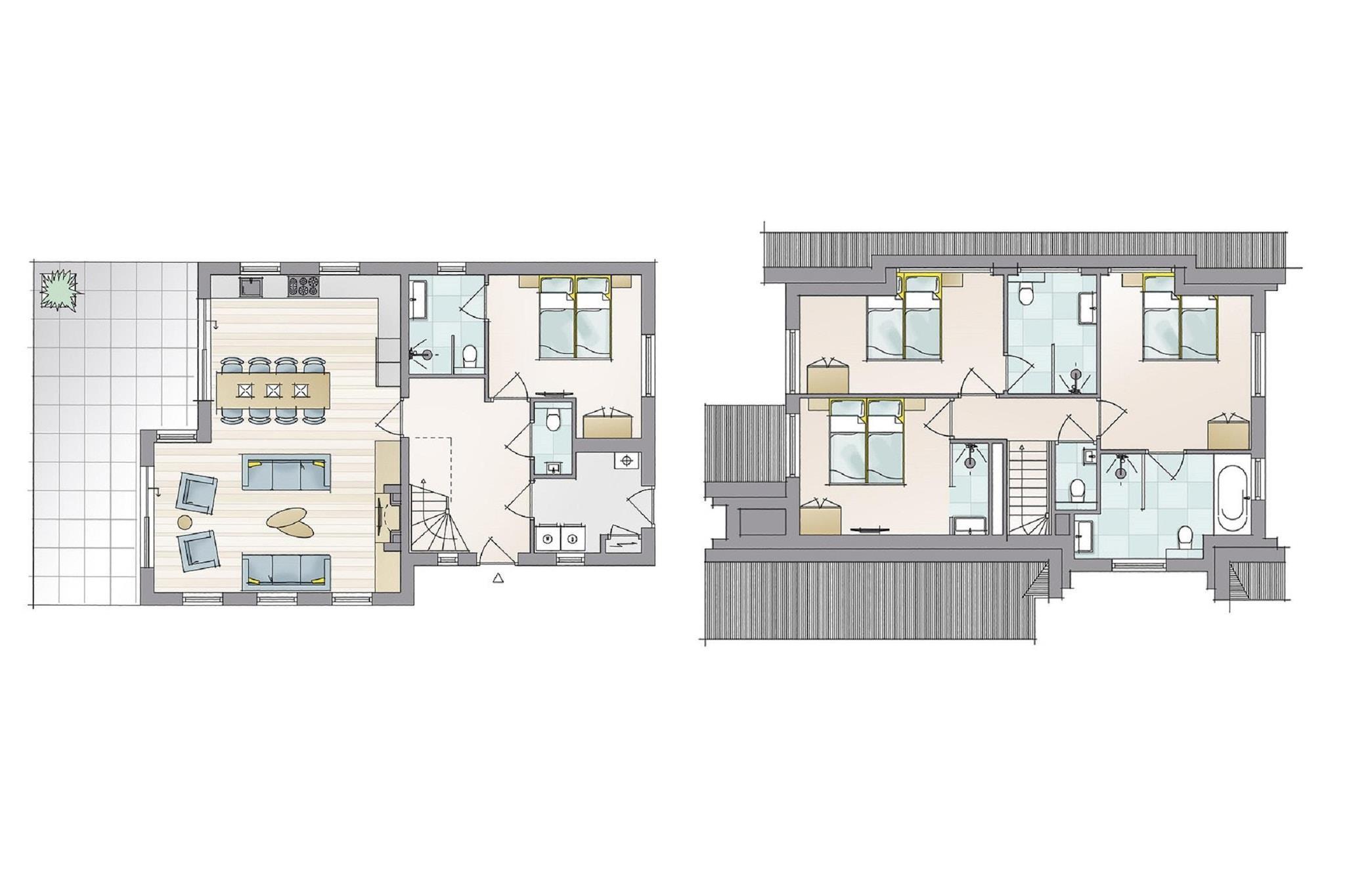 Diese Suche ist ideal für größere oder befreundete Familien, die unabhängig und doch nahe beieinander wohnen möchten.Siehe benachbarte Häuser