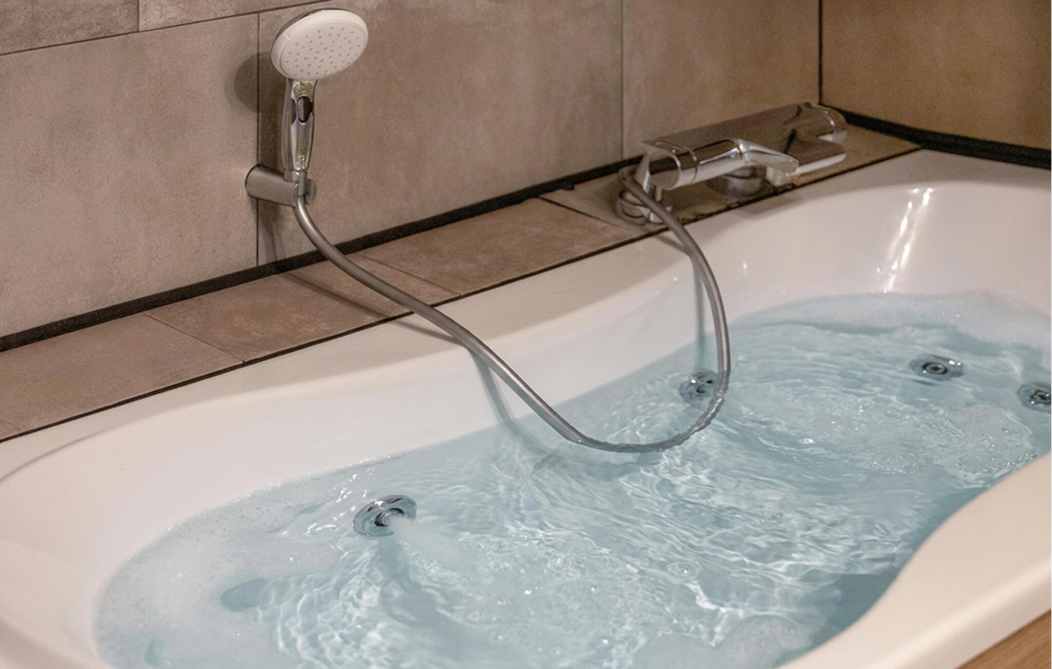 - WC mit warmem und kaltem Wasser, Handbrause, Badewanne und Dusche