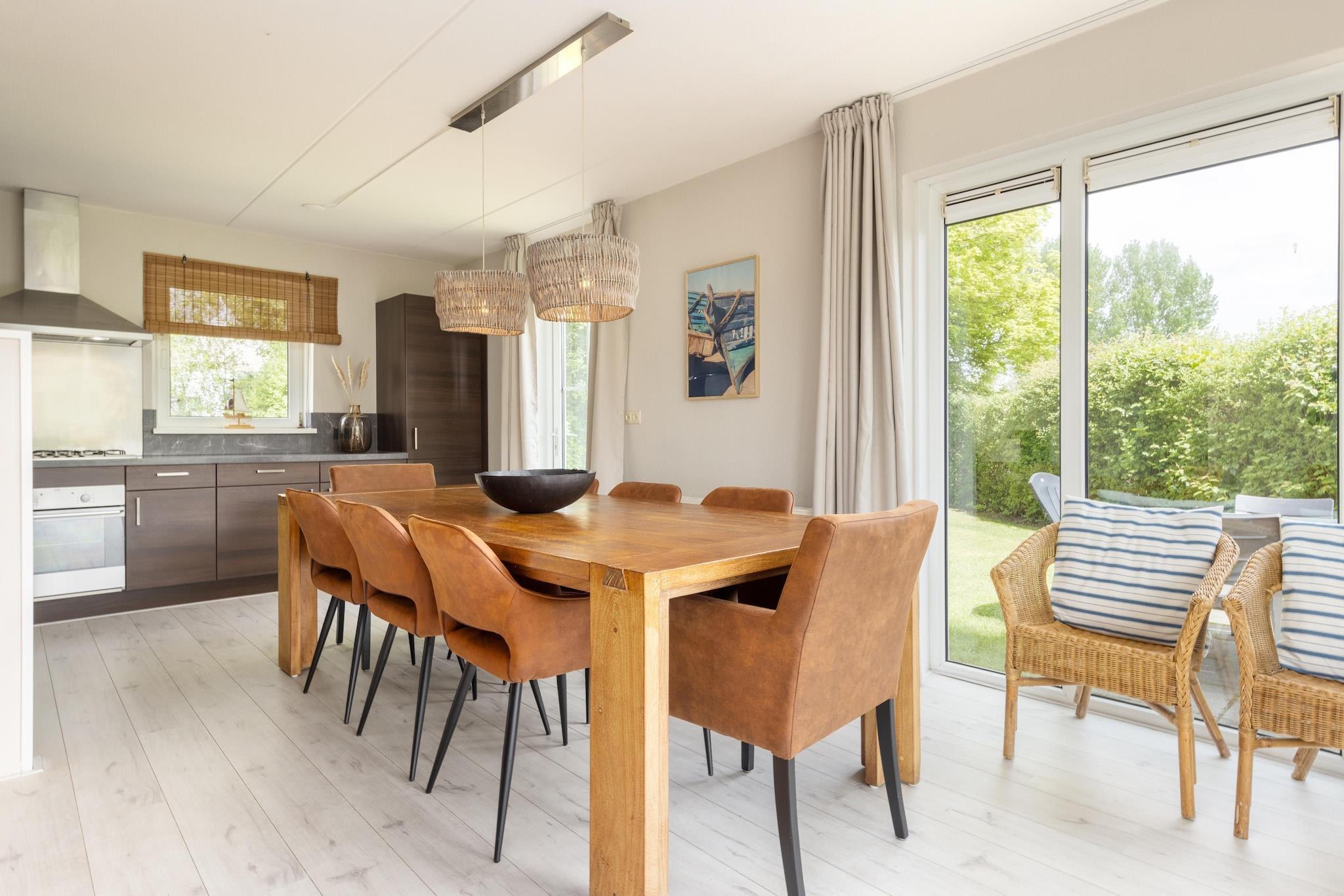 Wellness & Komfort am Wasser Erleben Sie ein ruhiges Leben auf dem Landgut It Wiid. Die charmanten Bungalows liegen direkt an ruhigen Wasserstraßen. Wählen Sie zwischen gemütlichen Doppelhaushälften für 4 Personen und geräumigen Wellness-Bungalows für 8 Personen mit privaten Saunen und Solarien. Fast alle verfügen über einen eigenen Bootssteg – ideal für kleine Boote oder ruhige Momente am Wasser. Freuen Sie sich auf eine offene Küche mit modernen Geräten, ein gemütliches Wohnzimmer mit TV und komfortable Schlafzimmer mit komfortablen Betten. Entspannen Sie sich im Whirlpool im Badezimmer oder auf Ihrer privaten Terrasse mit Gartenmöbeln – ideal, um die ruhige Umgebung zu genießen. Haustierfreundliches Paradies in Friesland Ihre vierbeinigen Freunde sind hier herzlich willkommen! Das Anwesen ist von wunderschönen Wanderwegen und Freiflächen umgeben – ideal für haustierfreundliche Abenteuer. Erkunden Sie die nahegelegenen Wälder, Seen und hundefreundlichen Strände, an denen Ihre Haustiere frei herumlaufen und spielen können. Erfrischen Sie sich nach einem aktiven Tag im Gemeinschaftspool oder genießen Sie ruhige Abende gemeinsam in Ihrem privaten Garten. Köstliche lokale Restaurants und Entdeckungen Nur wenige Minuten entfernt entdecken Sie malerische Dörfer mit herzlicher Gastfreundschaft und köstlicher friesischer Küche. Von charmanten Cafés bis hin zu traditionellen Restaurants mit haustierfreundlichen Terrassen finden Sie hier herrliche Orte, um frische, lokale Aromen zu genießen. Hobbyköche finden auf lokalen Märkten frische Zutaten für die Zubereitung eigener Mahlzeiten in der gut ausgestatteten Küche.
