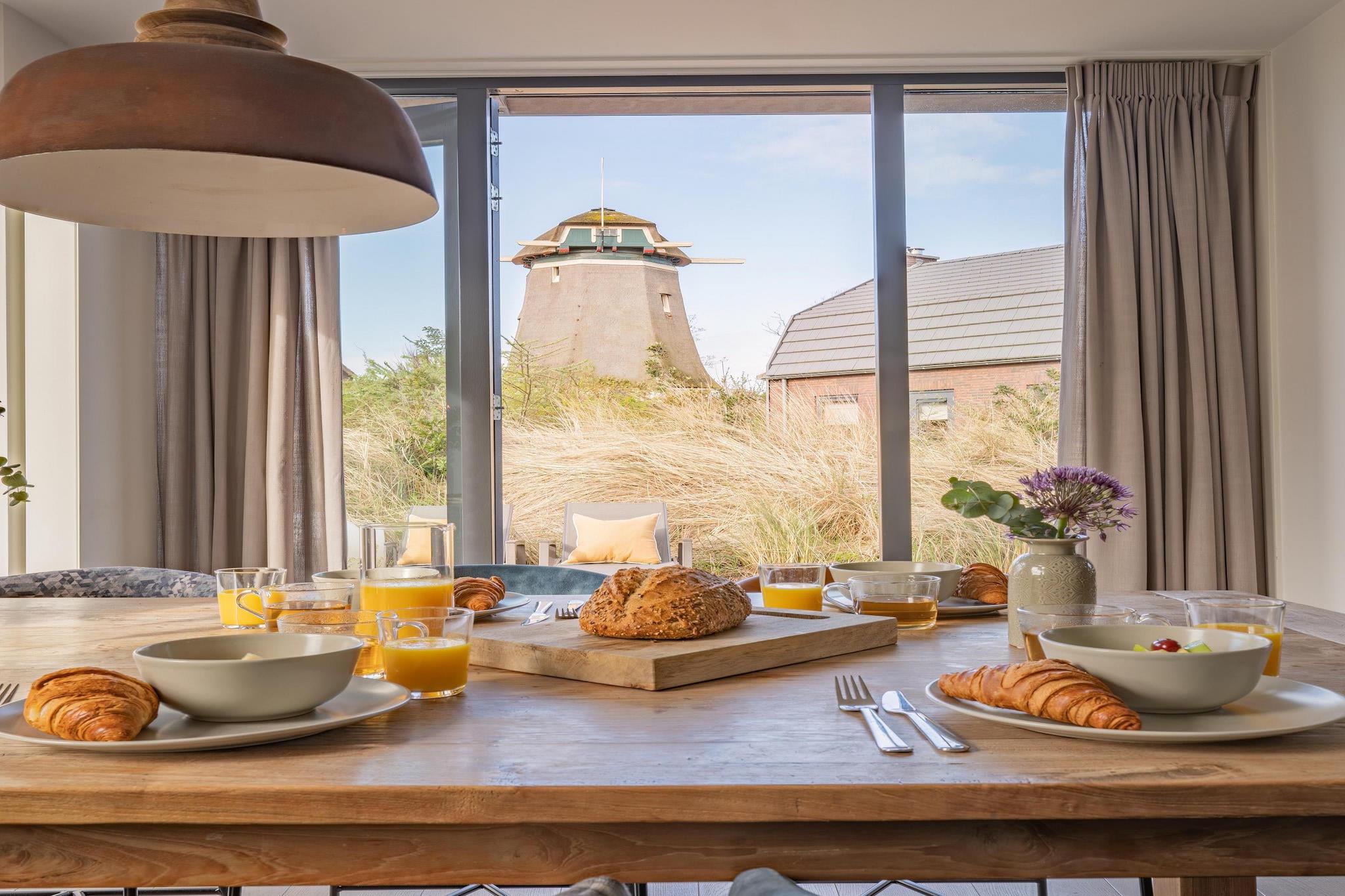 Inmitten eines wunderschön gelegenen, kleinen Freizeitparks in den Dünen von Egmond bietet dieses luxuriöse Ferienhaus eine Oase der Ruhe, nur 2 km vom Meer entfernt. Das Interieur ist auf maximale Entspannung ausgelegt und verfügt über ein helles Wohnzimmer mit gemütlicher Sitzecke und Kamin – ideal, um es sich nach einem langen Spaziergang an der Küste gemütlich zu machen. Große Terrassentüren führen vom Essbereich direkt auf eine private Terrasse mit Garten, von der aus Sie den Blick auf die umliegende Landschaft und eine liebevoll restaurierte Windmühle genießen können. Dank modernem Komfort und lichtdurchfluteter Räume bietet das Haus eine warme und einladende Atmosphäre für Familien oder kleine Gruppen. Die Unterkunft verfügt über drei helle Schlafzimmer im ersten Stock, die jeweils mit komfortablen Betten für einen erholsamen Schlaf ausgestattet sind. Das Highlight des Obergeschosses ist das elegante Badezimmer mit privater Sauna – ein perfektes Wellness-Angebot für alle, die sich während ihres Aufenthalts etwas Besonderes gönnen möchten. Das Erdgeschoss ist funktional gestaltet und bietet eine moderne, voll ausgestattete Küche mit Gaskochfeld, Mikrowelle und Geschirrspüler sowie praktische Annehmlichkeiten wie Waschmaschine, Wäschetrockner und ein separates WC. Das Leben im Freien wird durch eine private Terrasse mit Lounge-Garnitur, Sonnenschirm und Außenkamin bereichert, von der aus Sie den Blick auf die Dünen auch in den kühleren Abendstunden genießen können. Die Umgebung ist ein Paradies für Outdoor-Fans und bietet beste Voraussetzungen zum Wandern, Mountainbiken und Reiten durch Wälder und Dünen. Für Tagesausflüge ist das lebhafte Dorf Egmond aan Zee nur 1,5 km entfernt, während das historische Zentrum von Alkmaar und das Künstlerdorf Bergen bequem zu erreichen sind. Hinweis: Gegen Aufpreis ist ein Babypaket erhältlich.