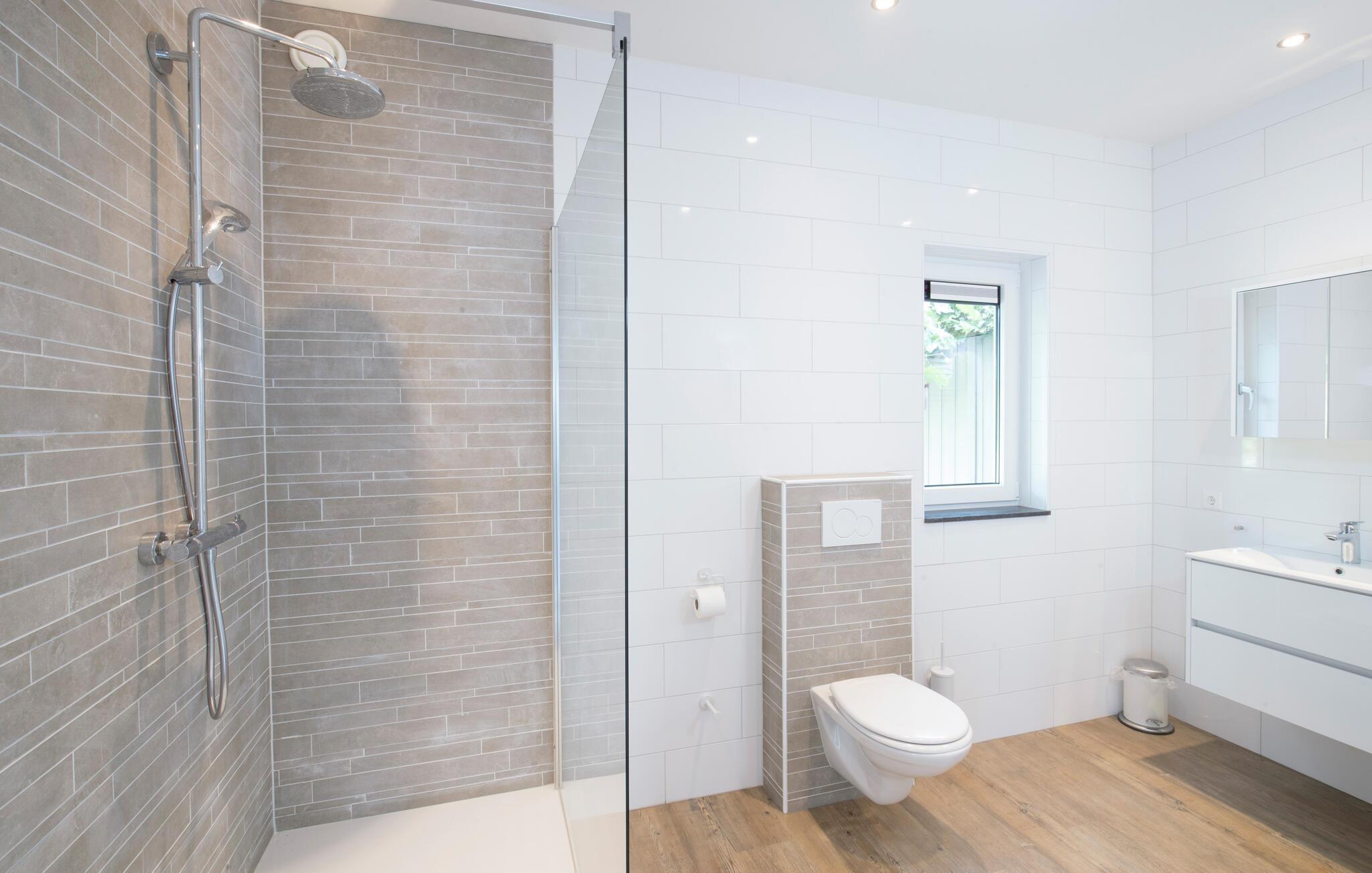 Badezimmer (nr. 1) - WC. Warmes und kaltes Wasser. Dusche und Badewanne