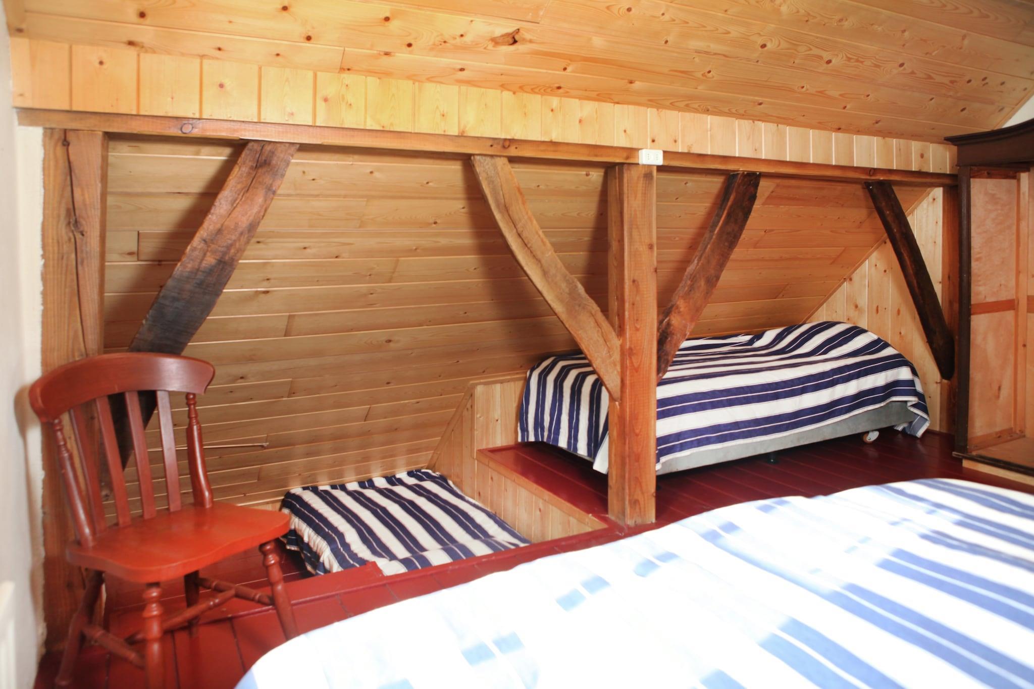 Parterre: (Wohnzimmer(Bettnische (1 Pers.), TV, Esstisch, Kaminofen, Radio, Heizung(Fußbodenheizung)), offene Küche(Kochplatte, Dunstabzugshaube, Kaffeemaschine, Kombi-Mikrowelle, Spülmaschine), Badezimmer(Badewanne, Dusche, Waschbecken, Toilette), Abstellraum) In der 1. Etage: (Schlafzimmer(Doppelbett), Schlafzimmer(Einzelbett, Doppelbett)) Trockner(Gemeinschaftliche Nutzung mit anderen Gästen), Waschmaschine(Gemeinschaftliche Nutzung mit anderen Gästen), Heizung(Zentral), Terrasse, Gartenmöbel, Parkplatz, Kinderbett(auf Anfrage)
