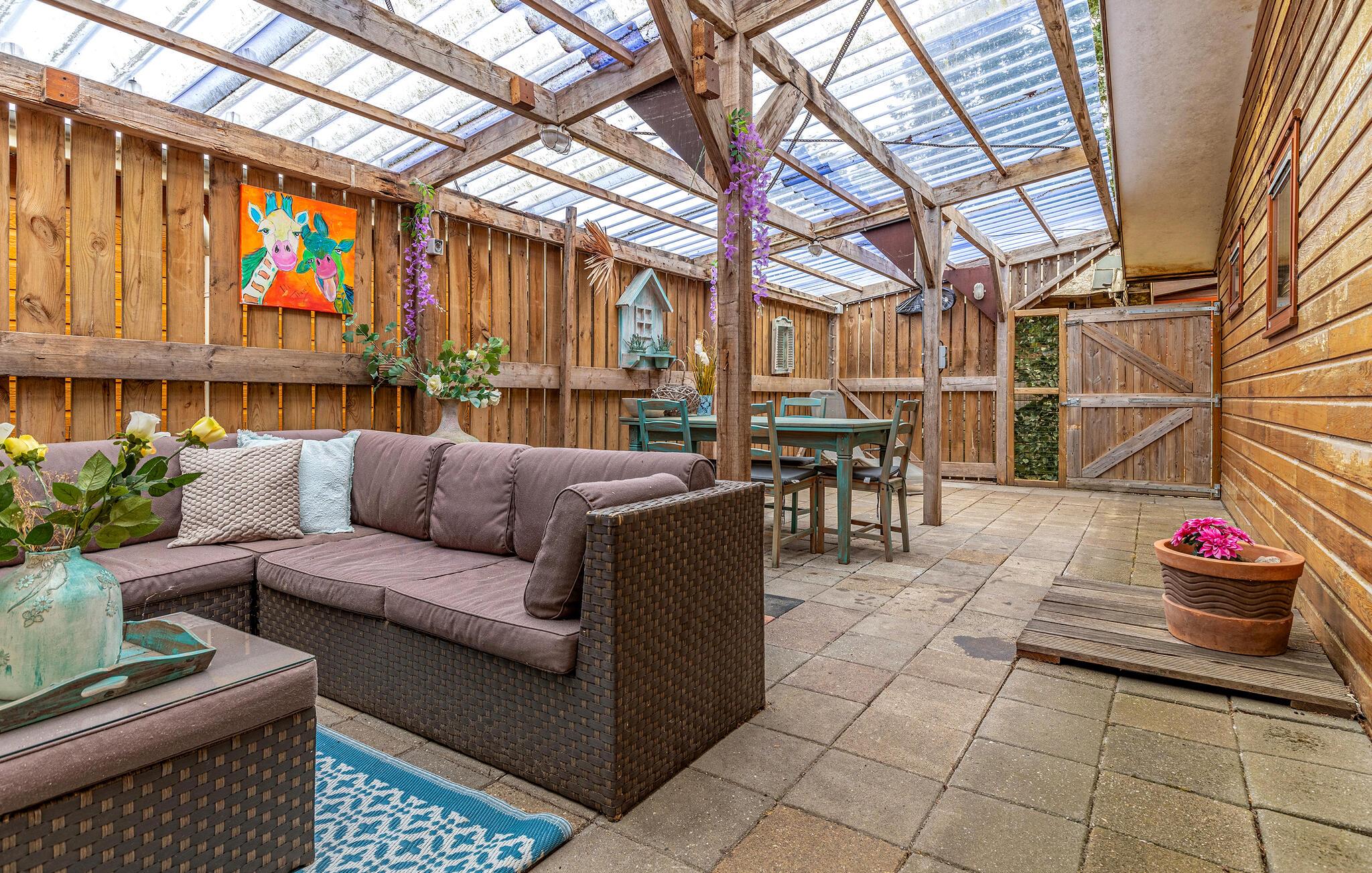 Starten Sie den Tag im Freien mit einer frischen Tasse Kaffee, während draußen die Morgensonne über der Landschaft erwacht. Von der Terrasse haben Sie einen schönen Blick ins Grüne. Verbringen Sie hier einen entspannten Vormittag beim Plaudern oder steigen Sie für ein erfrischendes Bad in den Whirlpool. Abends lädt die Terrasse dazu ein, den Tag in geselliger Runde ganz entspannt ausklingen zu lassen.