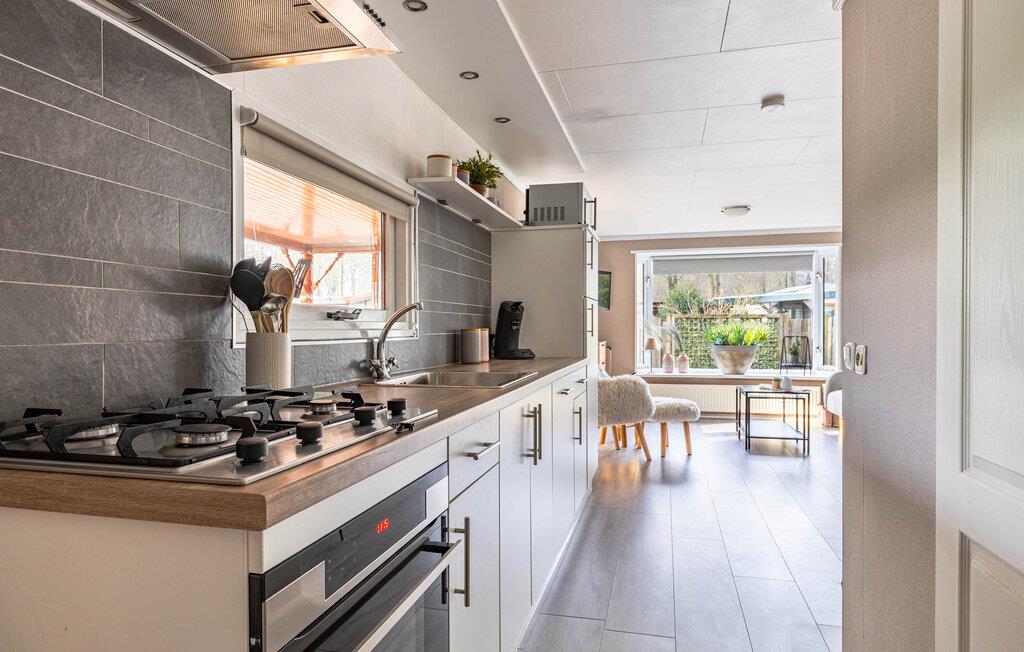 Verbringen Sie einen erholsamen Paarurlaub in diesem charmanten Ferienhaus mitten im Grünen und mit viel Komfort. Betreten Sie den hellen, liebevoll eingerichteten Wohnbereich mit großen Fenstern und gemütlichen Sitzgelegenheiten. Die geschmackvolle Einrichtung in sanften Farben schafft eine freundliche und einladende Atmosphäre. Lehnen Sie sich zurück und lassen Sie den Blick ins Grüne schweifen. Essen Sie am Esstisch neben der offenen Küche, die zum gemeinsamen Kochlöffelschwingen einlädt.