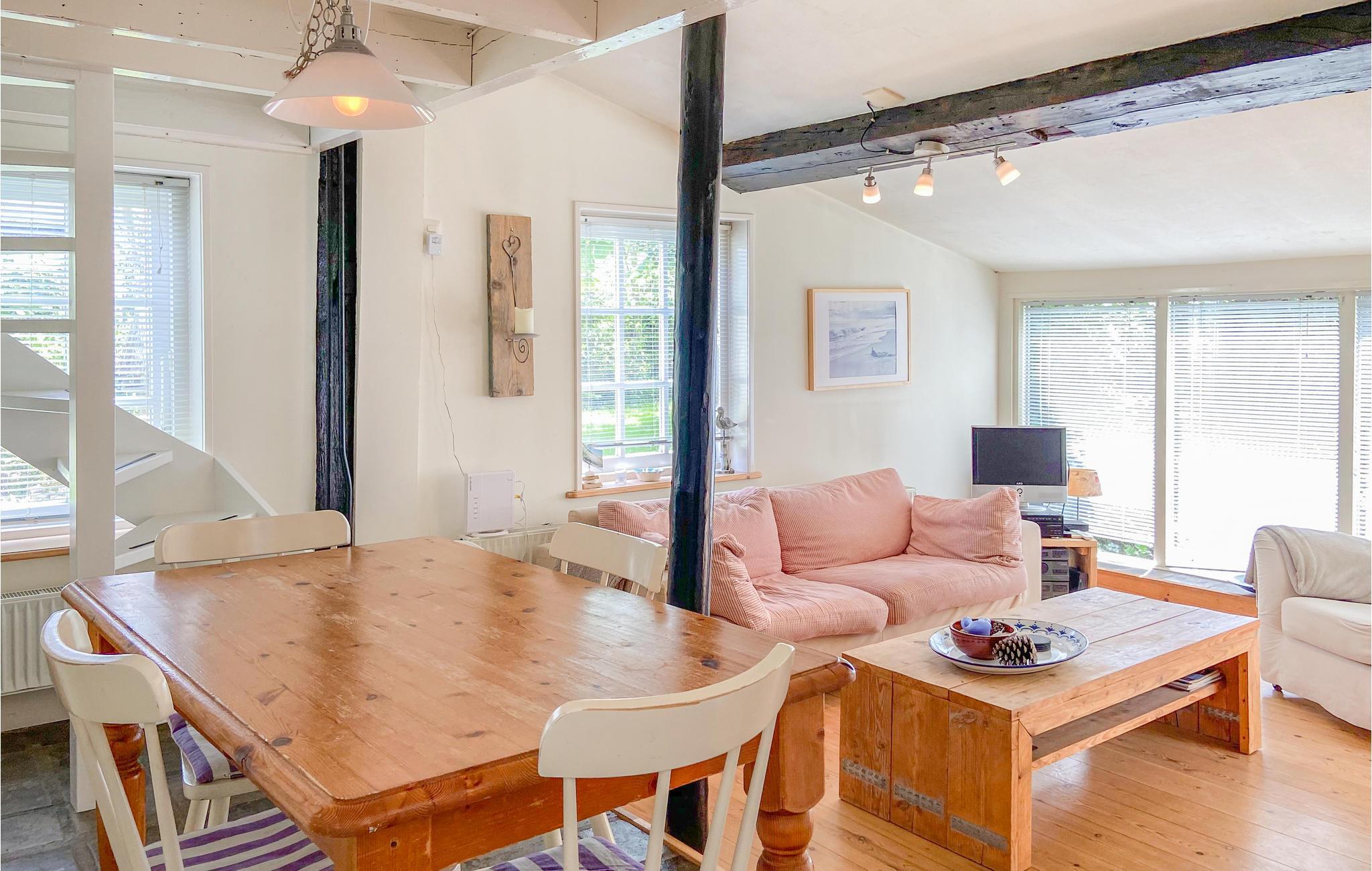 Das Haus liegt etwas versteckt hinter dem Haupthaus, das am Heereweg liegt und Sie direkt zum Strand führt. Hier verringen Sie Ihren Urlaub am Fuße der Dünen in ruhiger Umgebung mit wunderschöner Natur. Genießen Sie die gemeinsame Zeit in den hellen Räumen, denen sanfte Farben und markante Balken einen spannenden Kontrast verleihen. Der Esstisch und die gemütliche Sitzecke laden zu gemütlichen Spieleabenden ein, hier können Sie nach einem erlebnisreichen Tag noch lange zusammensitzen und in behaglicher Atmosphäre plaudern.
