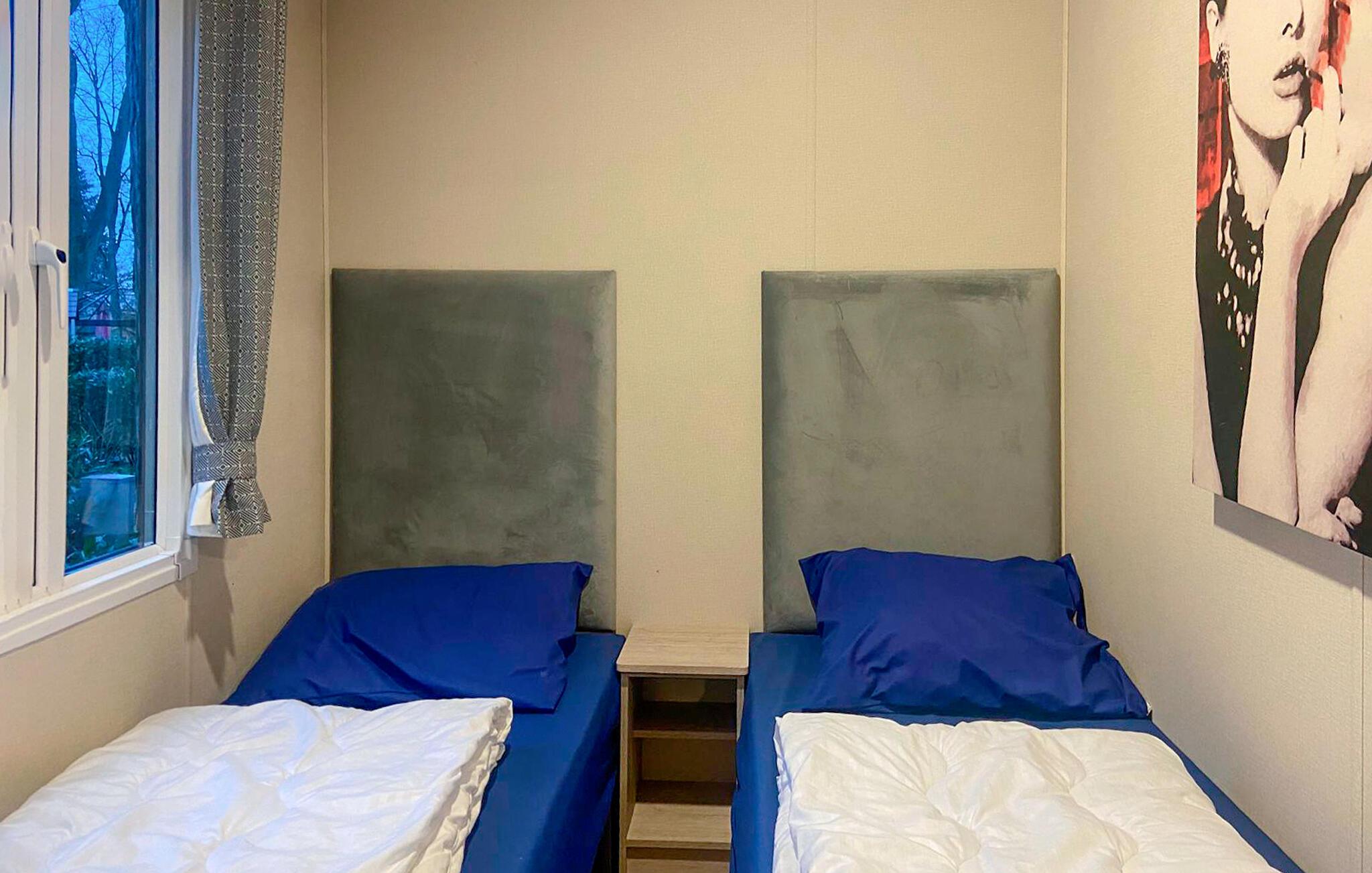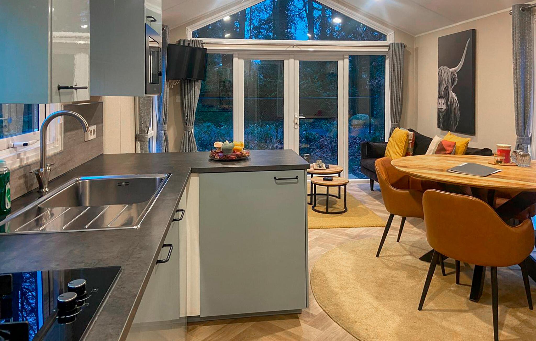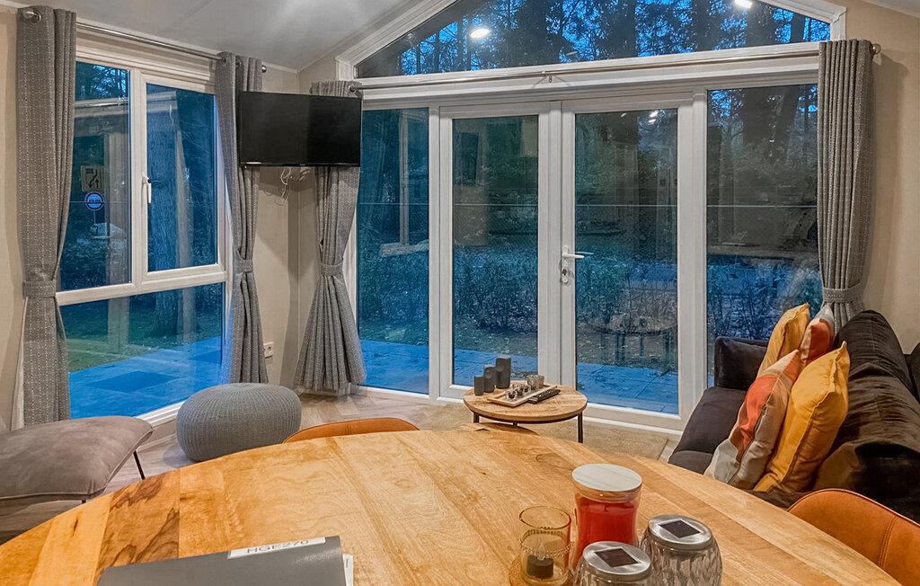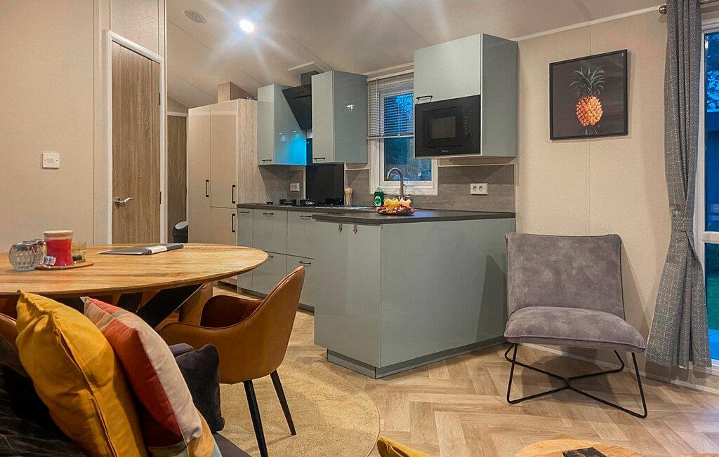 Freuen Sie sich auf Ihren Urlaub in diesem schönen Ferienhaus in einem Ferienpark. Die helle Einrichtung und der moderne Charme der Möbel machen Ihren Aufenthalt zu etwas besonderem. Ausgestattet mit allem, was Ihr Herz begehrt, können Sie Ihren Ferienalltag voll auskosten und einfach die Seele baumeln lassen. Treten Sie durch das große Panoramafenster auf die Terrasse und genießen im Schatten der Bäume die Zeit im Freien.