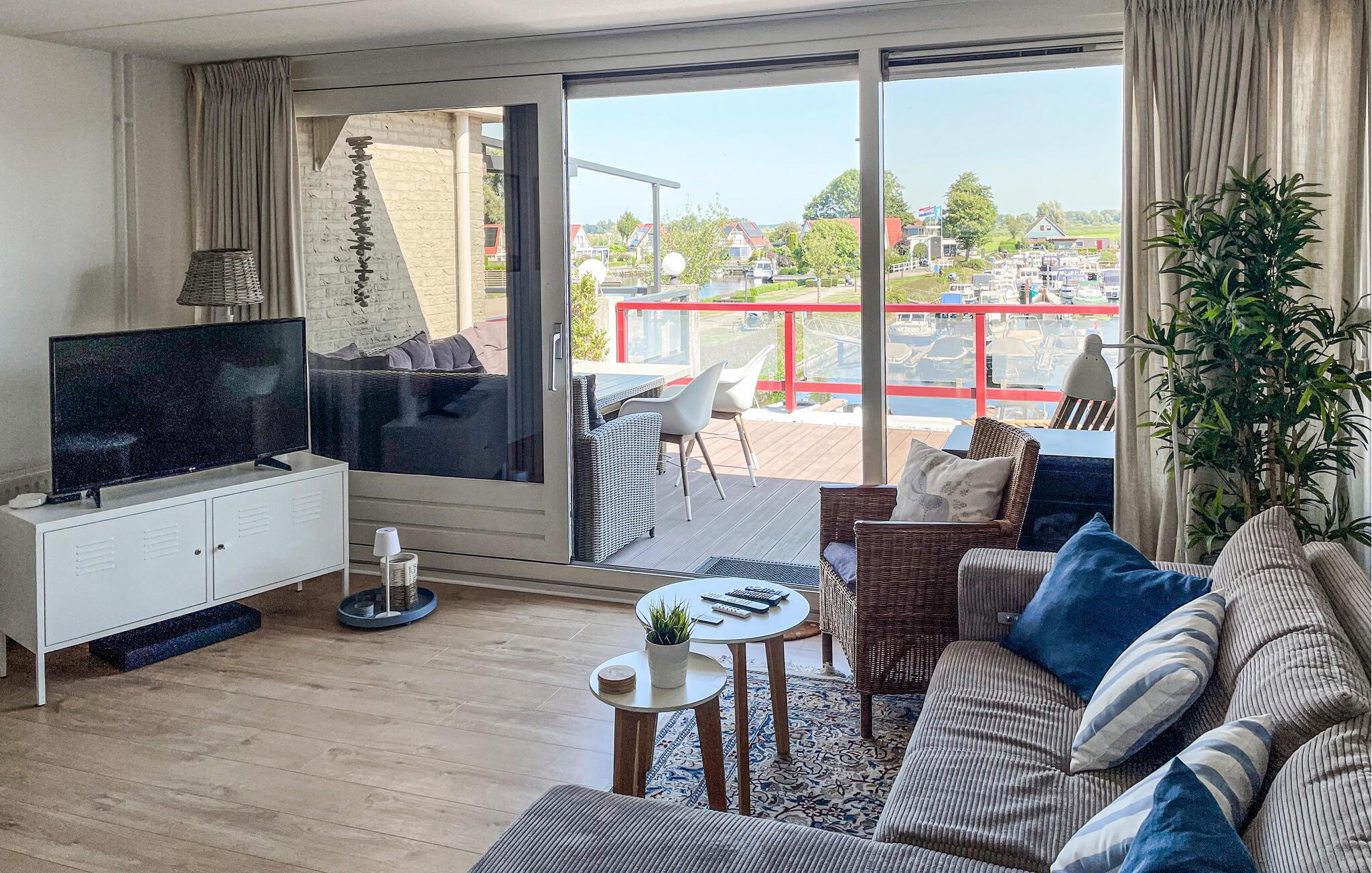 Freuen Sie sich auf einen Urlaub mit tollem Panorama in diesem Ferienhaus am Wasser.
