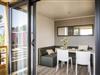 Dieses moderne Reihenchalet liegt auf einem einladenden Familiencampingplatz direkt am ruhigen Hegermeer und bietet Naturliebhabern und Familien gleichermaßen einen herrlichen Rückzugsort. Die überdachte, beleuchtete Terrasse lädt zum Abendessen oder Entspannen unter dem Sternenhimmel ein und schafft unvergessliche Erinnerungen. Der helle und komfortable Innenbereich besticht durch eine clevere Raumaufteilung: Beide Schlafzimmer öffnen sich zu einem stilvollen Badezimmer. Ein Schlafzimmer verfügt über ein verspieltes Hochbett, ideal für Kinder, die ihren eigenen Bereich genießen möchten. Ein separates WC und eine voll ausgestattete Küche sorgen für Komfort und Bequemlichkeit während Ihres Aufenthalts. Das Chalet ist zum Entspannen konzipiert: Ein Fernseher sorgt für Unterhaltung und die Elektroheizung im Wohnzimmer und Badezimmer sorgt für wohlige Wärme. Die Fenster sind mit Moskitonetzen und Verdunkelungsrollos ausgestattet und sorgen für ruhige Nächte und frische Luft. Der durchdachte Raum lädt zum Entspannen ein und lässt Sie die Natur genießen, egal ob drinnen oder draußen auf der Terrasse. Direkt am Hegermeer gelegen, bietet das Anwesen direkten Zugang zum charmanten Hafen des Sees. Hier können Sie vor Ort eine Schaluppe oder ein Segelboot mieten oder ein erfrischendes Bad nehmen. Ein gemütlicher Spaziergang ins nahegelegene Dorf Heeg ist sehr empfehlenswert, wo Sie gemütliche Terrassen am Wasser und Boutiquen erwarten. Der Campingplatz selbst verfügt über einen Freizeitraum mit Kickertisch und anderen Spielen sowie einen Spielplatz für Kinder, der vergnügliche Tage für Jung und Alt garantiert. Dieses Chalet bietet die perfekte Mischung aus Outdoor-Abenteuer und entspannendem Komfort in malerischer Seelage.