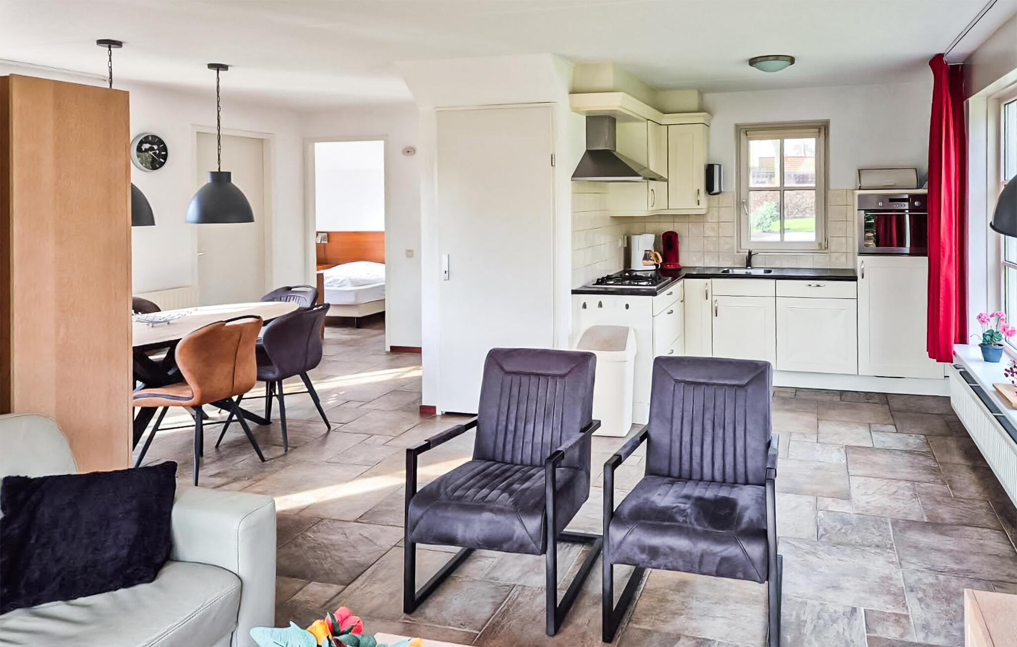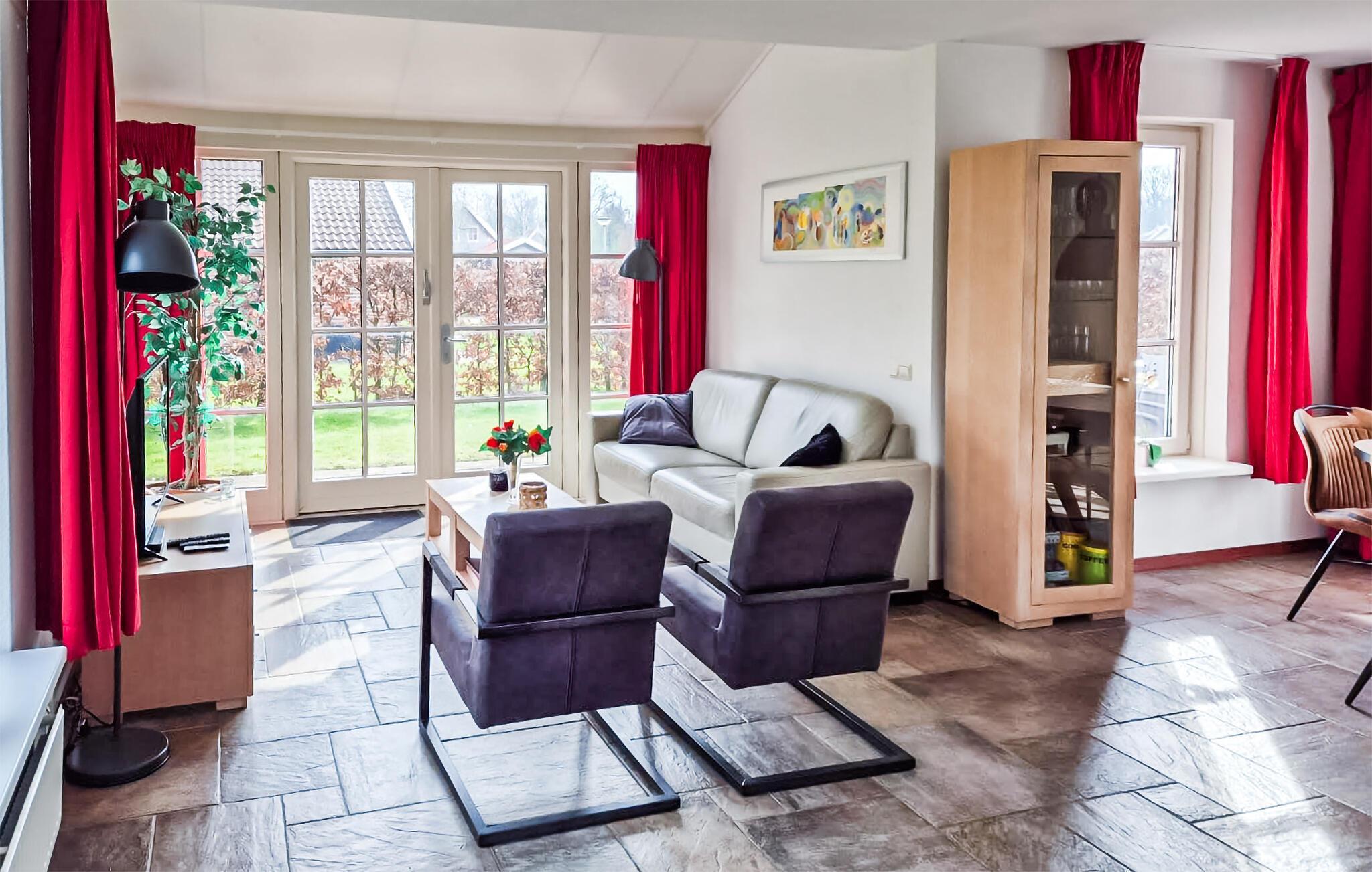 Diese komfortablen Fünf-Personen-Haus mit 3 Schlafzimmer, 2 Bäder, eine Sauna und ein Bad mit Whirlpool-Funktion ist situiert am Ferienpark Buitengoed Het Lageveld in Overijssel. Es befindet sich in einem schönen Waldgebiet in der Nähe von Almelo und Enschede in der wunderschönen Twente. Im Erdgeschoss verfügen Sie neben einem gut ausgestatteten Wohnzimmer mit offener Küche, über ein Schlafzimmer, ein Badezimmer mit Dusche und WC. Im Obergeschoss befinden sich die beiden anderen Schlafzimmer und ein zusätzliches Badezimmer mit Badewanne mit Whirlpool-Funktion, WC und Infrarot-Sauna für 2 Personen. Die Gartenterrasse ist durch die Tür in die Küche zu erreichen, und der Schlafzimmer im Erdgeschoss. In der Küche ist neben ein normaler Kaffeemaschine auch eine Senseo vorhanden. Darüber hinaus hat der Eigentümer dafür gesorgt, dass ein Kinderbett und ein Hochstuhl im Haus vorhanden sind.