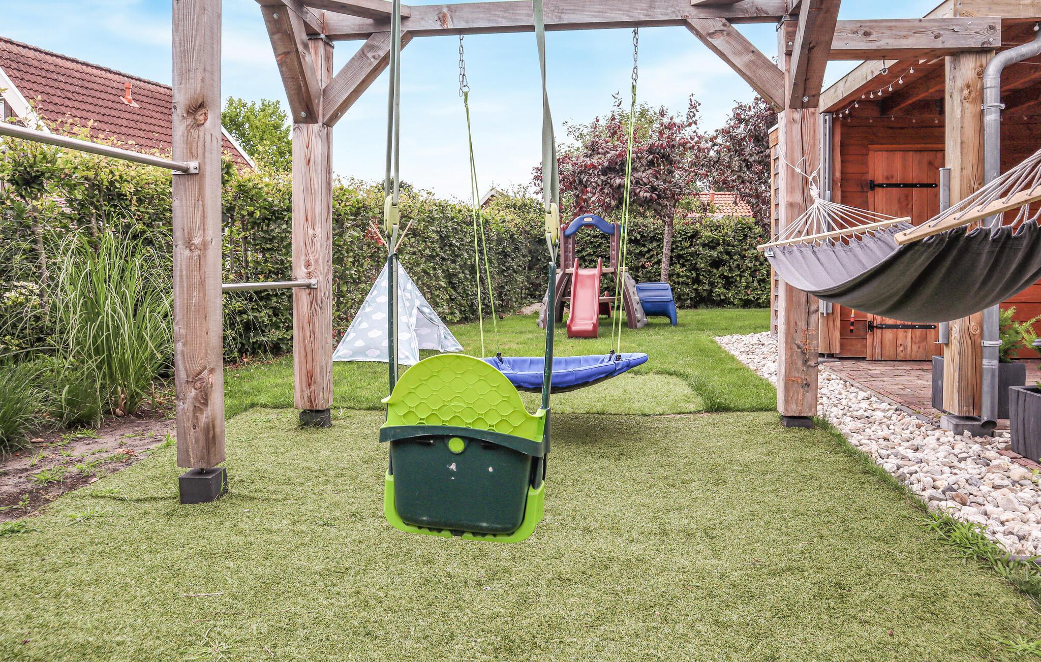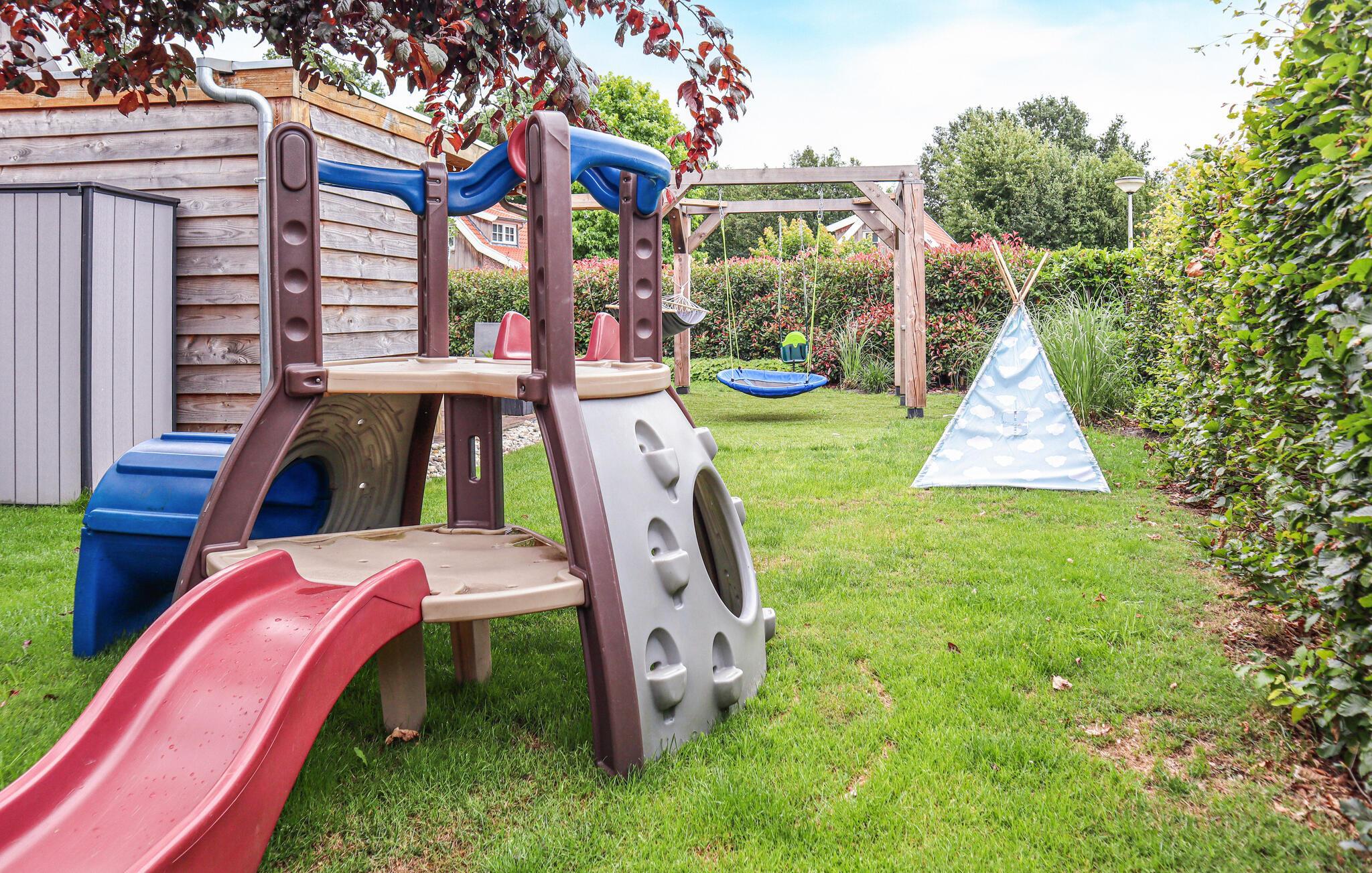 Verbringen Sie viel Zeit im Garten, der Kinderaugen groß werden lässt. Genießen Sie auf der überdachten Terrasse ausgiebig Mahlzeiten im Freien und sehen Ihren Kindern beim ausgiebigen Spielen auf den zahlreichen Spielgeräten zu.