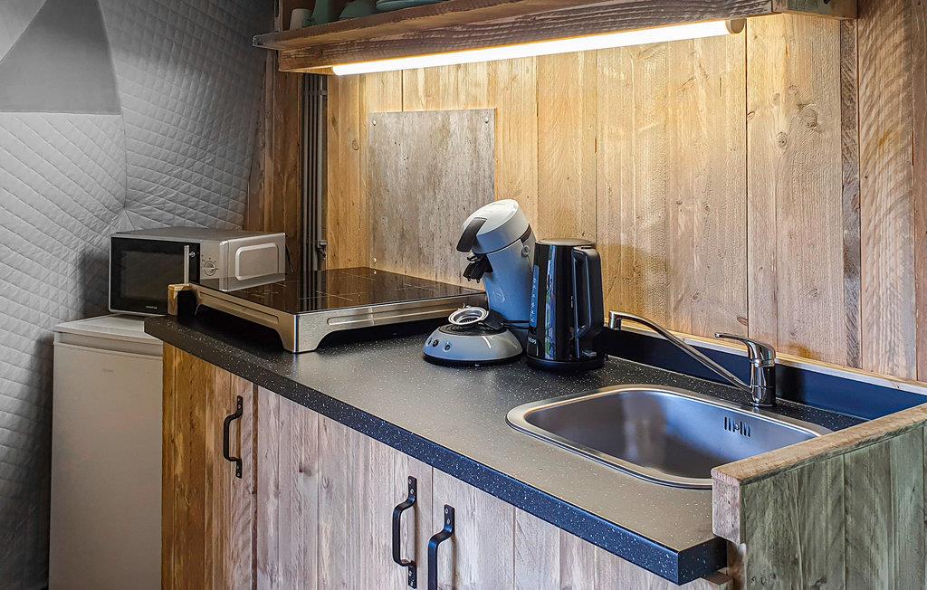 Das schöne Igluzelt mit Holzterrasse bietet Ihnen als Paar alles, was Sie für Ihre Erholung brauchen. Es ist aufgebaut wie ein kleines Ferienhaus, sodass Sie sowohl Ihre Privatsphäre als gemeinsame Zeit im Wohnraum mit Küchenzeile verbringen können. Das Zelt ist mit praktischen und schönen Holzmöbeln ausgestattet, auf denen Sie es sich sowohl im Zelt als auch auf der Terrasse bequem machen können. Genießen Sie schon die ersten Sonnenstrahlen durch das große Fenster im Schlafzimmer und anschließend auf der Terrasse und planen Sie beim Frühstück und Kaffee Ihre Aktivitäten und Ausflüge für den anstehenden Tag.