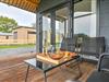 Parterre: (Wohnzimmer(TV(smart TV)), offene Küche(Wasserkocher, Kochherd(4 Kochplatten, elektrisch), Kaffeemaschine(cups), Kombi-Mikrowelle, Spülmaschine, Kühl-/Gefrierkombination), Schlafzimmer(Doppelbett(160 x 200 cm)), Schlafzimmer(Einzelbett(80 x 200 cm), Einzelbett(80 x 200 cm)), Badezimmer(Dusche, Waschbecken, Toilette)) Terrasse(überdacht), Garten, Gartenmöbel, Parkplatz