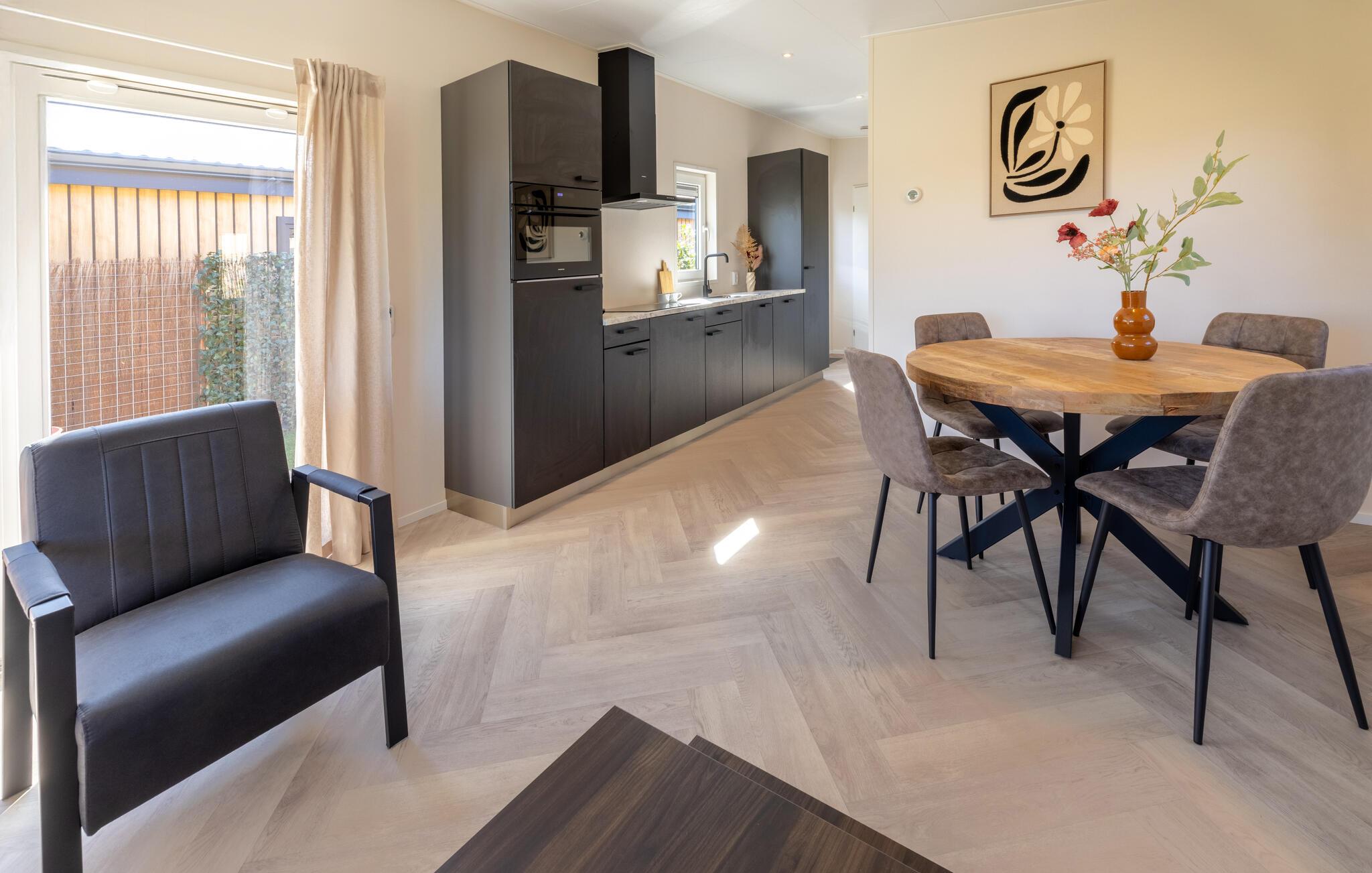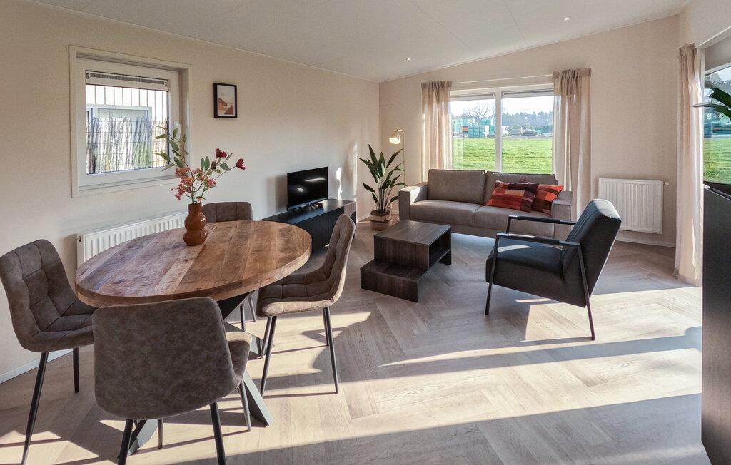 Genießen Sie die klare, zeitgemäße Gestaltung der Räume. Große Fensterflächen lassen viel Tageslicht herein und eröffnen Ihnen weite Blicke ins Grüne. Planen Sie am Holzesstisch Ihre Ausflüge bei einem gemeinsamen Frühstück. Die offene Küchenzeile präsentiert sich funktional und stilvoll zugleich. Bereiten Sie hier frische Mahlzeiten zu und ziehen Sie sich nach einem erlebnisreichen Tag in die gemütlichen Schlafräume zurück und lassen Sie die ruhige Atmosphäre auf sich wirken.