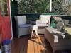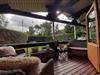 Parterre: (Eingang, Wohnzimmer(von außen erreichbar)(TV, Esstisch, Sitzecke), offene Küche(Kochplatte, Wasserkocher, Dunstabzugshaube, Kaffeemaschine, Mikrowelle, Spülmaschine, Kühl-/Gefrierkombination), Schlafzimmer(Bettnische für 2 Personen), Schlafzimmer(Einzelbett, Etagenbett), Badezimmer(Dusche, Waschbecken), Toilette(Waschbecken), Saal, Veranda(Sitzecke)) Garten, Parkplatz