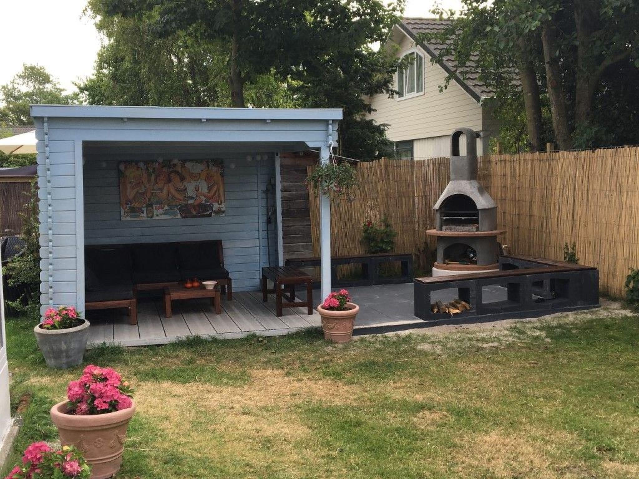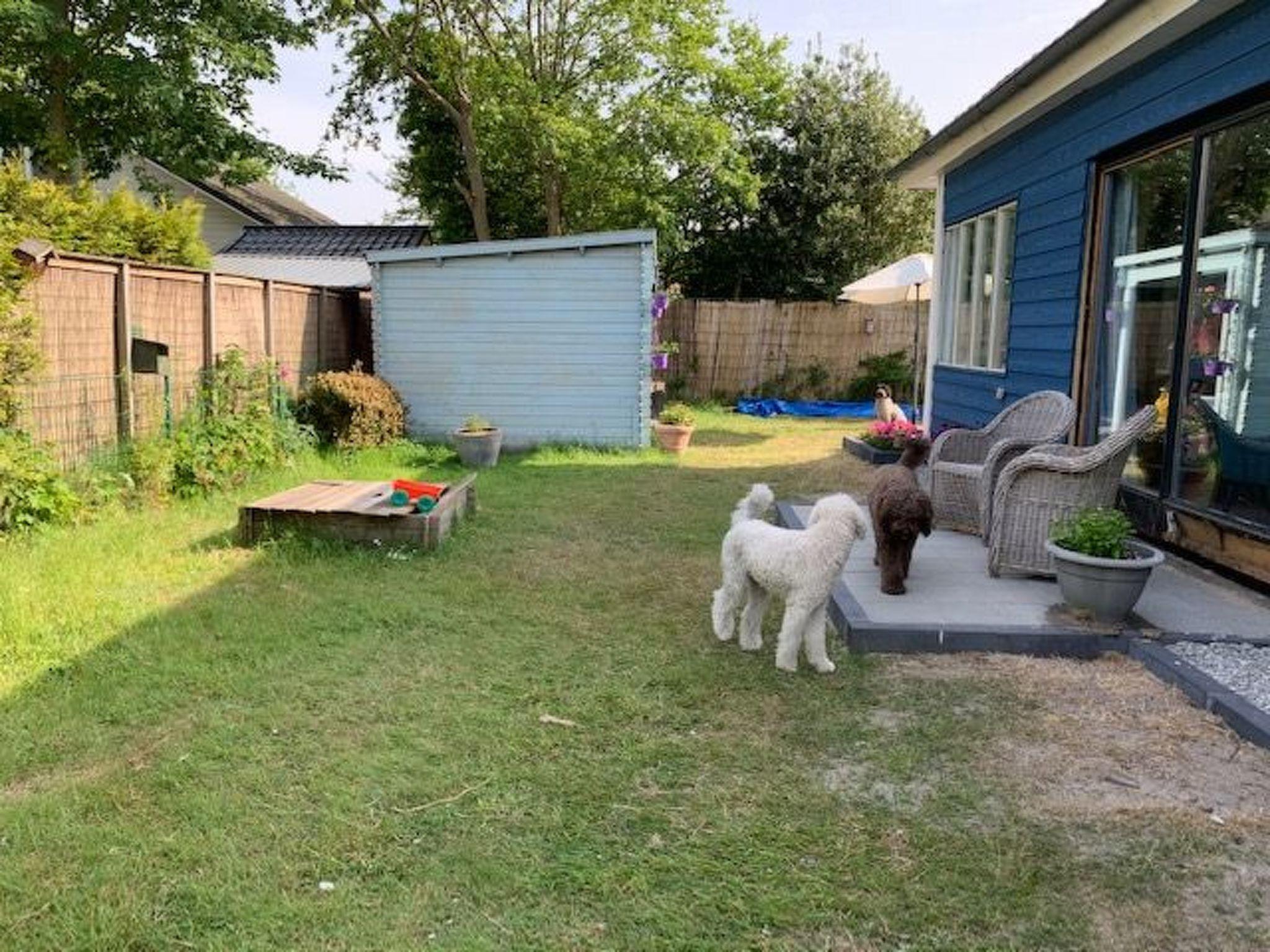 Das große Grundstück (530 m²) ist komplett eingezäunt. Es gibt eine sonnige Terrasse mit einem Glaswindschutz und einem Esstisch für 9 Personen und eine überdachte Terrasse für lange Sommerabende im Freien. An die überdachte Terrasse schließt sich eine Terrasse mit einem festen Grill an. Zwei Fahrräder sind vorhanden. Im Garten gibt es einen Sandkasten und eine Doppelschaukel für Kinder. 50 Meter entfernt (im Park) befindet sich ein großer Spiel-/Sportplatz.