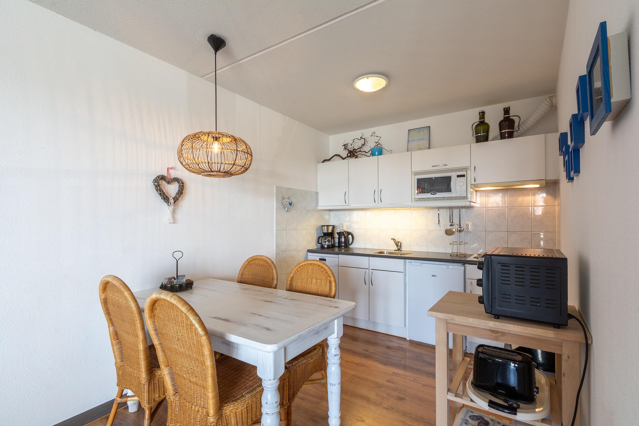 Willkommen in Ihrem idealen Urlaub am Meer für bis zu vier Gäste! Dieses wunderschön eingerichtete Refugium befindet sich im ersten Stock und verfügt über einen einladenden Balkon mit atemberaubender Aussicht auf die nahe gelegenen Dünen. Sonnenlicht fällt in den offenen Wohnbereich und schafft eine warme und einladende Atmosphäre. Das gemütliche Wohnzimmer verfügt über ein bequemes Sofa und ein zusätzliches Schlafsofa, perfekt zum Entspannen nach einem Tag am Strand. Der Essbereich bietet Platz für vier Personen und ist somit ein ausgezeichneter Ort für Mahlzeiten oder Spieleabende. Die voll ausgestattete Küche bietet alles, was Sie brauchen, um köstliche Mahlzeiten zuzubereiten, egal ob Sie Ihren Morgenkaffee kochen oder ein Festmahl zubereiten. Mit zwei geräumigen Schlafzimmern erwarten Sie erholsame Nächte. Entspannen Sie sich im schönen Badezimmer mit einer entspannenden Badewanne – ideal, um die Abenteuer des Tages auszuklingen. Für diejenigen, die mit pelzigen Freunden reisen, heißen wir bis zu zwei Hunde willkommen, damit Ihre ganze Familie diesen herrlichen Urlaub genießen kann.