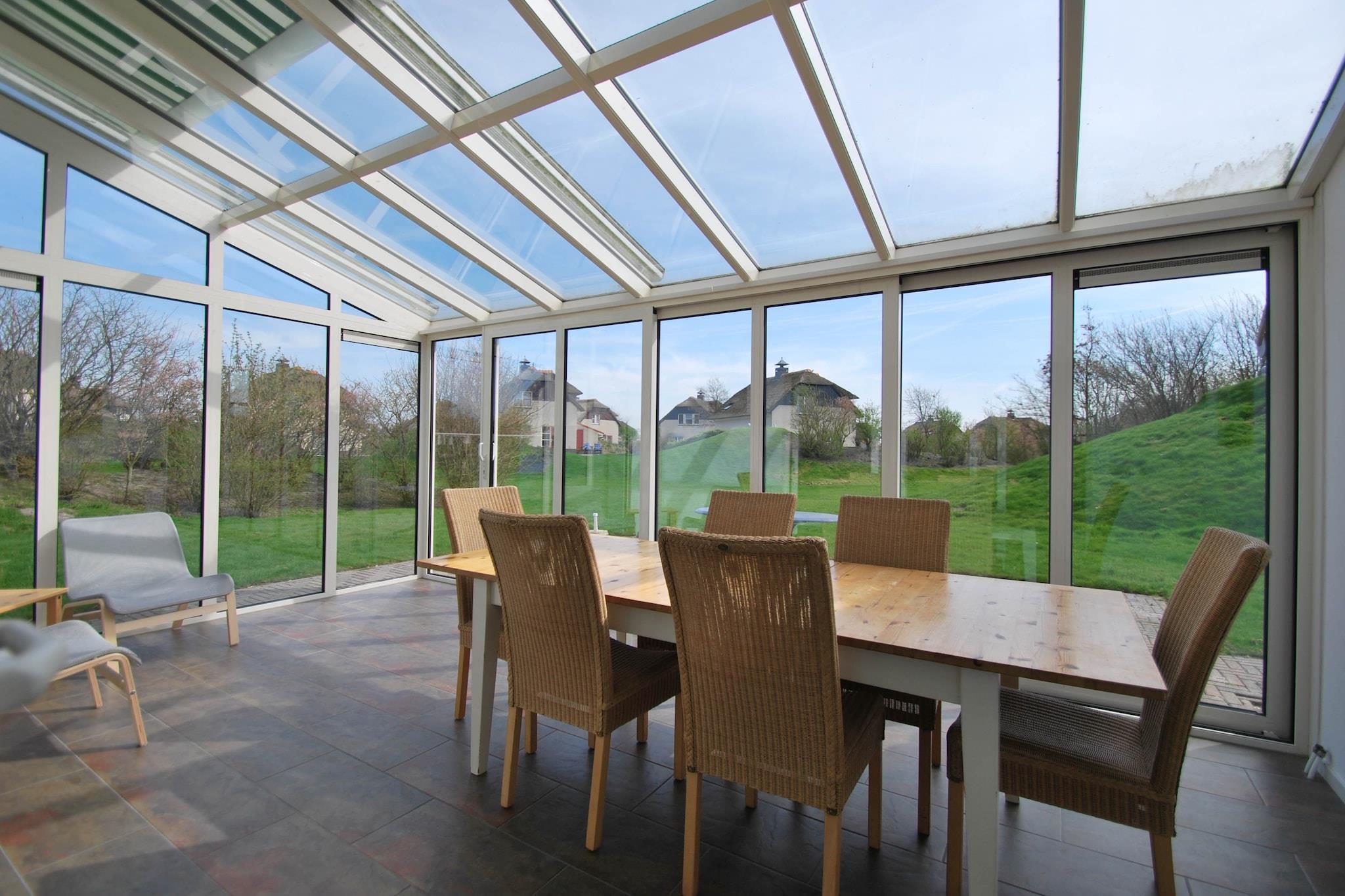 Parterre: (Wohnzimmer(TV(digital), Dekokamin, DVD-Spieler, CD-Spieler), offene Küche(Wasserkocher, Kochherd, Kaffeemaschine(Filter, pads), Mikrowelle, Spülmaschine, Kühlschrank(+ Gefrierfach)), Toilette, Wintergarten) In der 1. Etage: (Schlafzimmer(Doppelbett oder 2 Einzelbetten, TV), Schlafzimmer(2x Einzelbett, Sonnenbank / Solarium), Badezimmer(Badewanne, Dusche, Waschbecken), Toilette) Trockner, Waschmaschine, Terrasse, Garten, Gartenmöbel, Parkplatz