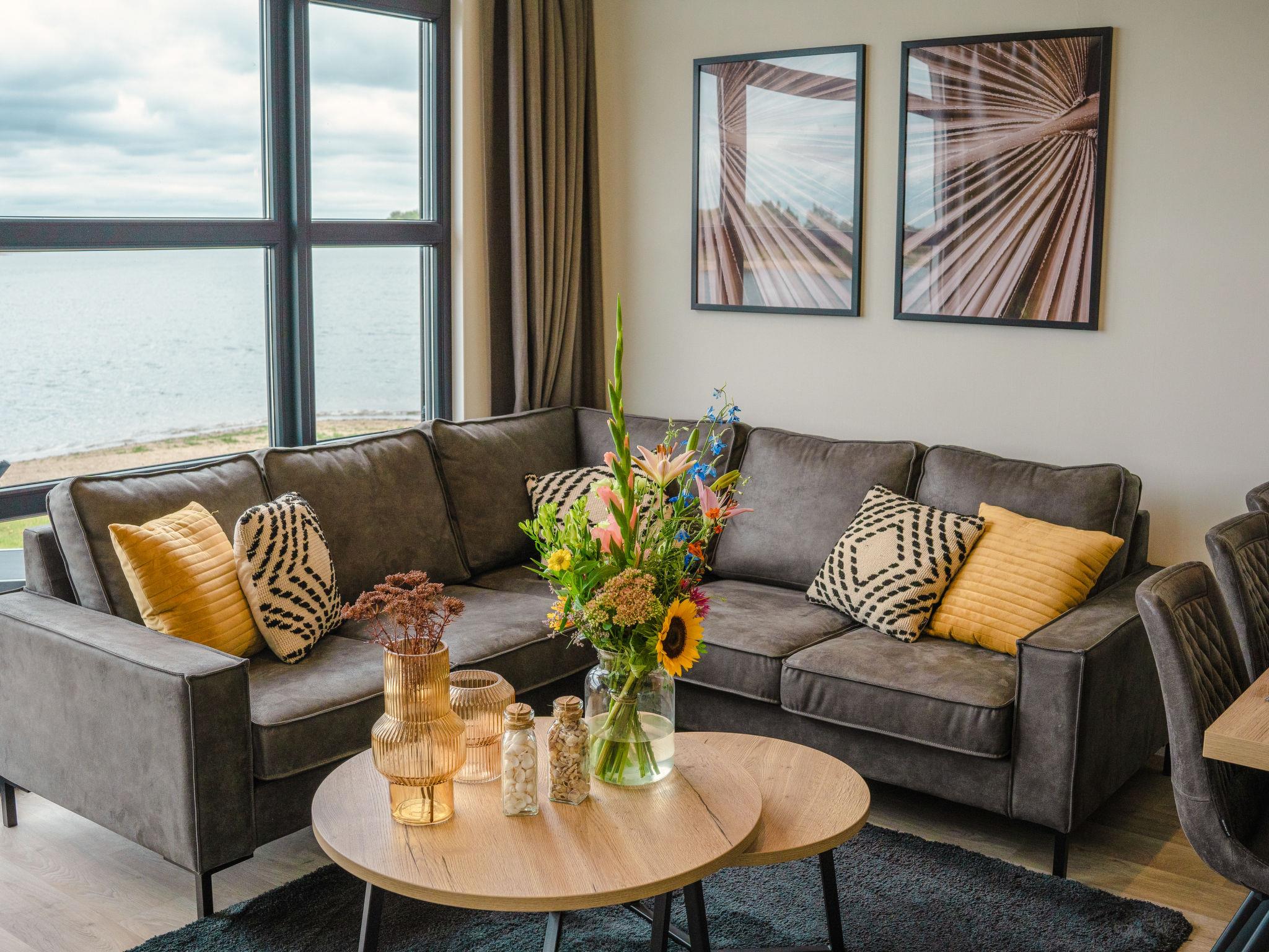 "Villa Maritiem 6 personen", 4-Zimmer-Haus 55 m2. Objekt geeignet für 4 Erwachsene + 2 Kinder. Komfortabel eingerichtet: Wohn-/Esszimmer mit Esstisch und TV (Flachbildschirm). Ausgang zur Terrasse. 1 Zimmer mit 2 Betten und TV. 1 Zimmer mit 1 Doppelbett und TV. 1 Zimmer mit 1 x 2 Etagenbetten. Offene Küche (4 Kochplatten, Geschirrspüler, Wasserkocher, elektrische Kaffeemaschine, Kapseln für die Kaffeemaschine (Nespresso) extra, Kombinationsmikrowelle). Dusche/WC. Heizung. Terrasse. Terrassenmöbel. Sicht auf den See. Zur Verfügung: Internet (WLAN, gratis). Parkplatz (1 Auto). Bitte beachten: Nichtraucher-Haus. Maximal 2 Haustiere/Hunde erlaubt. Rauchmelder.