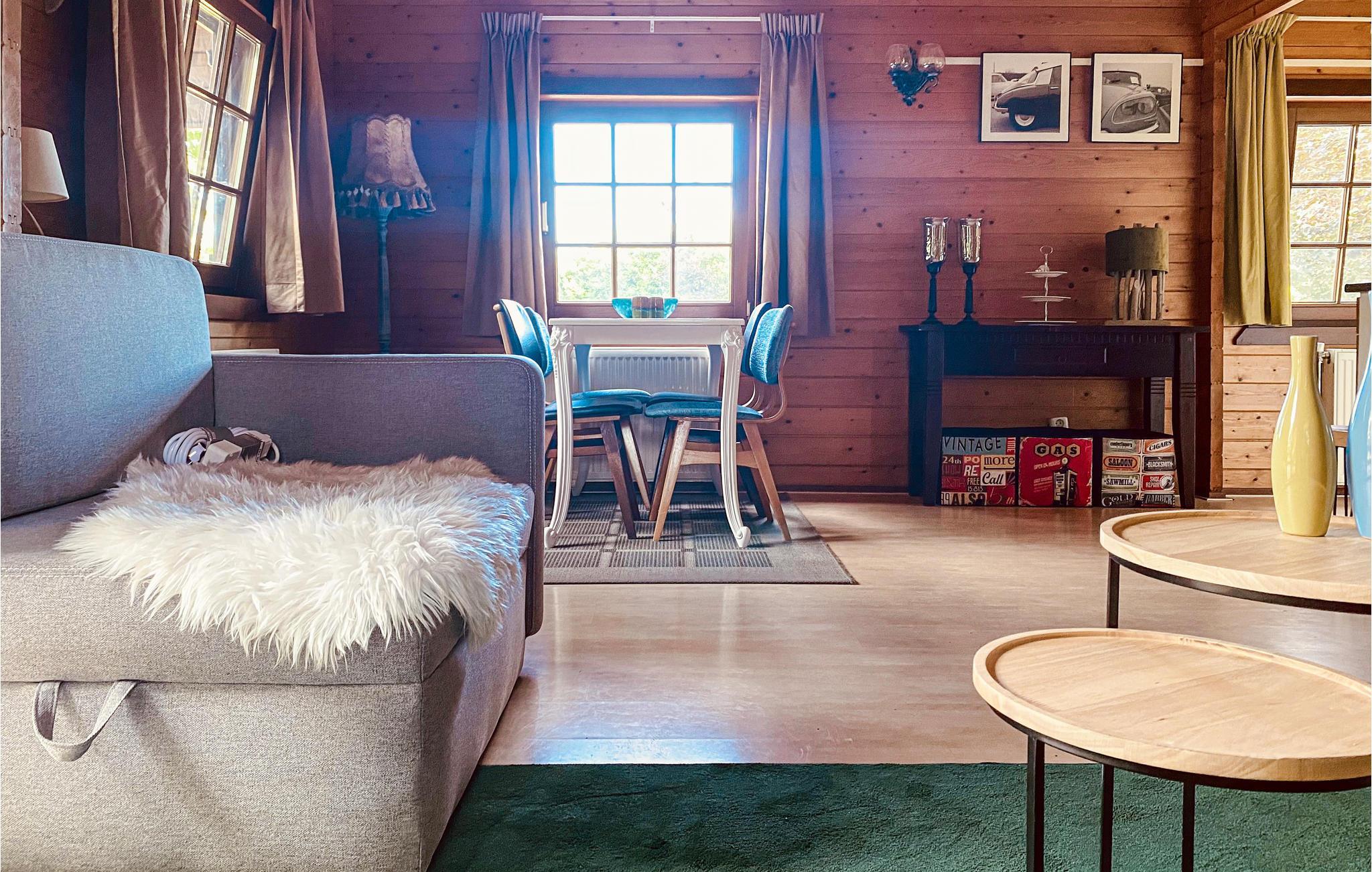 Genießen Sie entspanntes Flair im rustikalen Blockhaus.