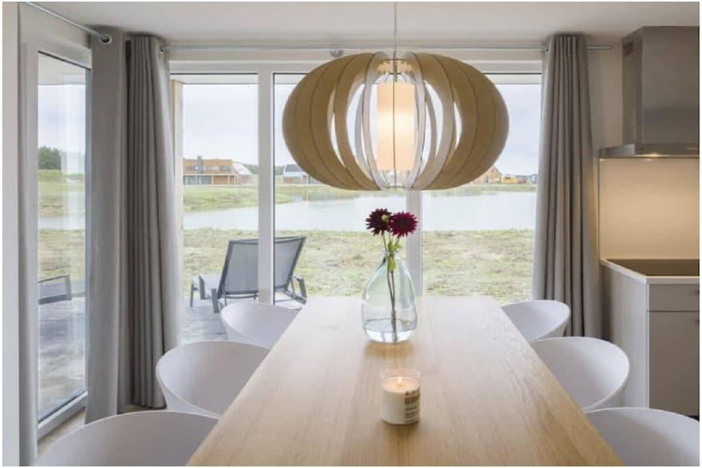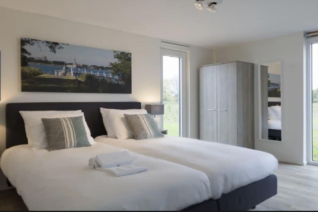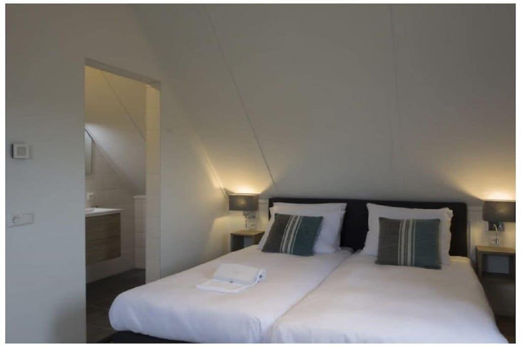 Diese Villa eignet sich für 6 Personen und liegt am Außenrand des Parks. Unten befinden sich das Wohnzimmer mit Sitzecke und Smart-TV und daran angrenzend eine offene Küche mit Essecke. In der Küche befinden sich unter anderem eine Geschirrspülmaschine, eine Kombi-Mikrowelle und eine Kaffeepadmaschine. Im Untergeschoss befindet sich ebenfalls 1 Schlafzimmer mit einem Badezimmer en suite, das über eine bodengleiche Regendusche verfügt. Im Flur befinden sich eine separate Toilette und ein Abstellraum mit Waschmaschine und Trockner. Im Obergeschoss befinden sich 2 Schlafzimmer. Beide verfügen über ein Badezimmer en suite mit einer bodengleichen Regendusche, 1 Badezimmer verfügt zudem über eine Toilette. Alle Schlafzimmer verfügen über jeweils 2 Einzelbetten. Im Außenbereich befinden sich ein Garten mit einer möblierten Terrasse und ein Parkplatz für 1 Auto. Sie können kostenlos das WiFi nutzen.